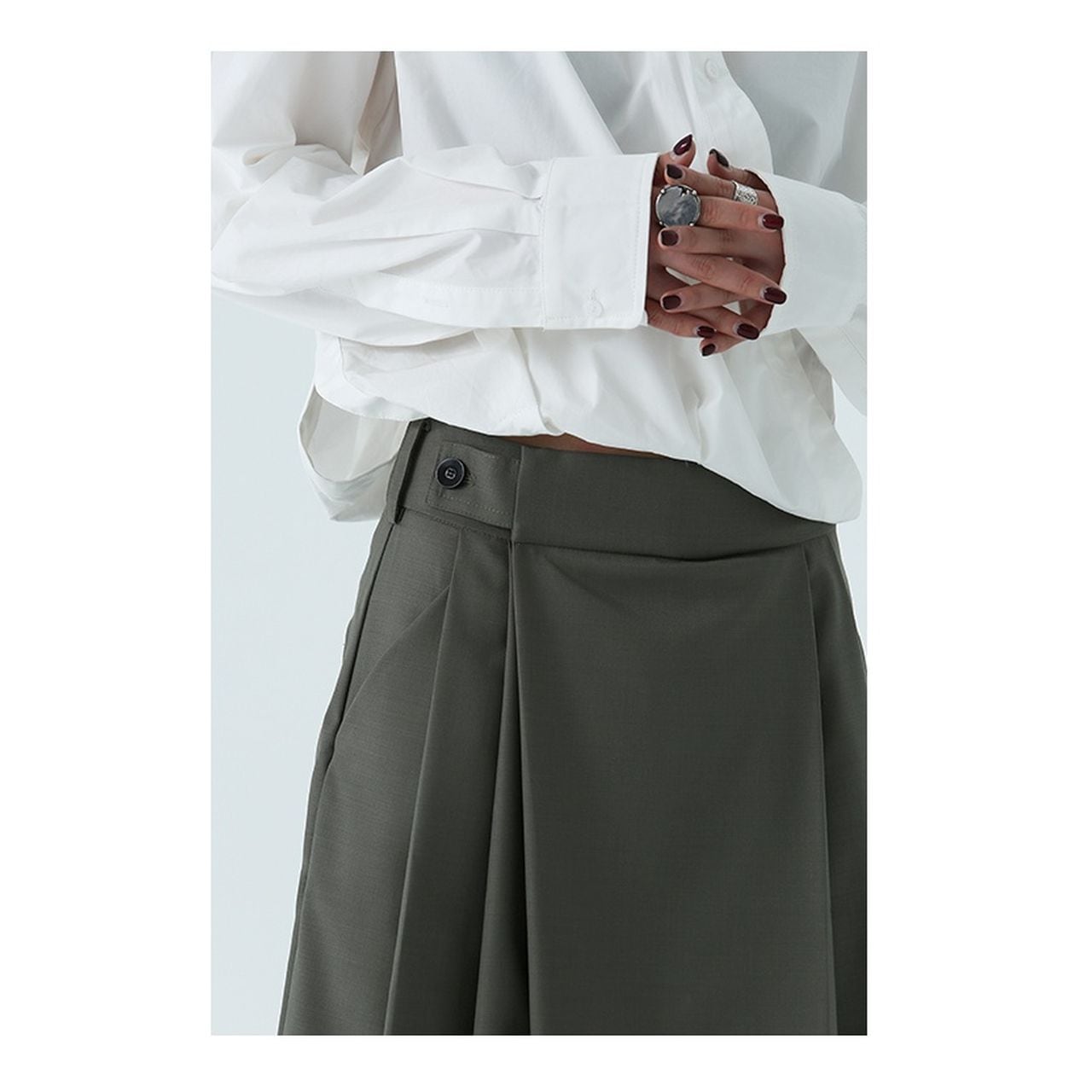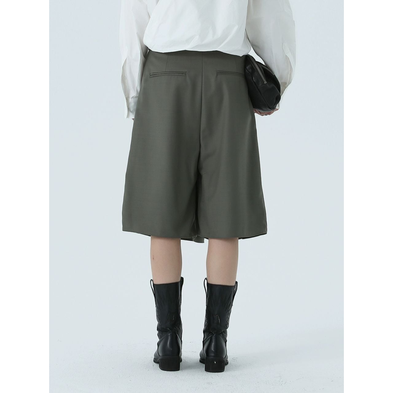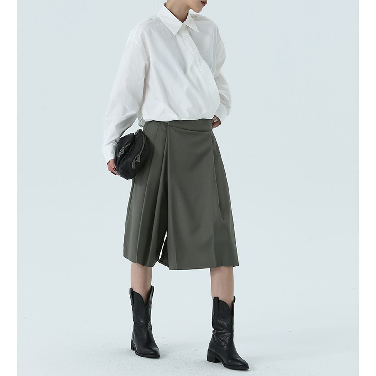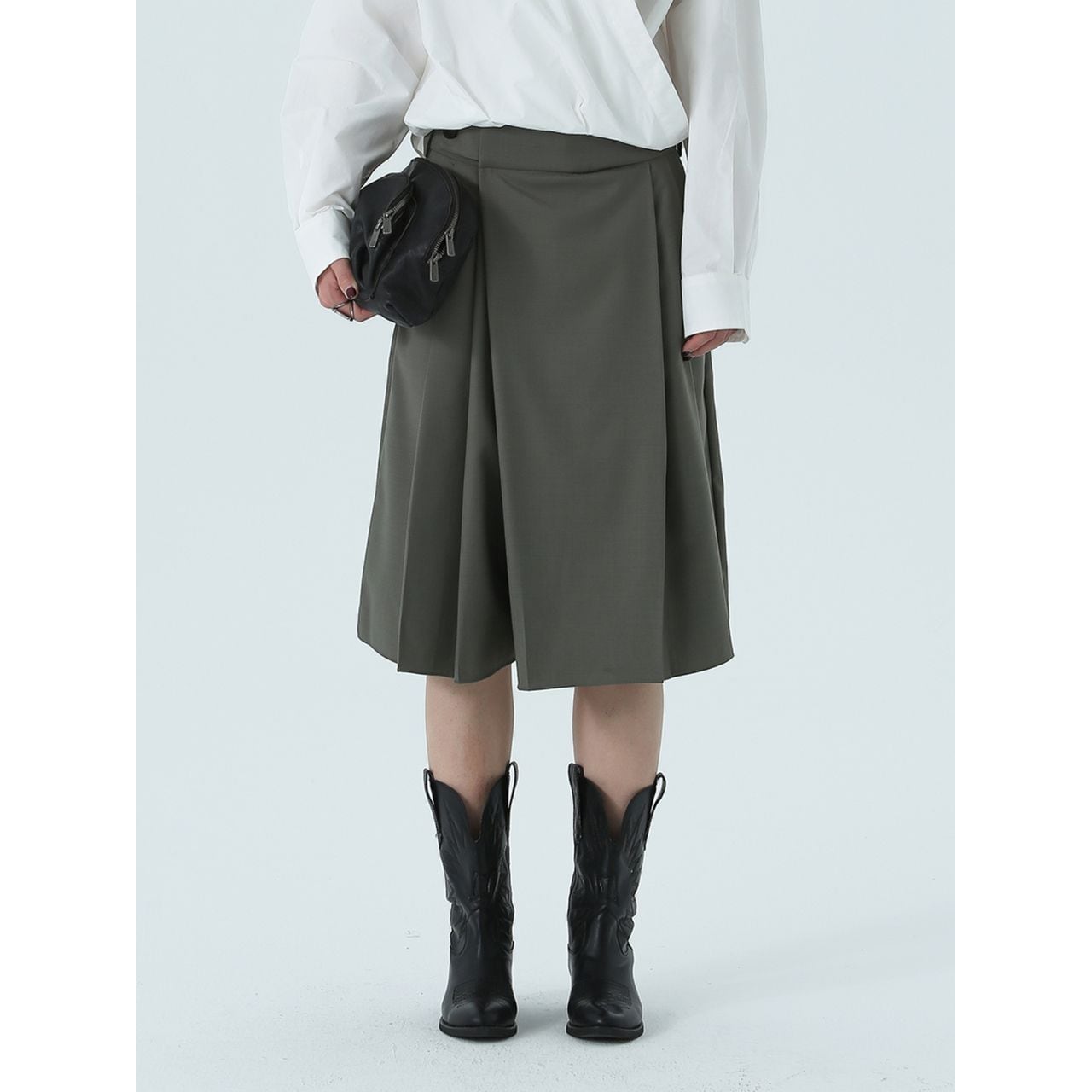 軽やかなプリーツデザインが印象的な、膝丈のキュロットパンツ。