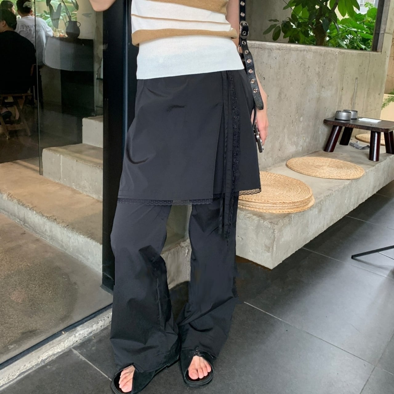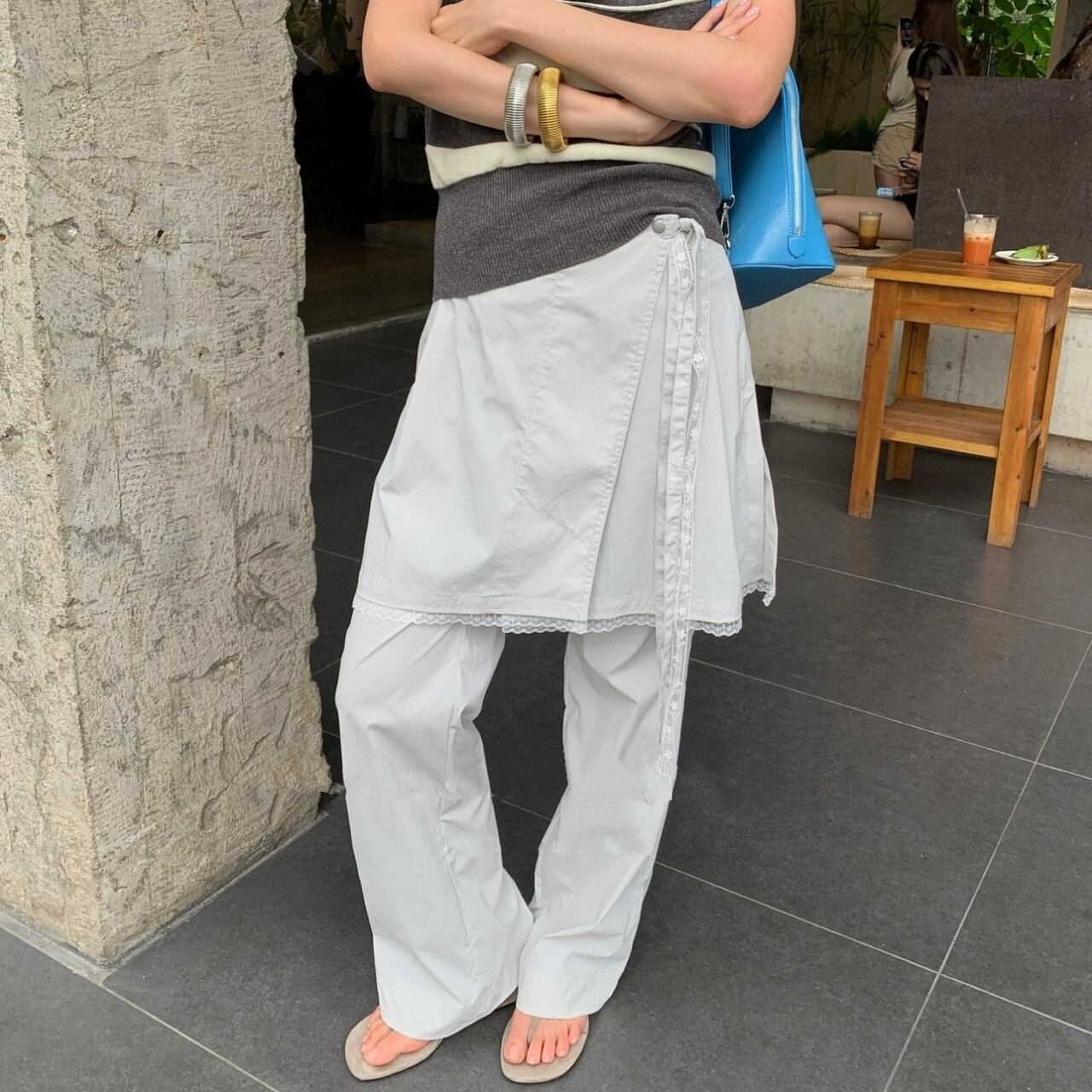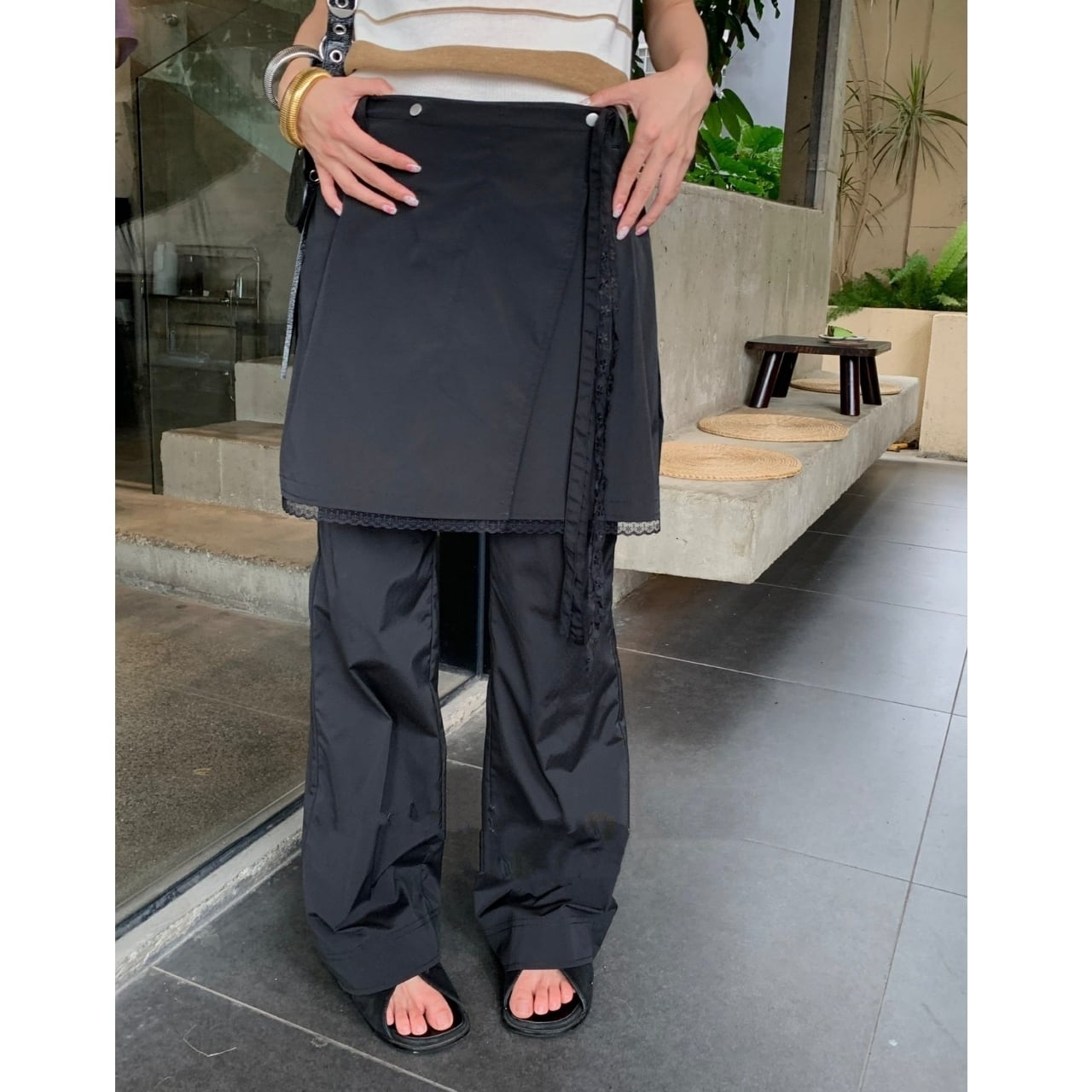 上品なスカート部分とワイドパンツの組み合わせが、トレンド感たっぷり。