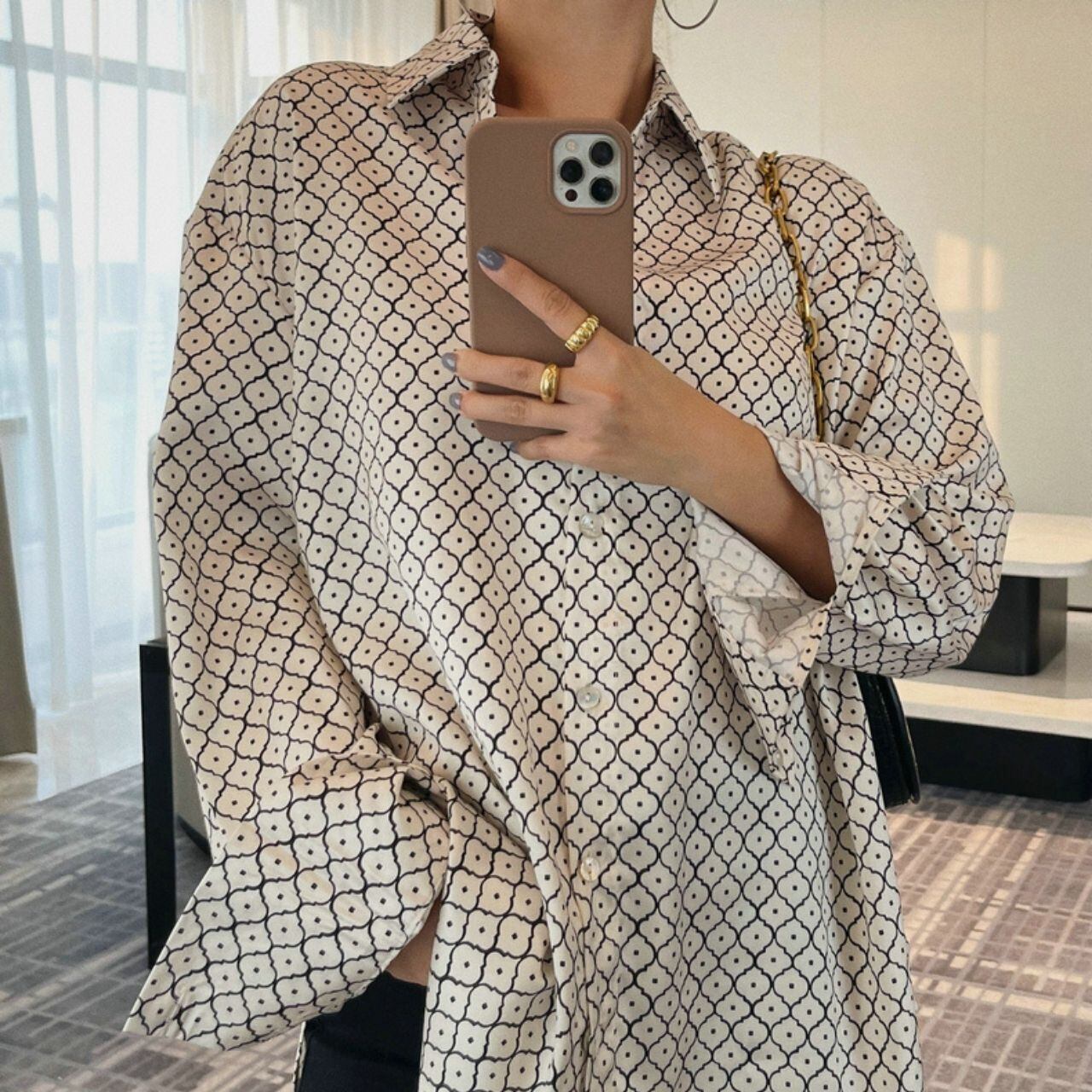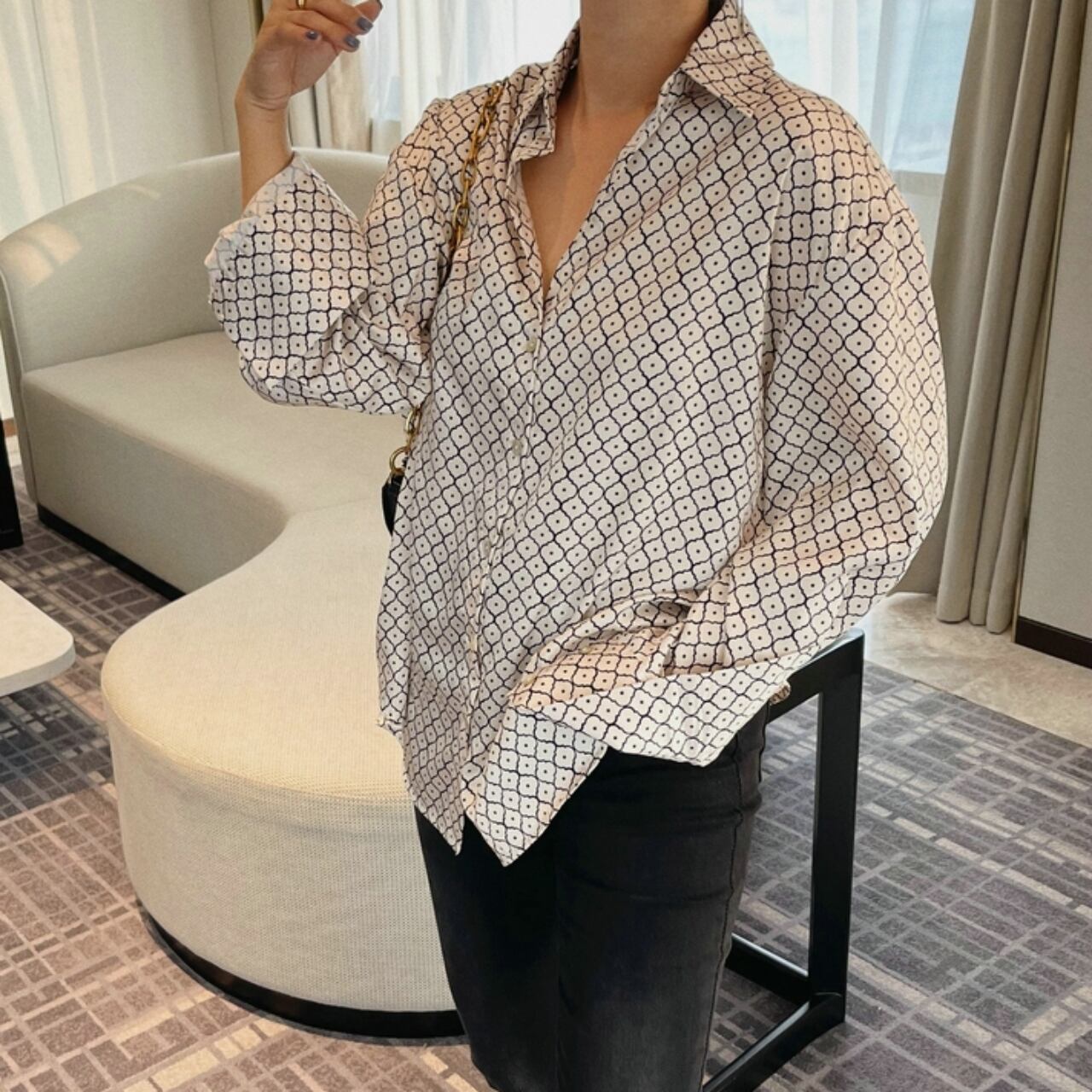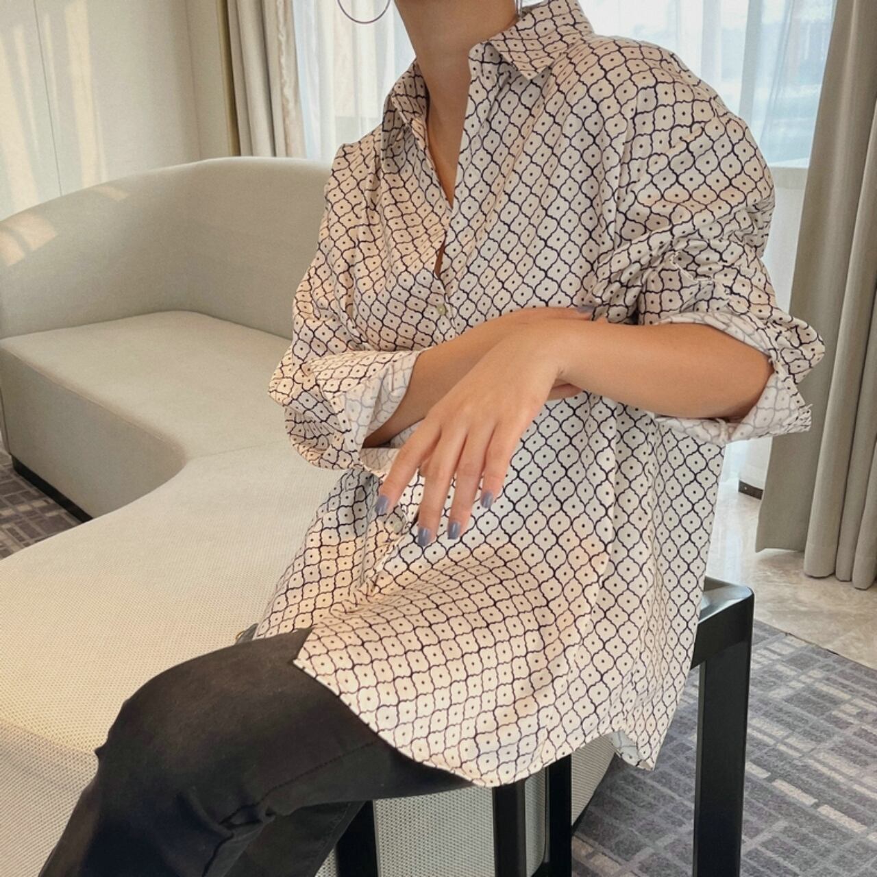 幾何学模様のロングスリーブシャツ。