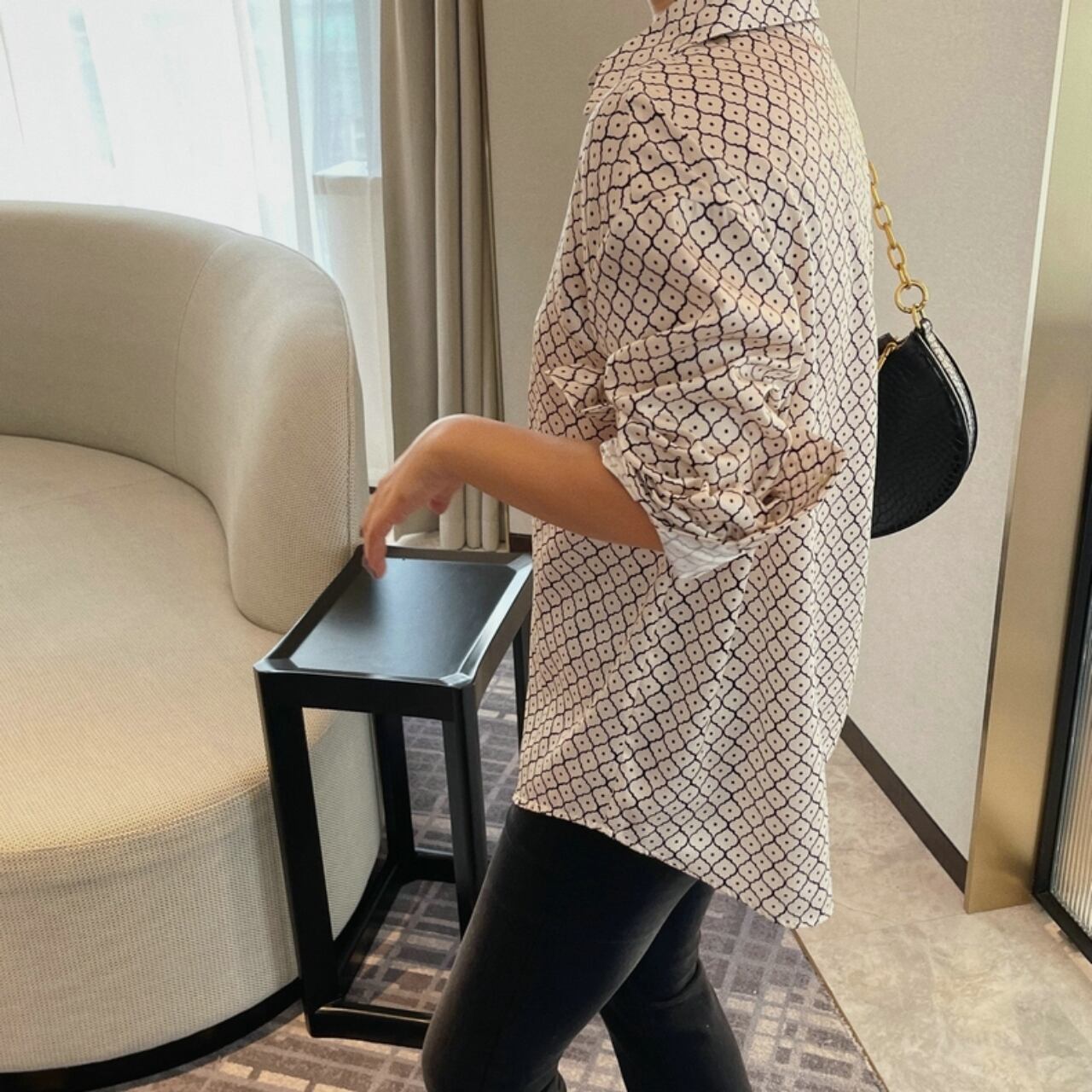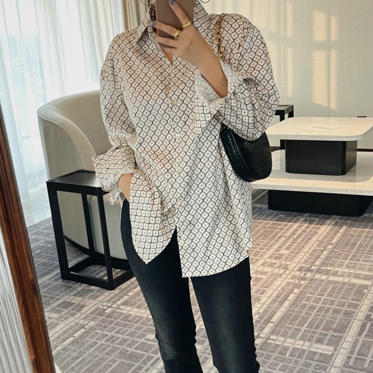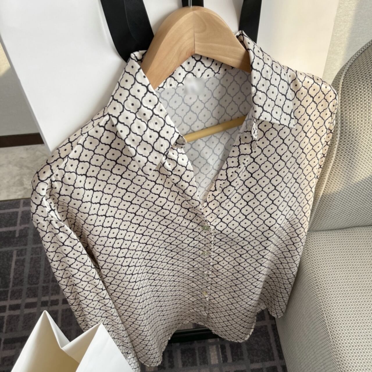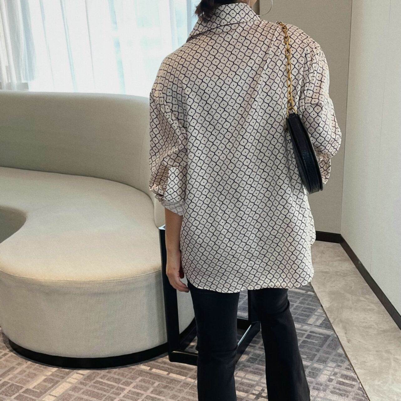 幾何学模様のロングスリーブシャツ。