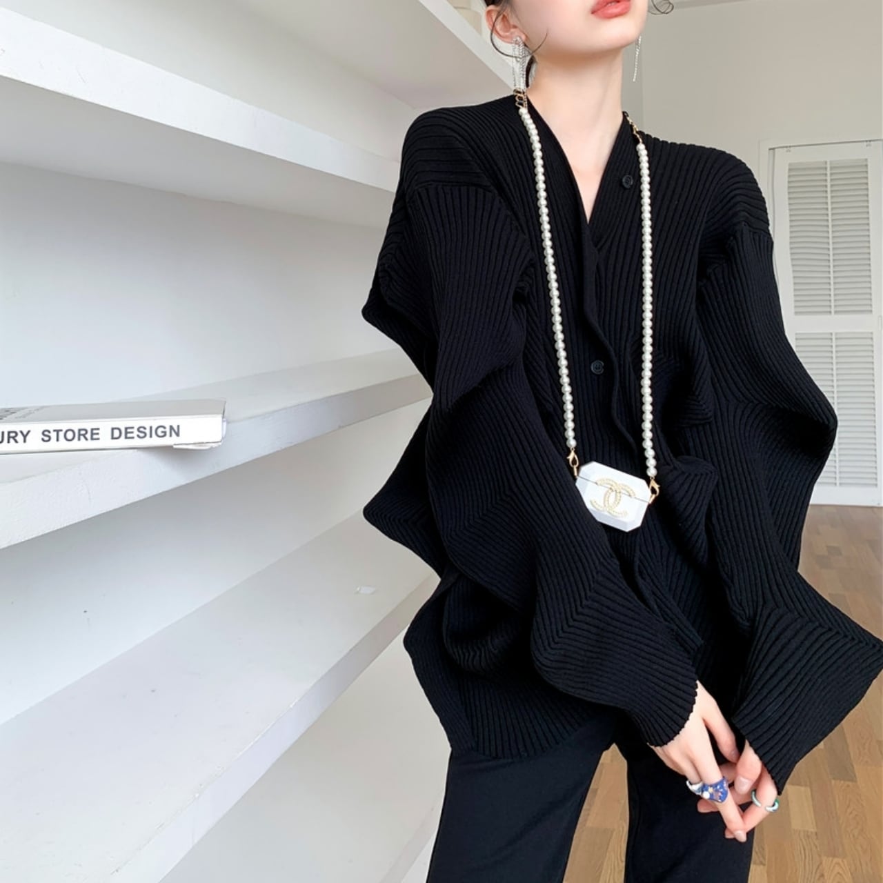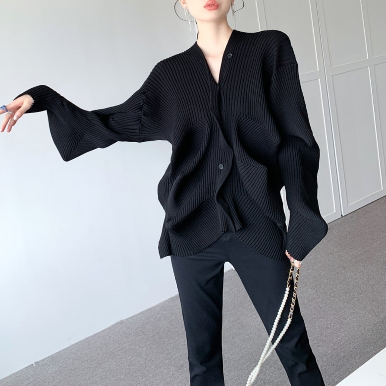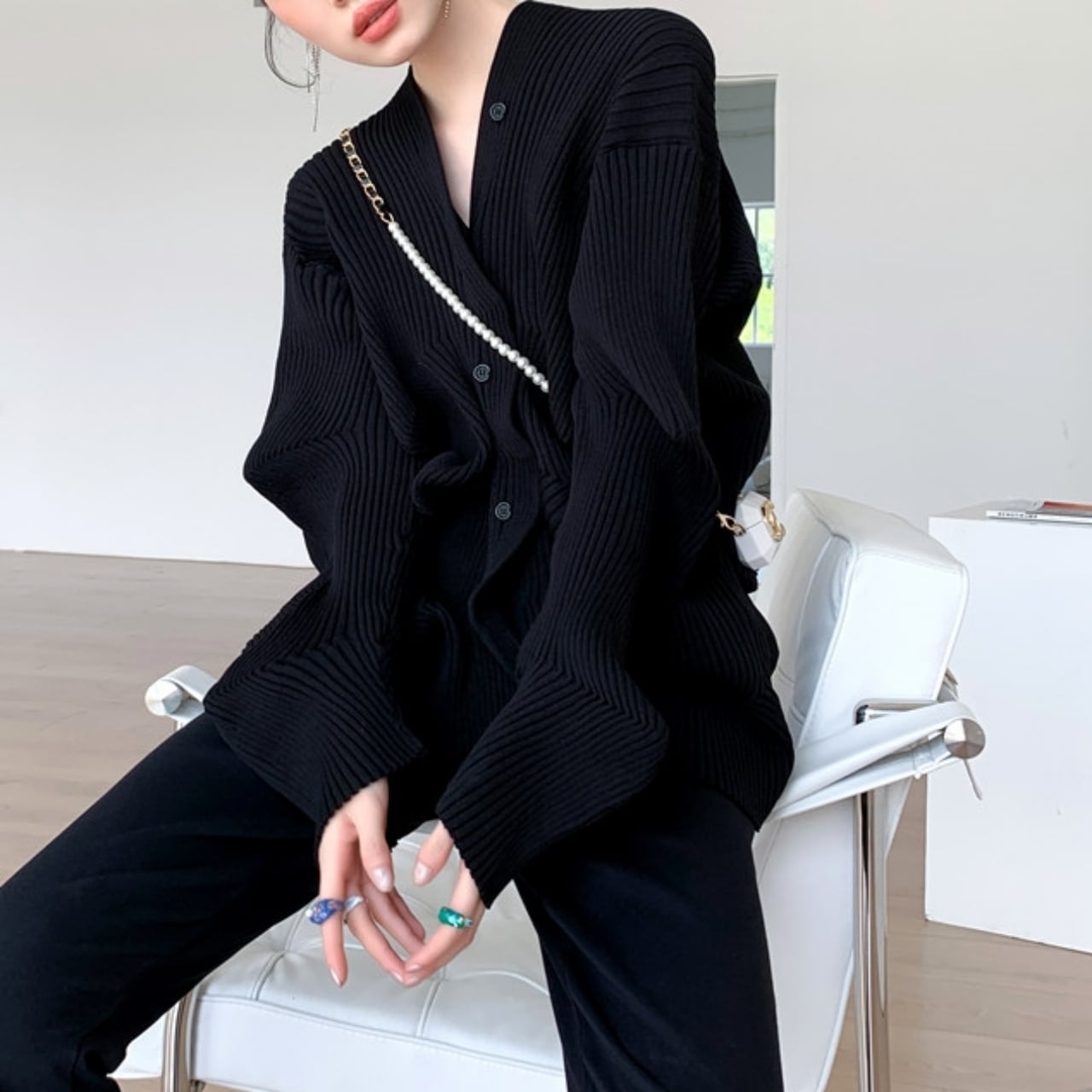 Ribbed Balloon Sleeve Knit Cardigan 00747