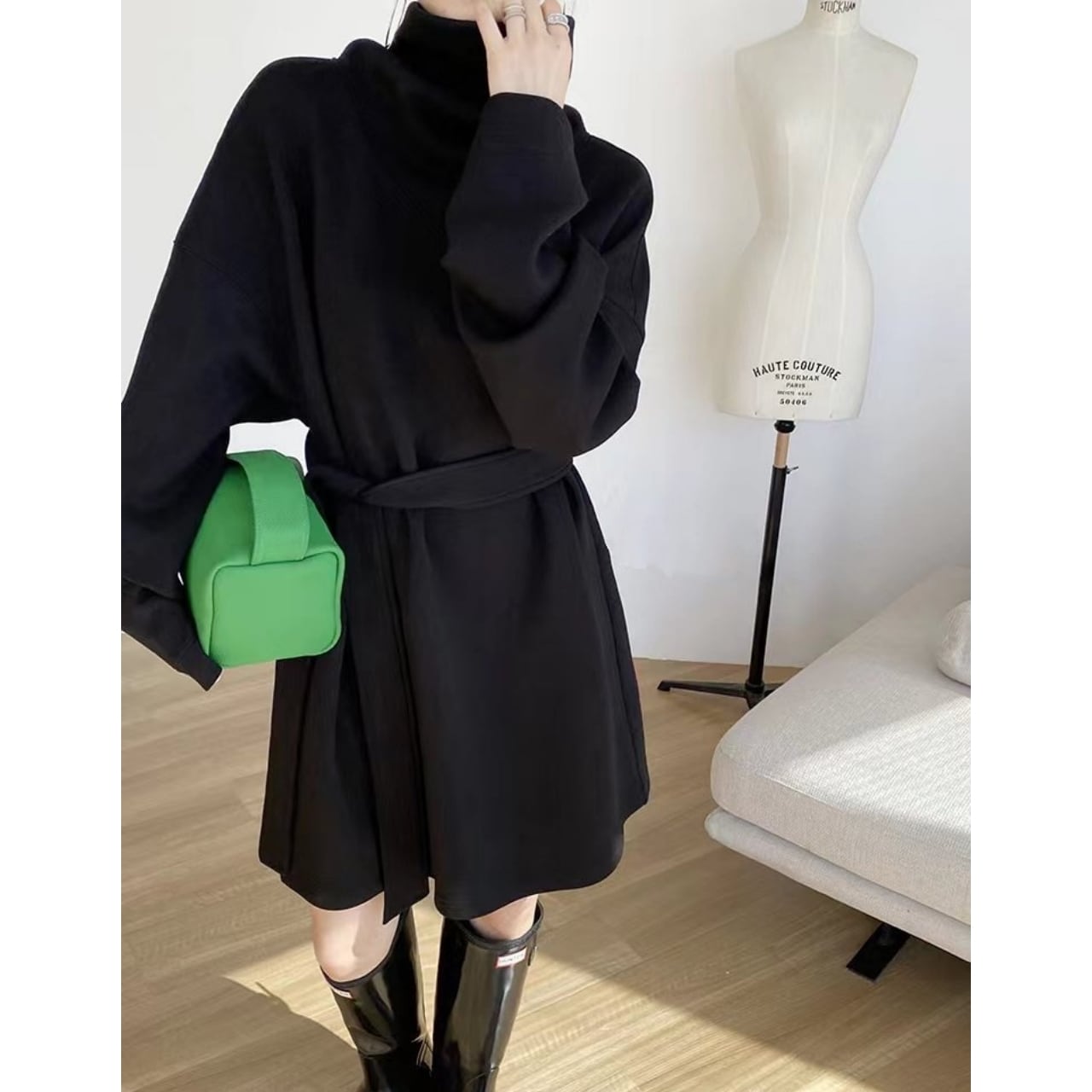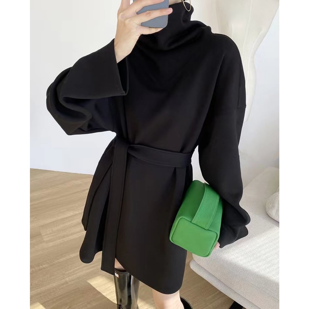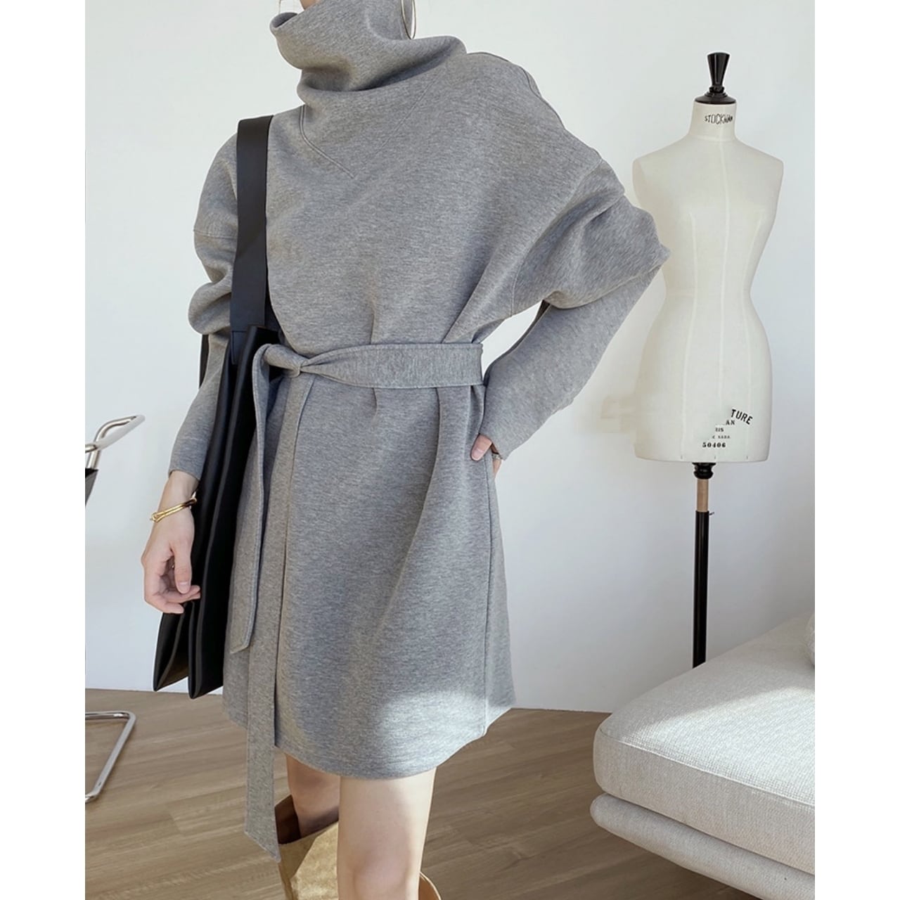 高めのネックが首元を暖かく包み込み、リラックスした着心地を実現するワンピースです。
