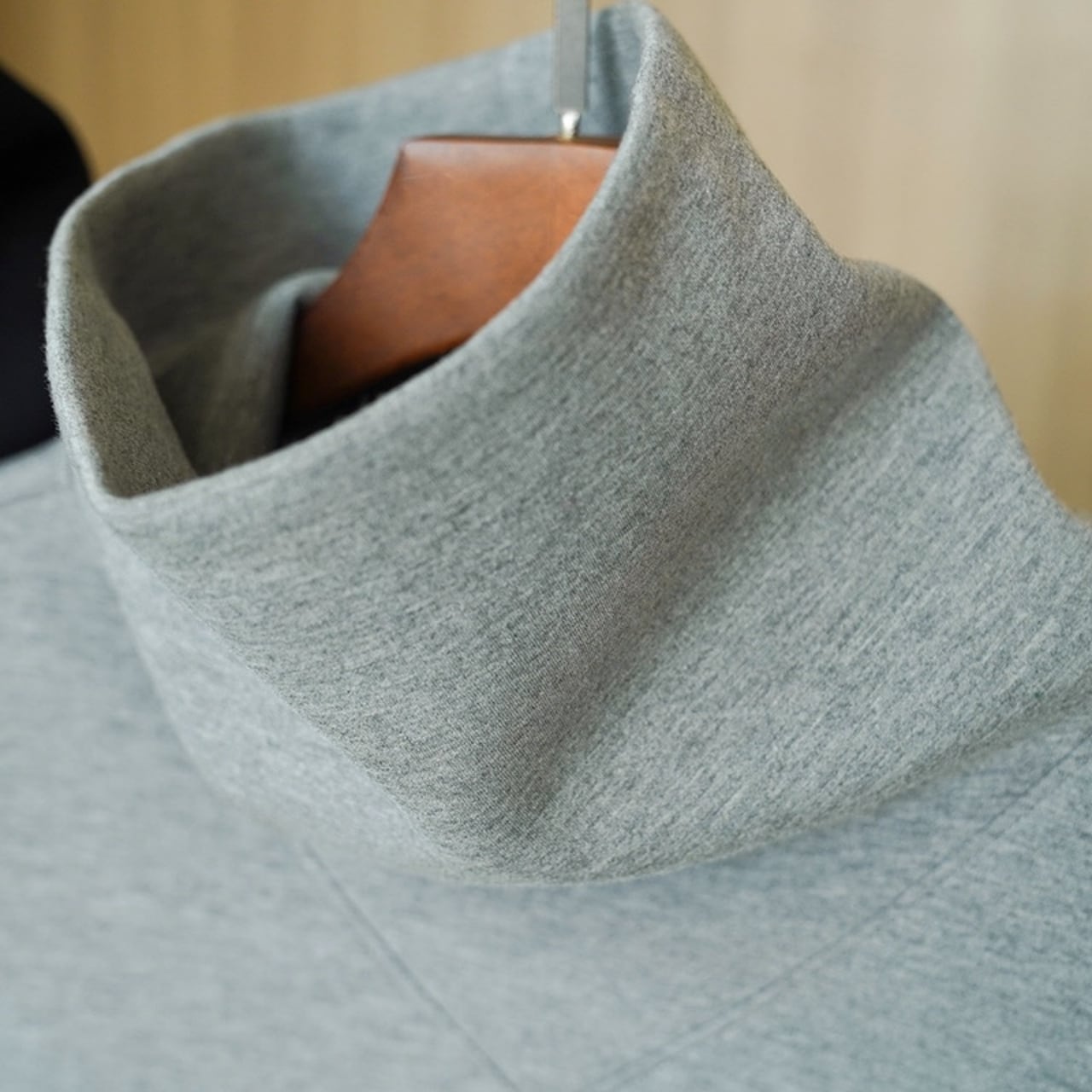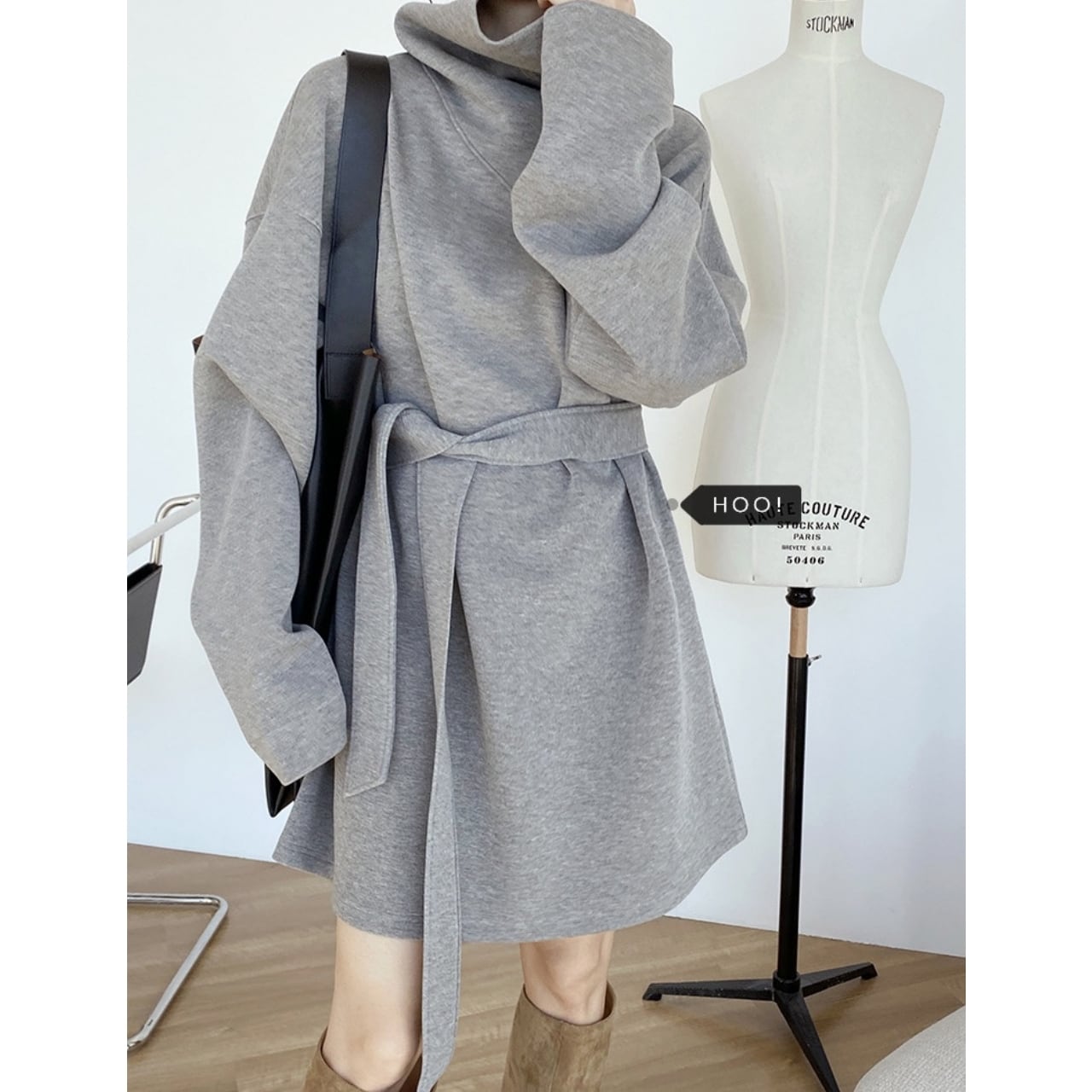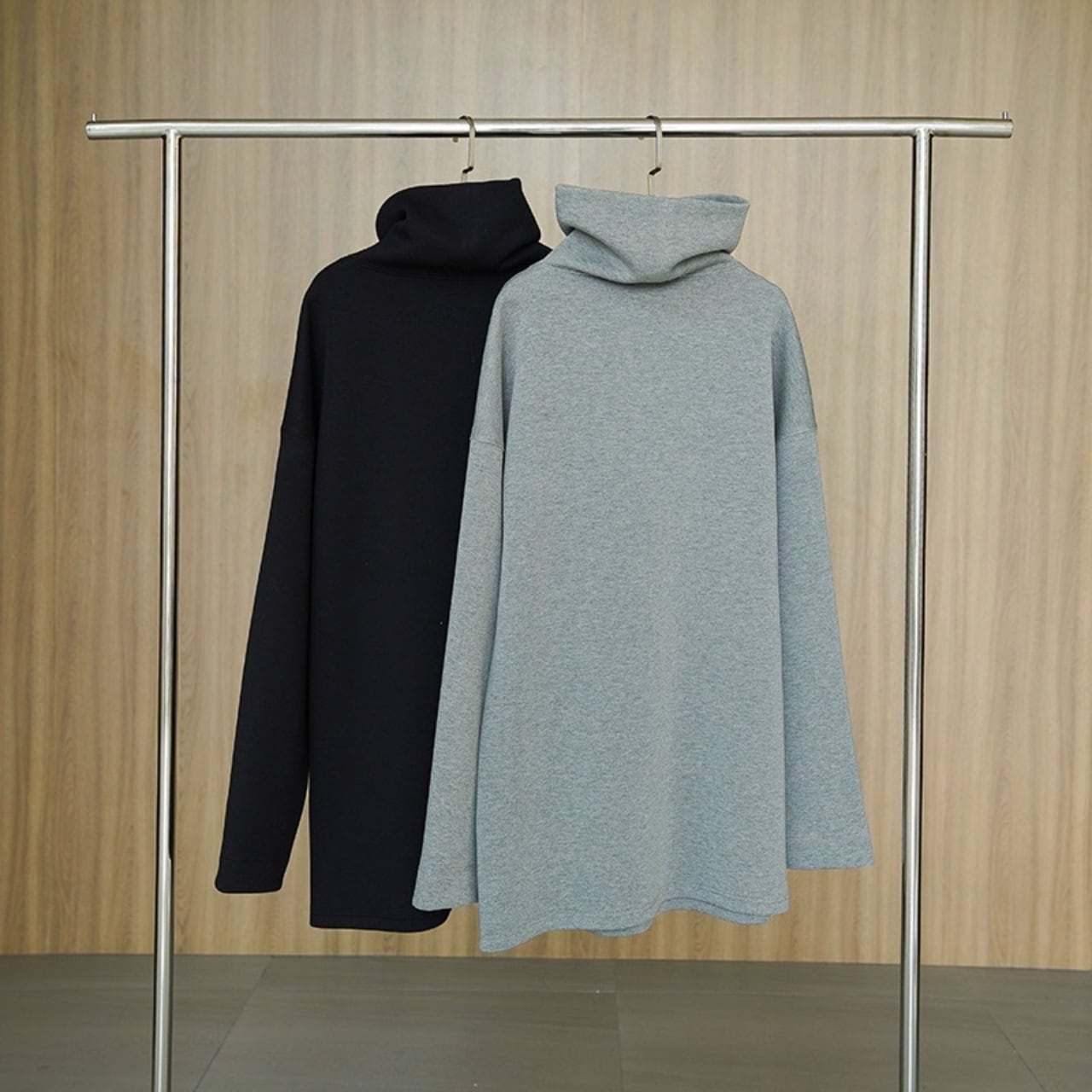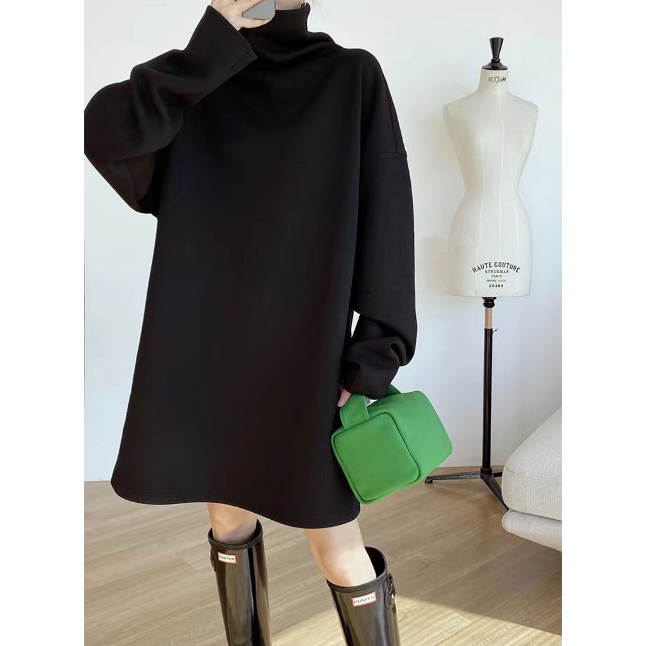 高めのネックが首元を暖かく包み込み、リラックスした着心地を実現するワンピースです。
