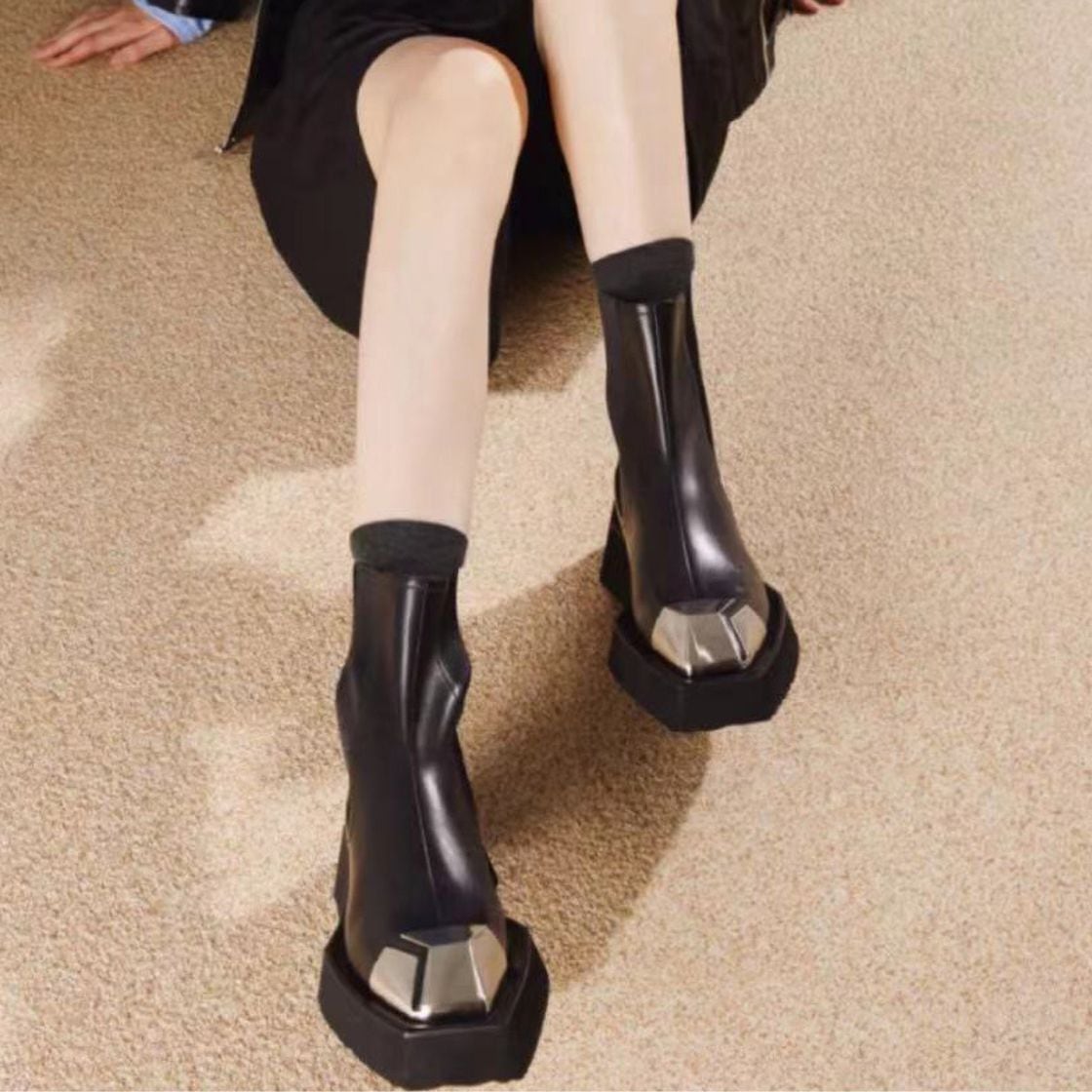Metal Chunky Heel Ankle Boots 00800