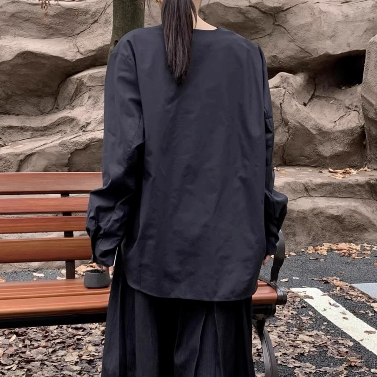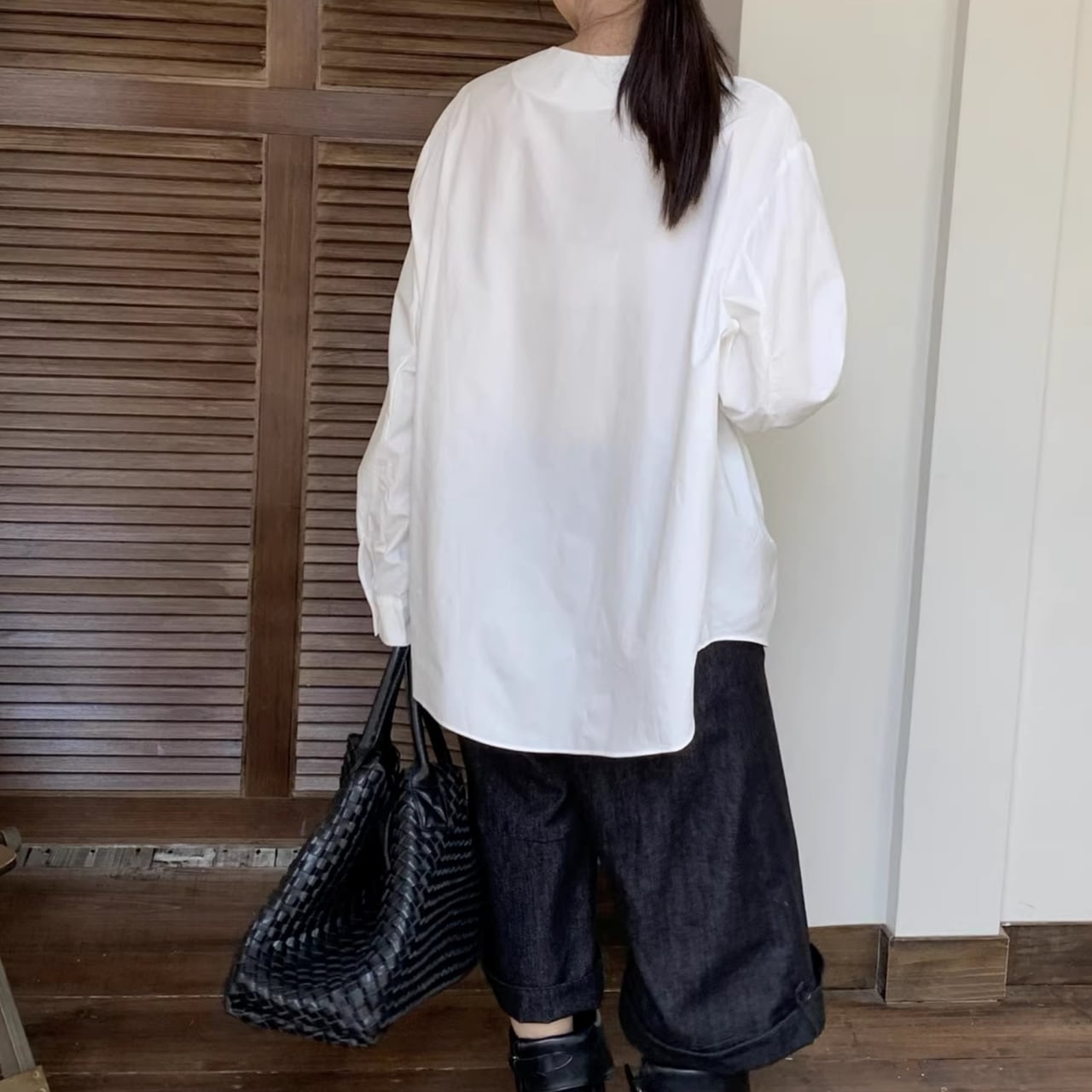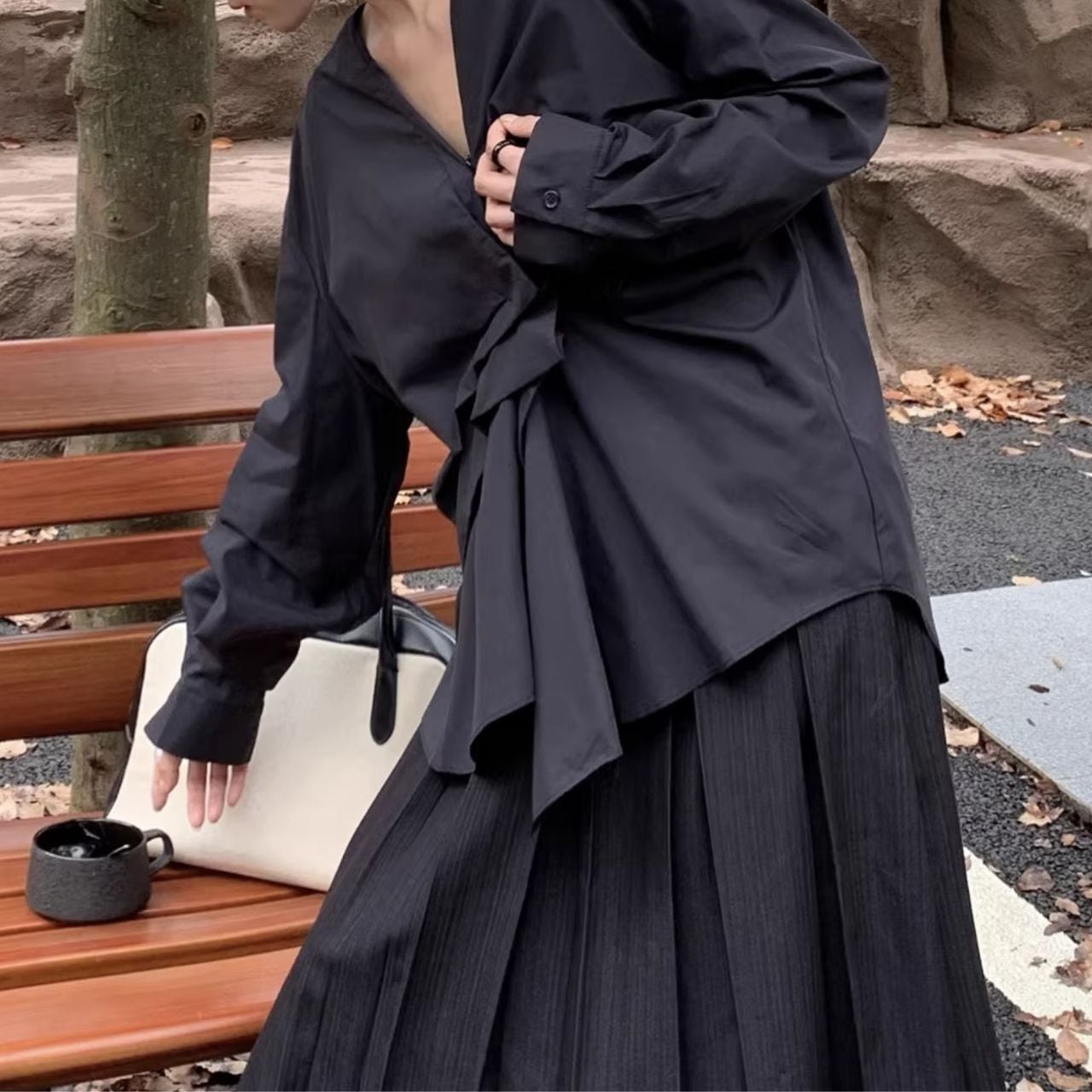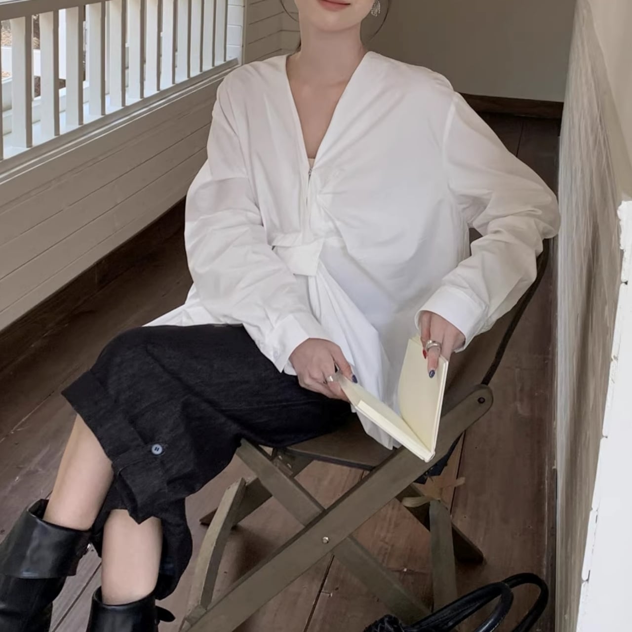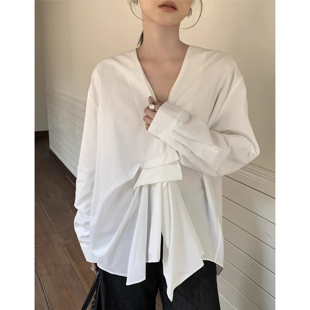 Vネックにプリーツを施したフレンチライクなシャツ。