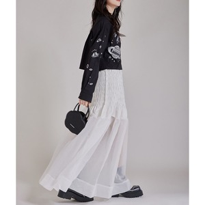 ユニークなデザインでありながら、シルエットをすっきりと見せる仕上がりです。