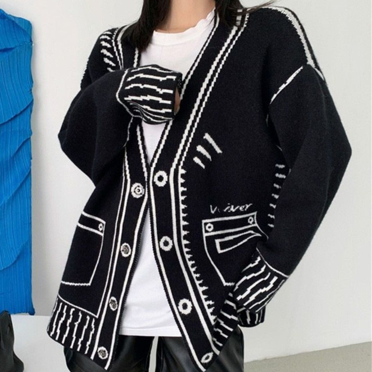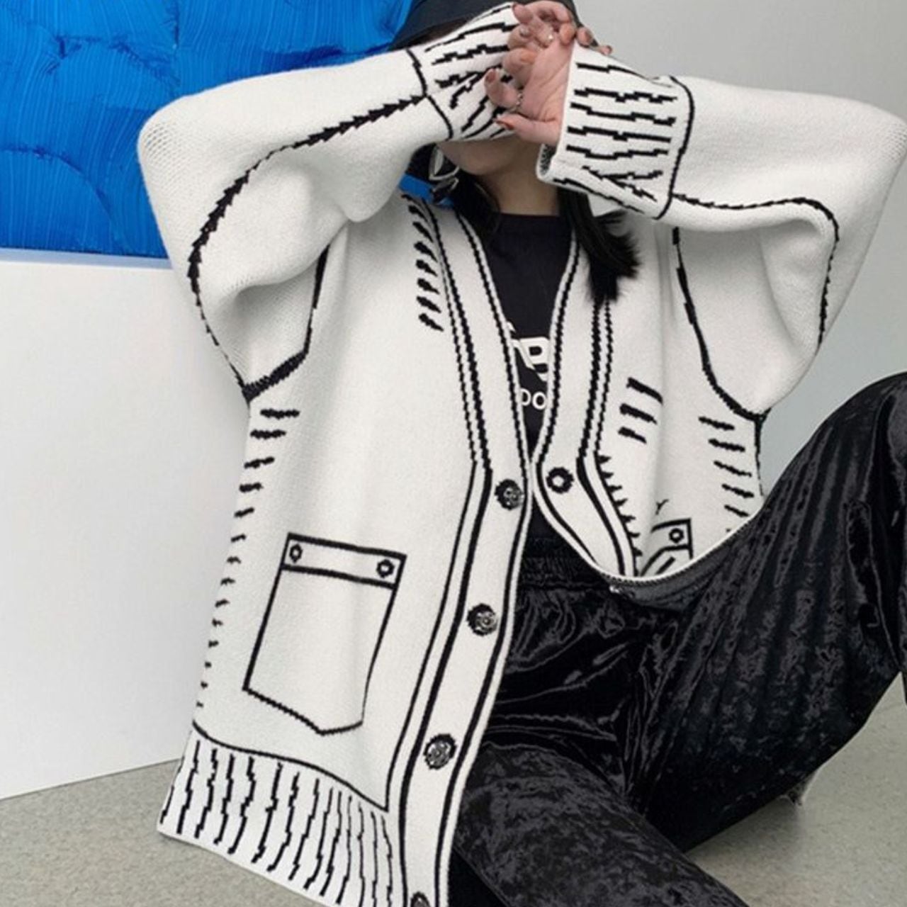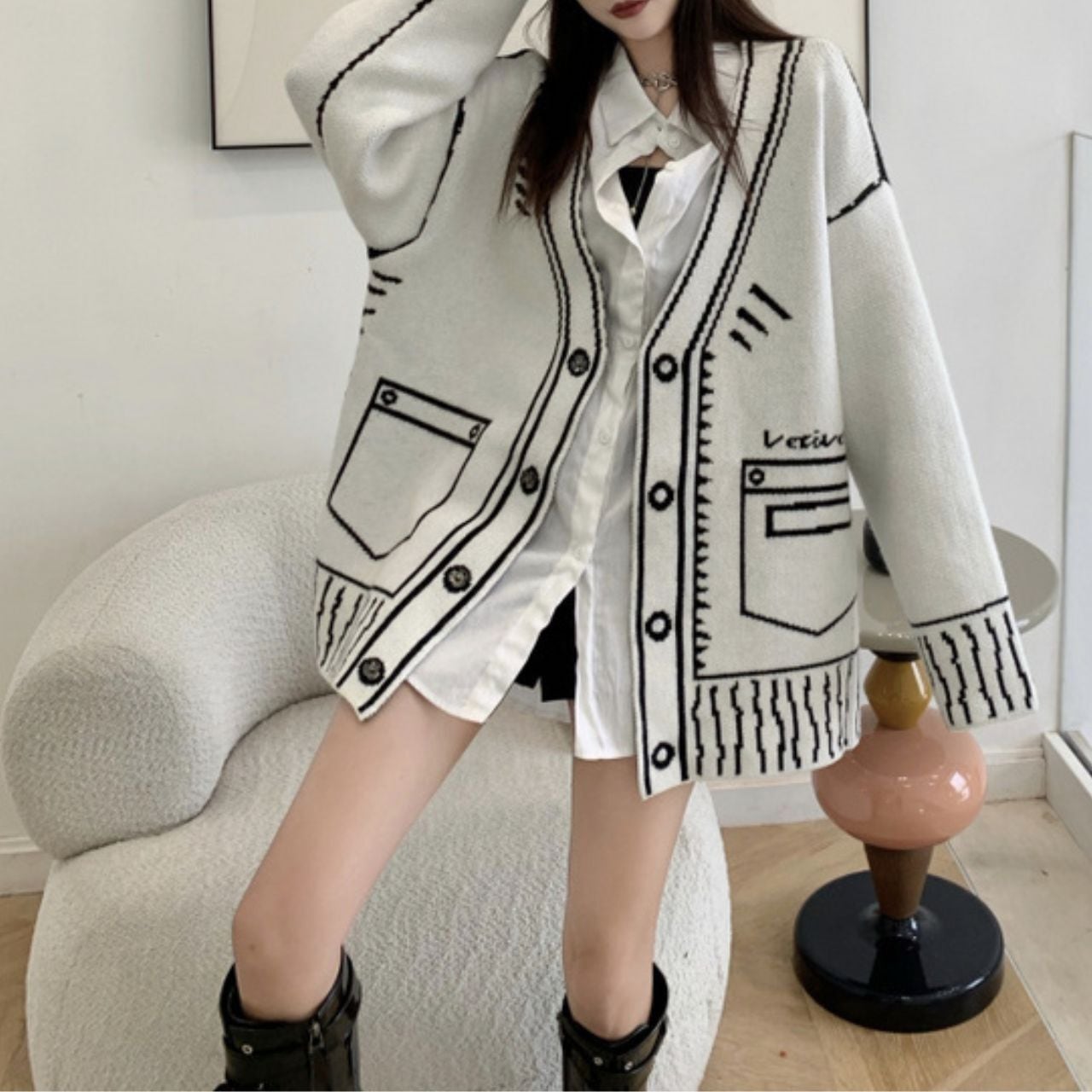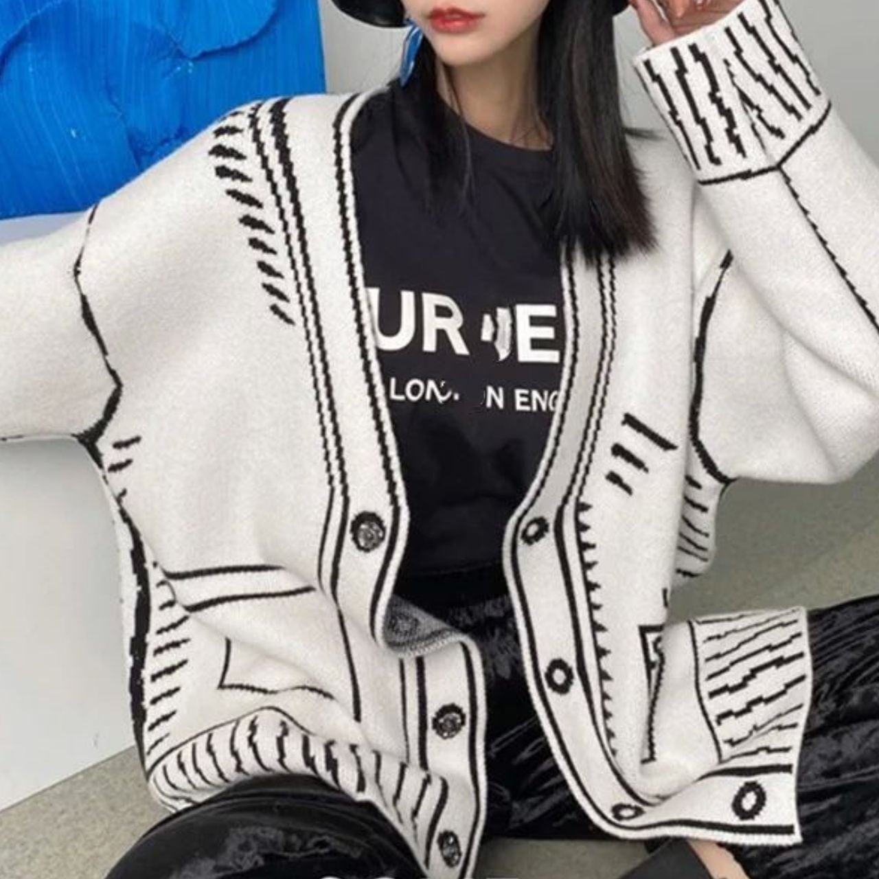 Graphic Oversized Knit Cardigan 00832