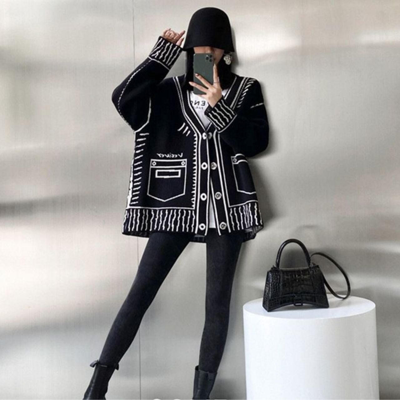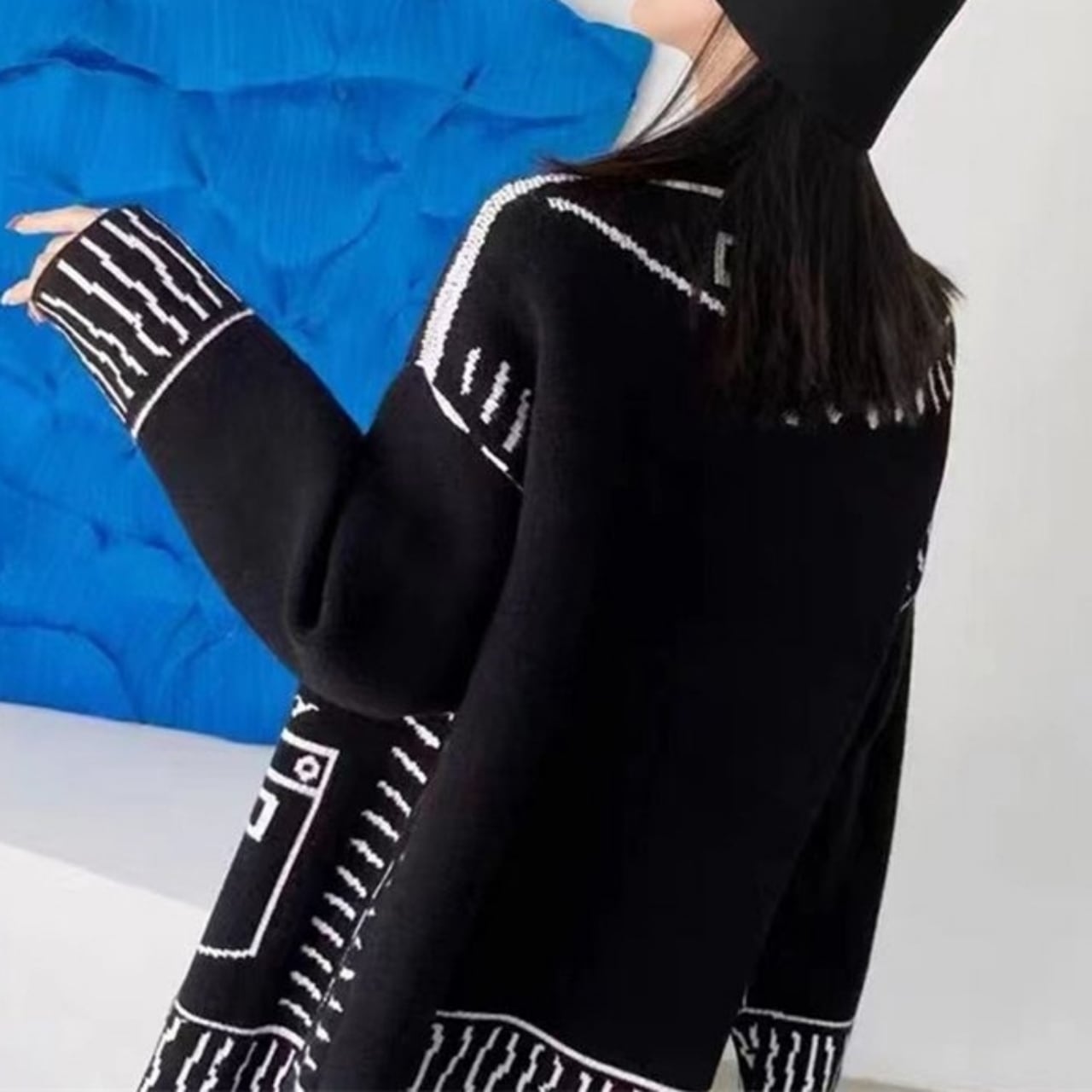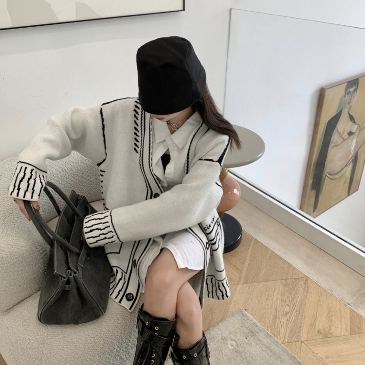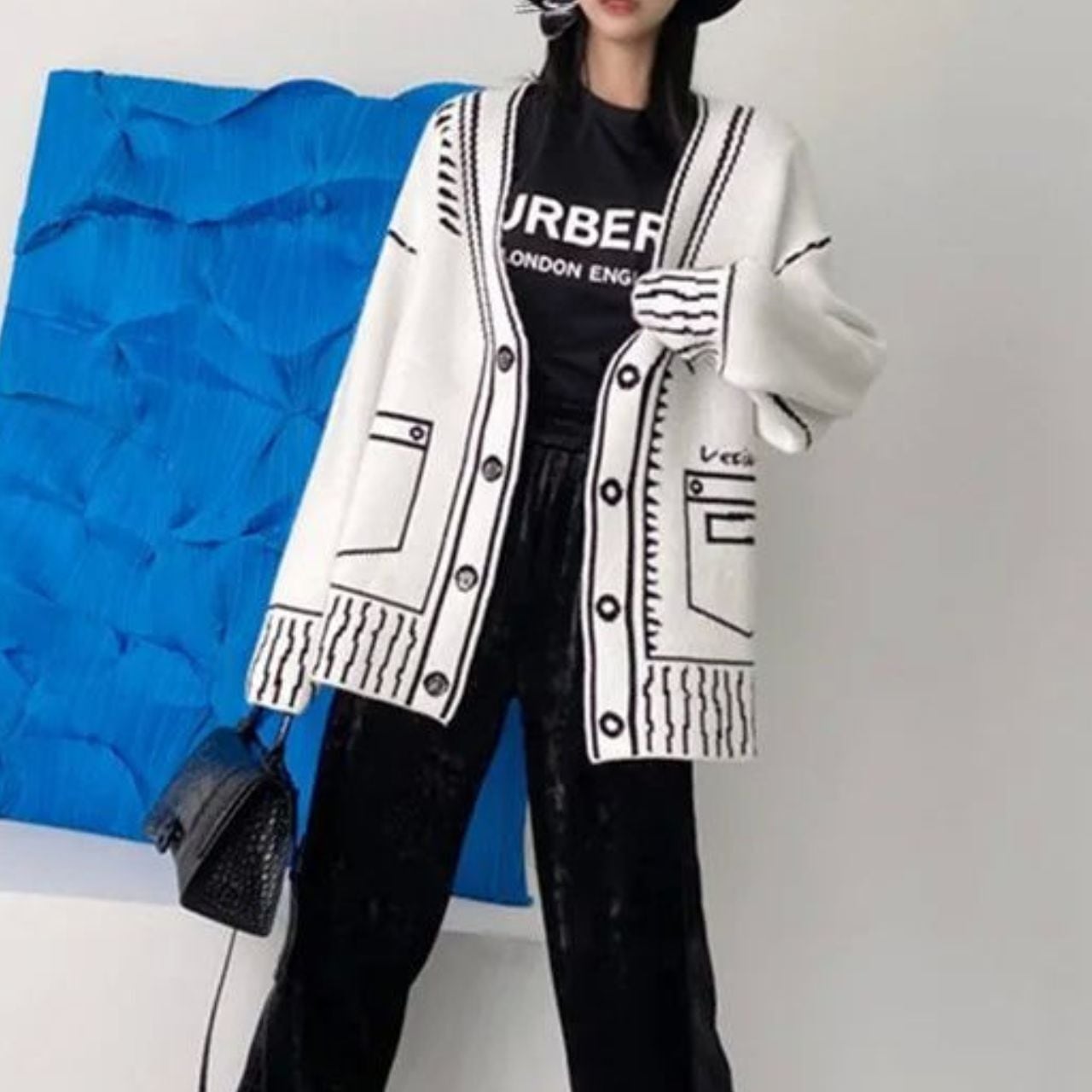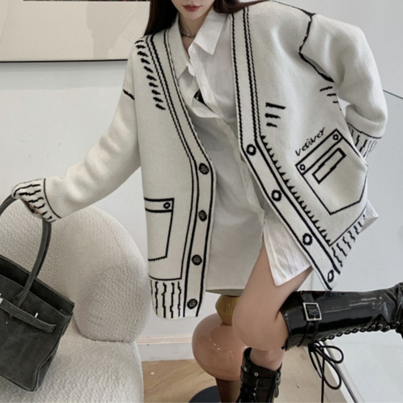 Graphic Oversized Knit Cardigan 00832