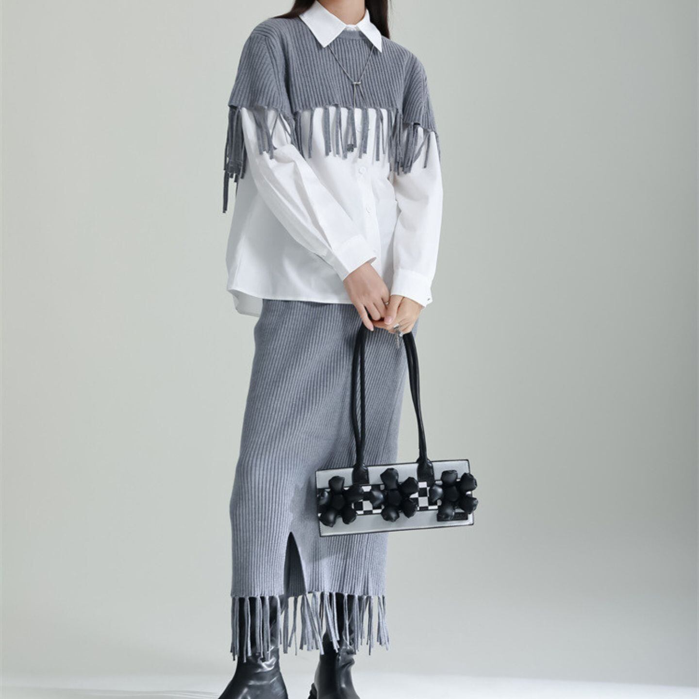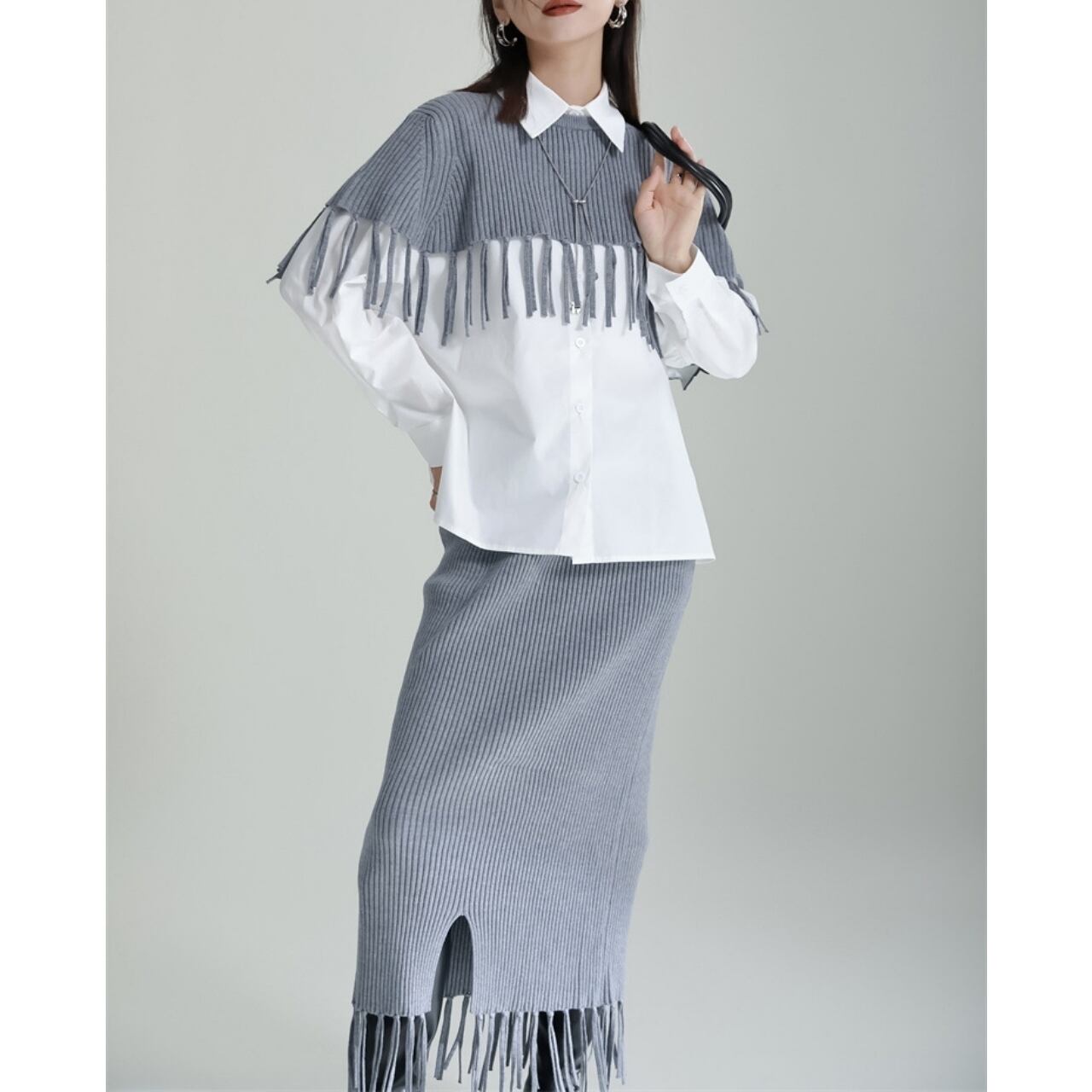 シンプルなデザインながら、フリンジが動きのあるおしゃれな雰囲気を演出します。トップスは他のアイテムとレイヤードができて着回し力抜群。