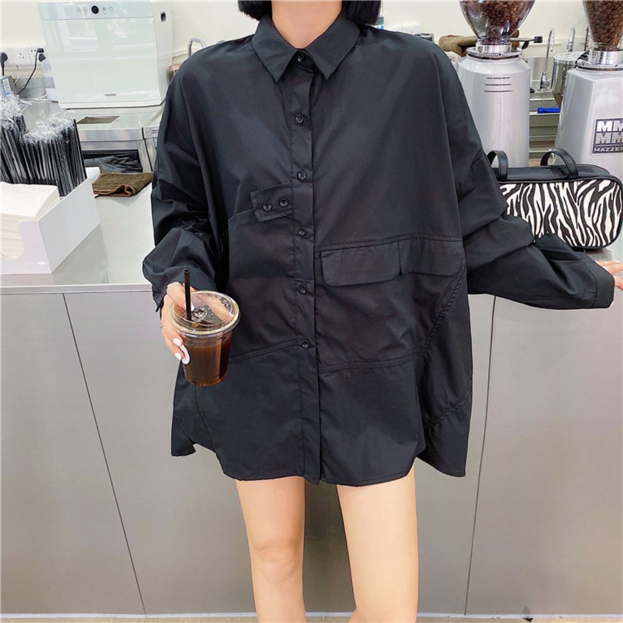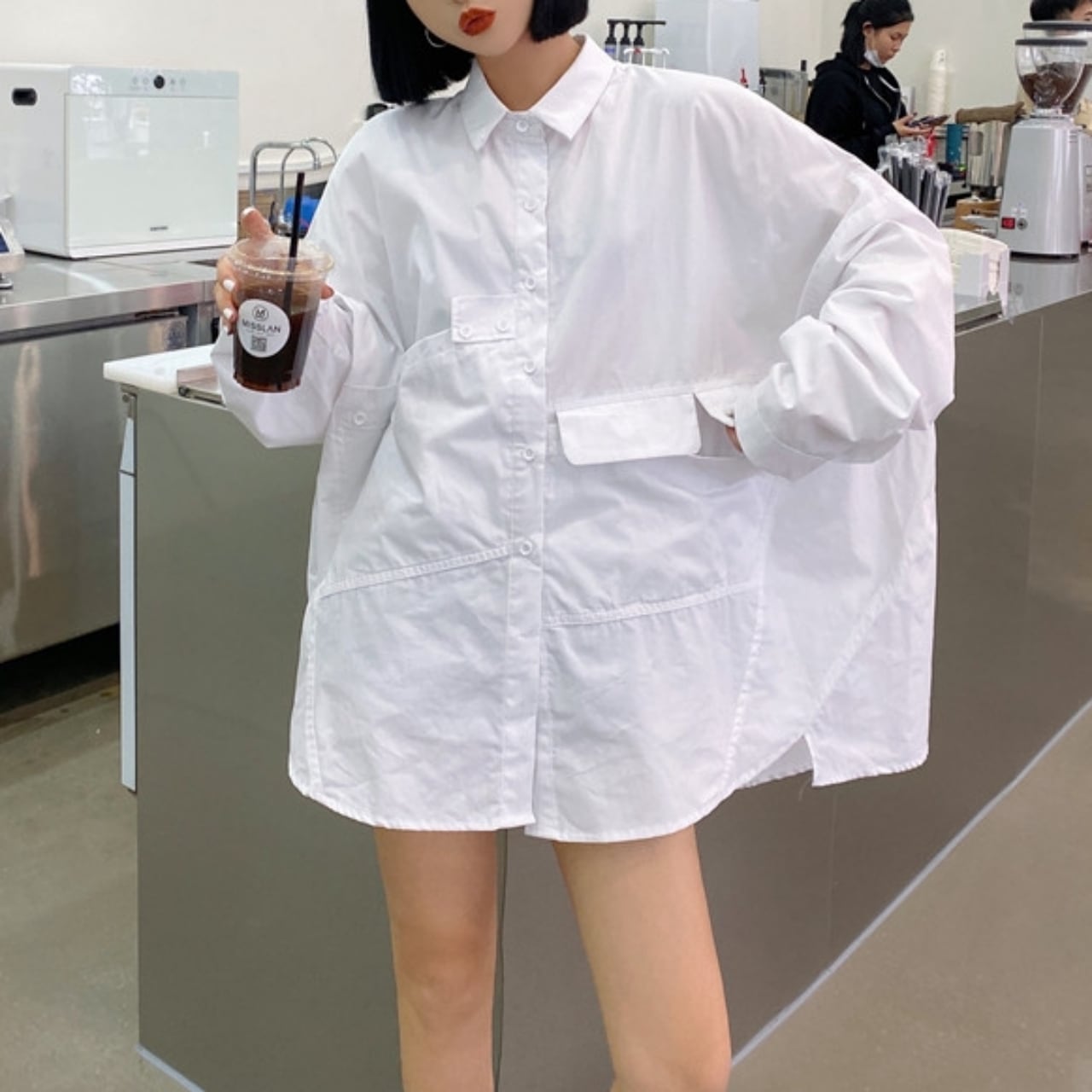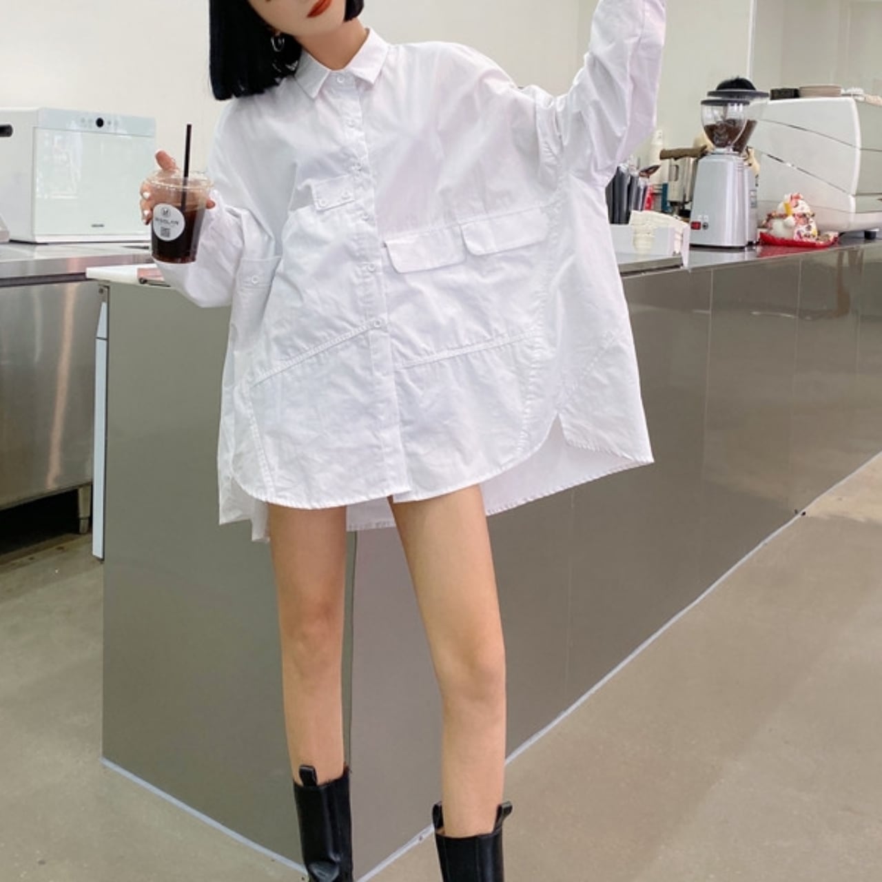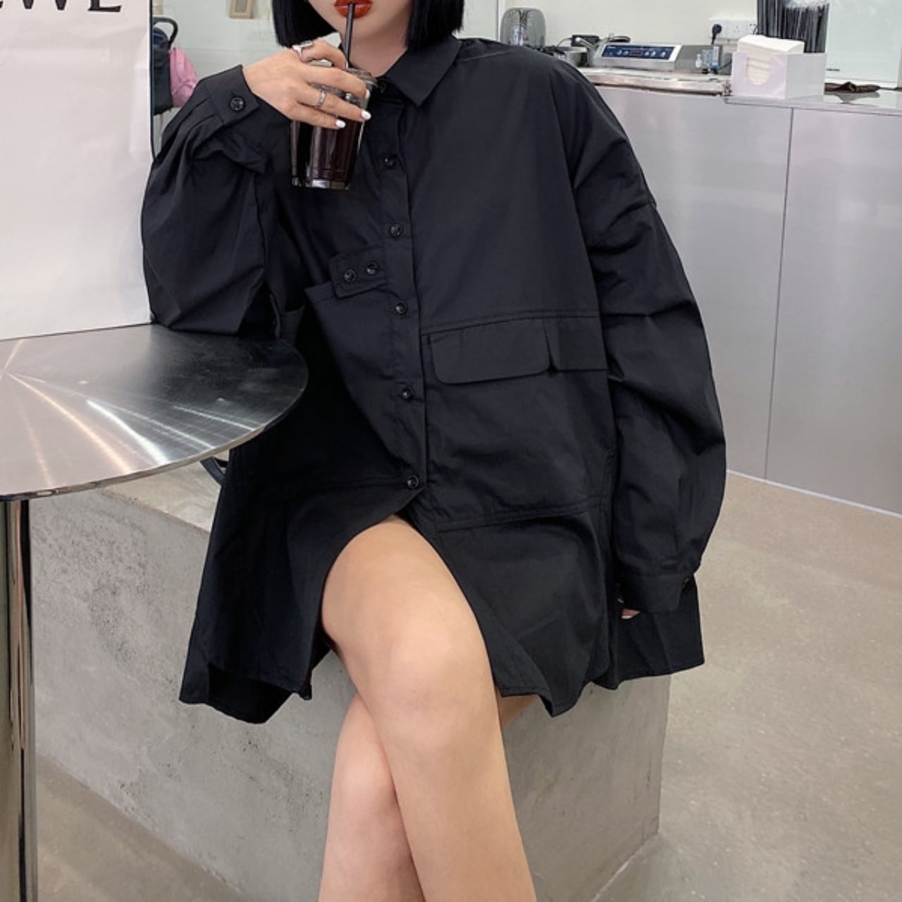 パッチポケットがアクセントになったオーバーサイズシャツドレス。