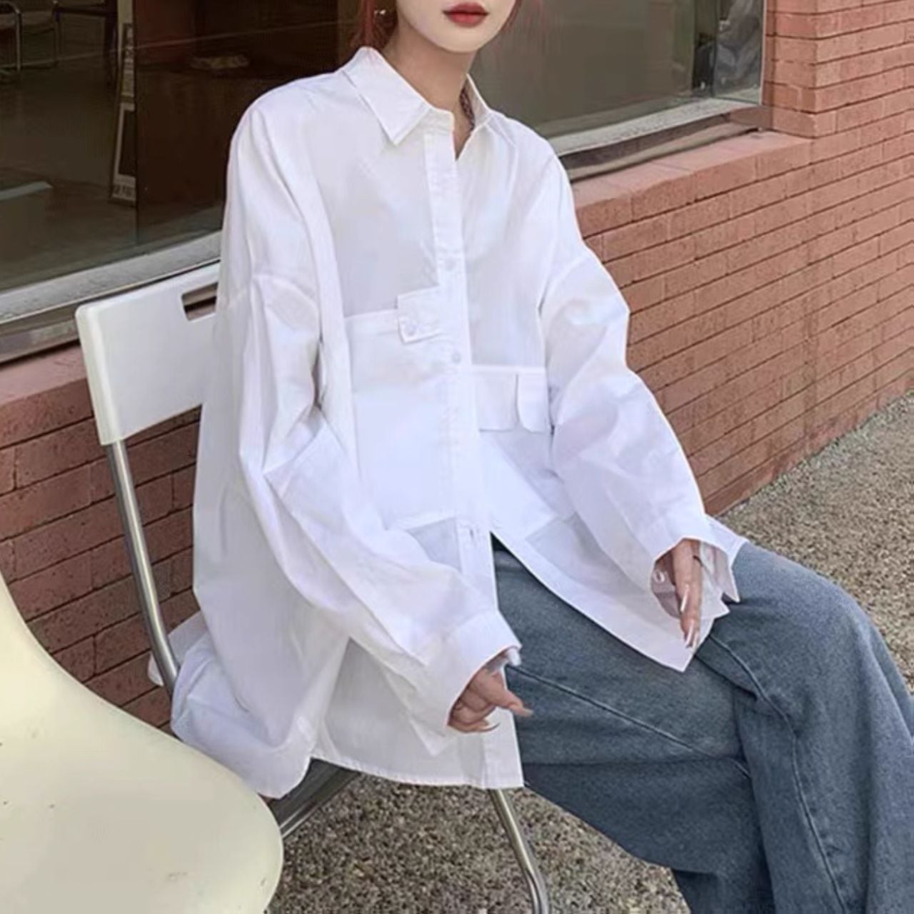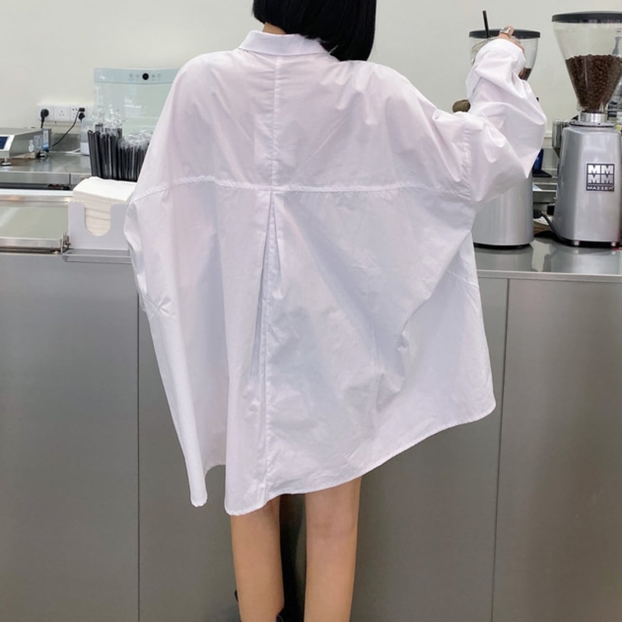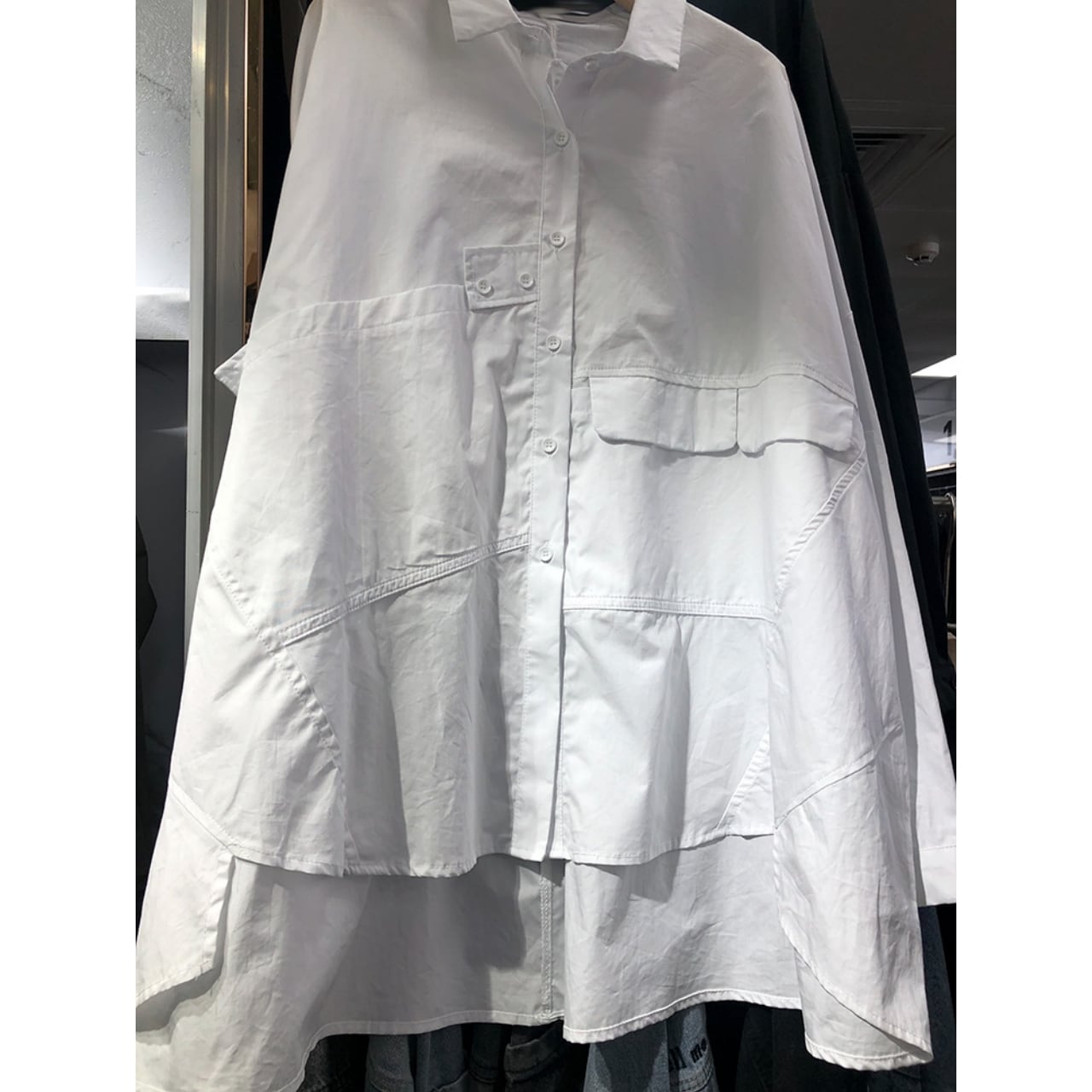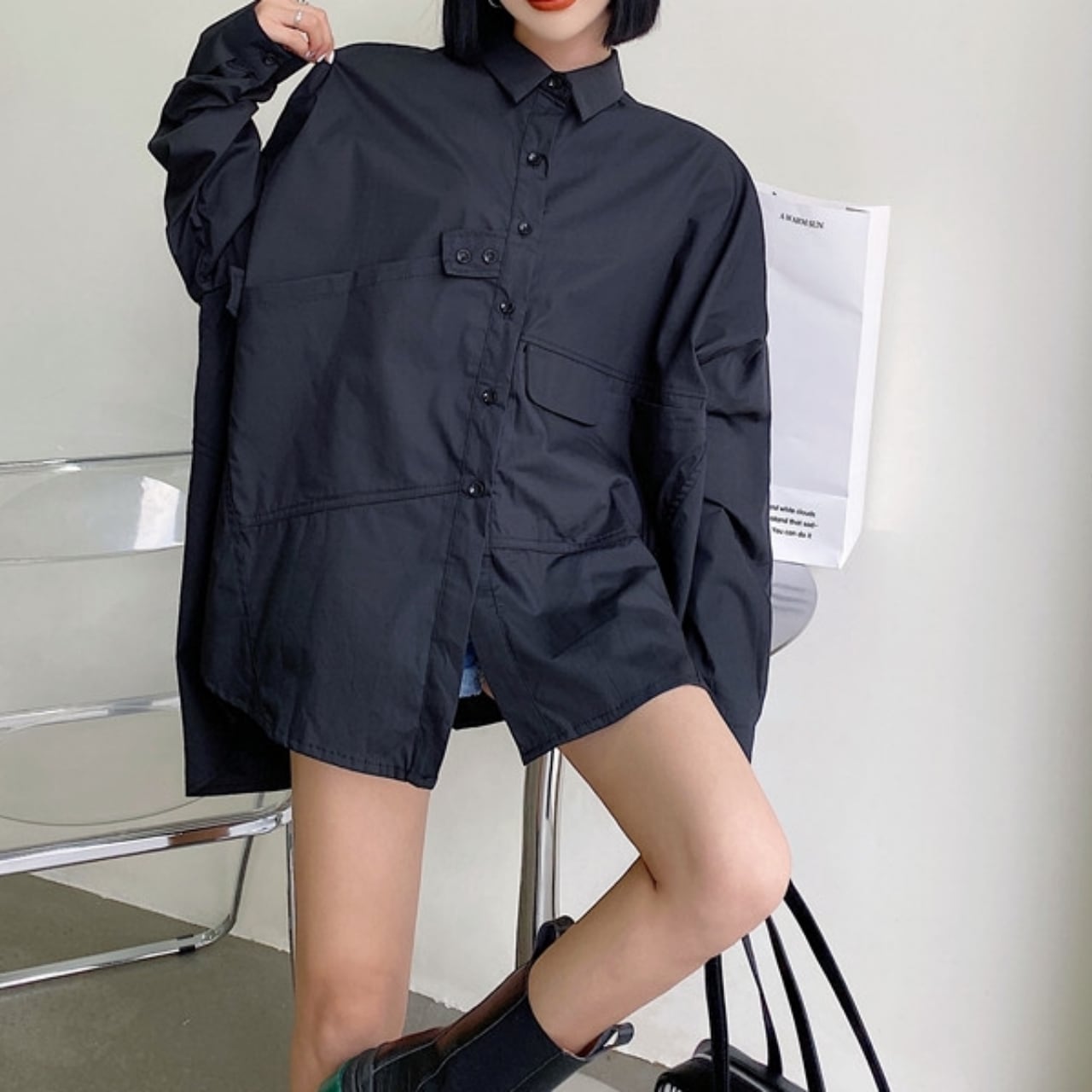 パッチポケットがアクセントになったオーバーサイズシャツドレス。