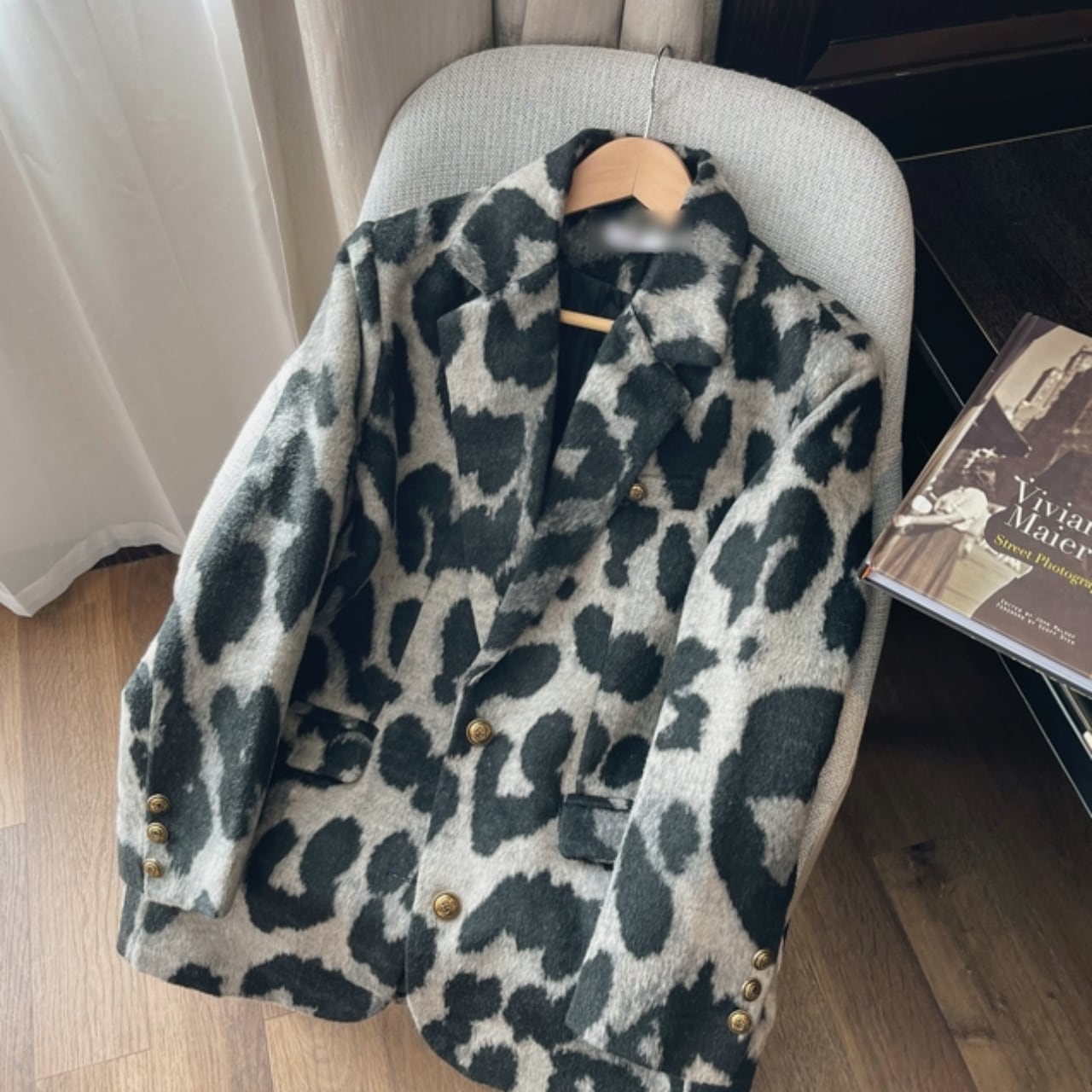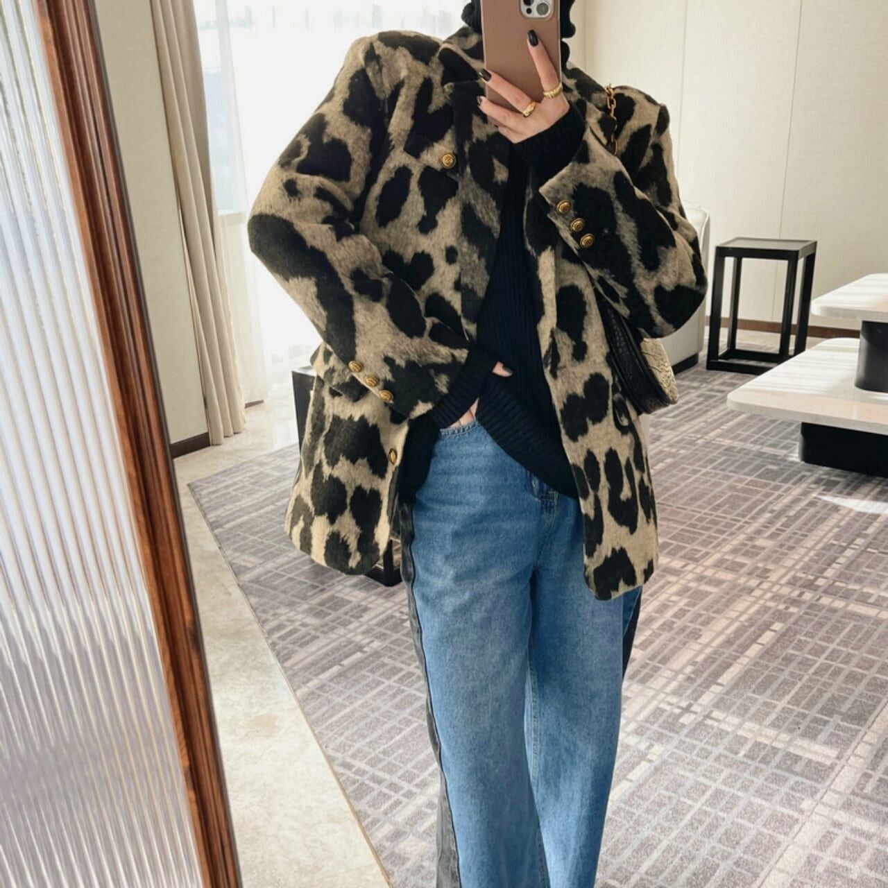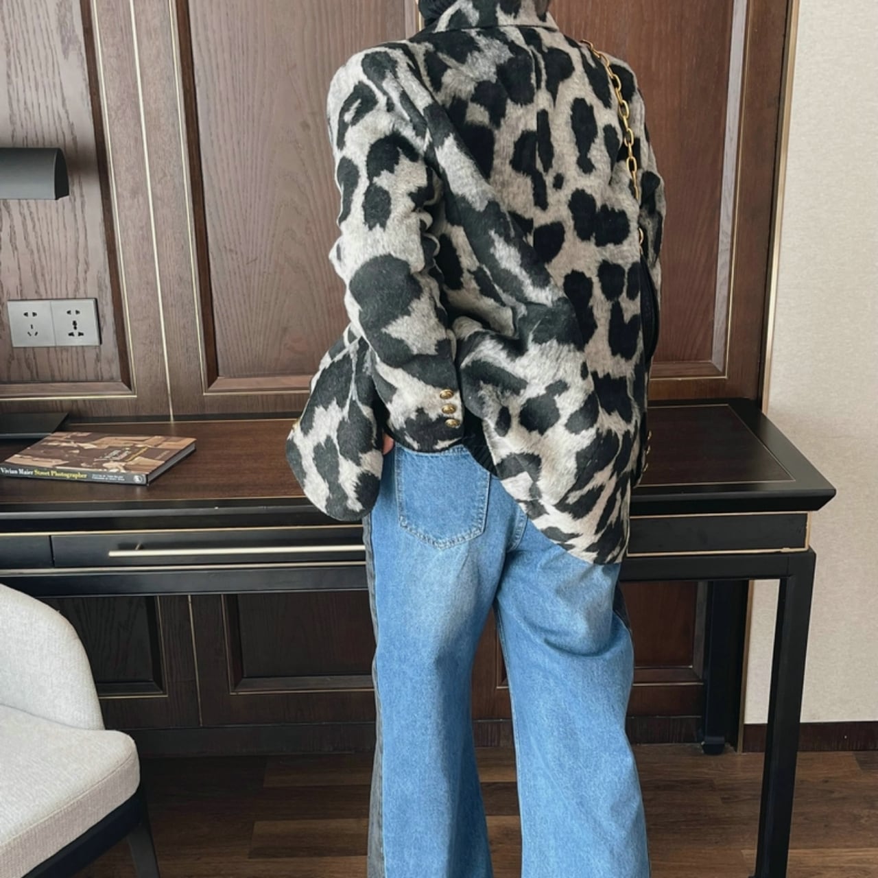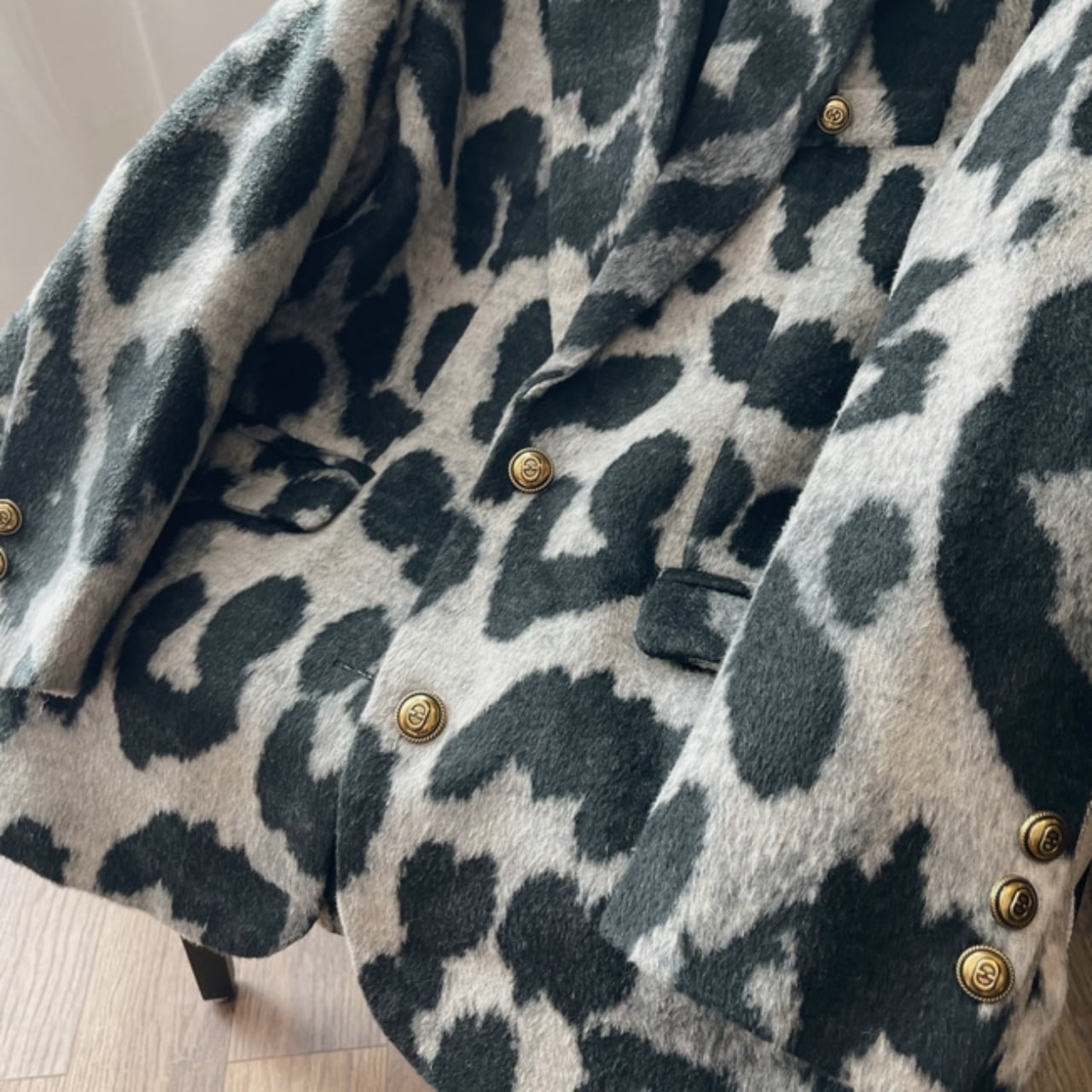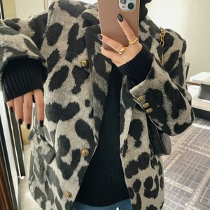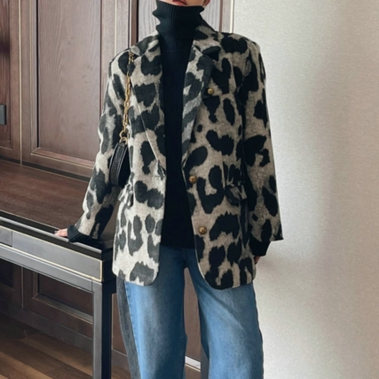 アニマル柄が印象的なダブルブレストジャケット。羽織るだけでコーディネートを格上げします。ゆとりのあるシルエットで、Tシャツやタートルネックなどのレイヤードも自在。