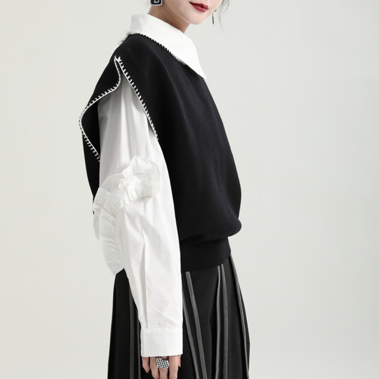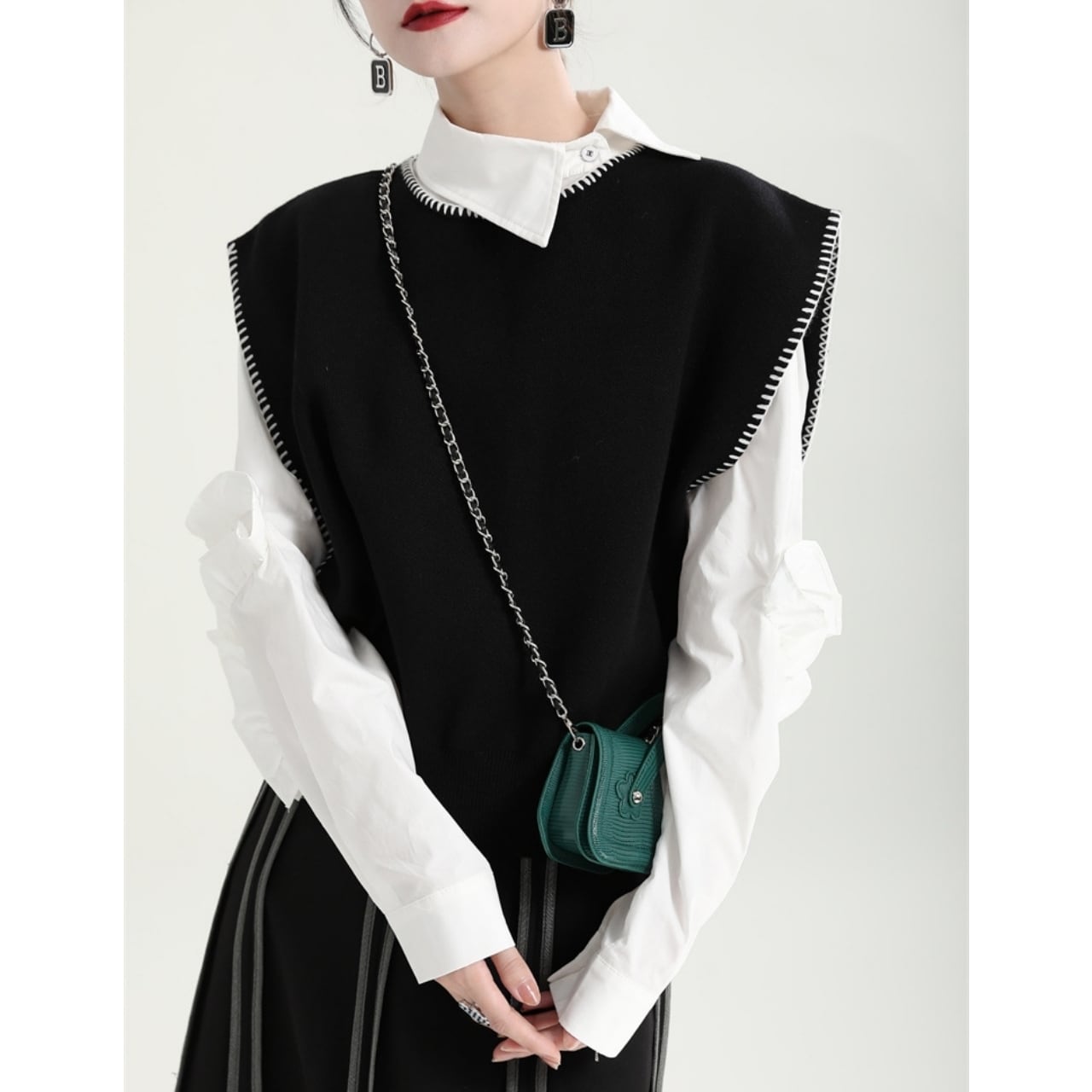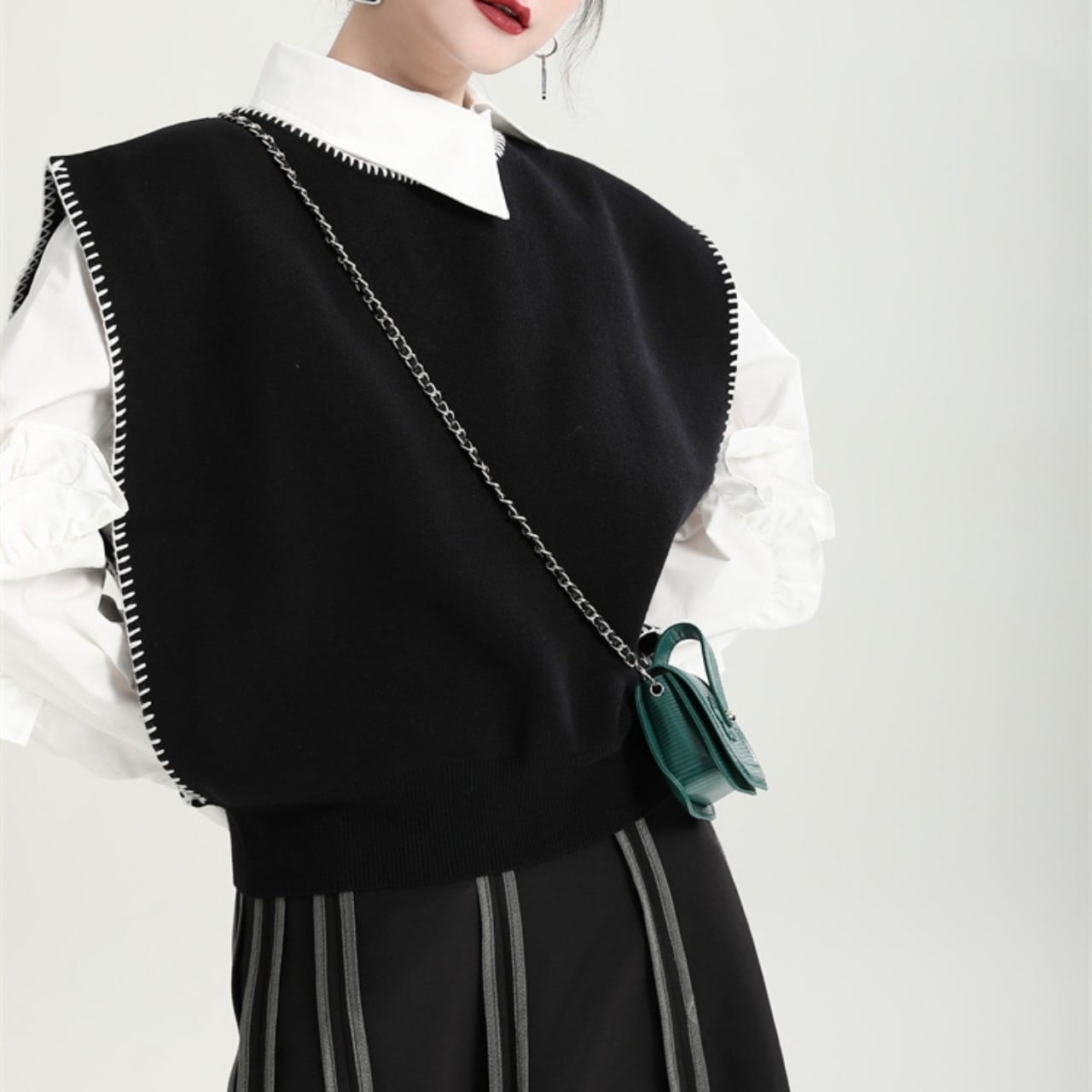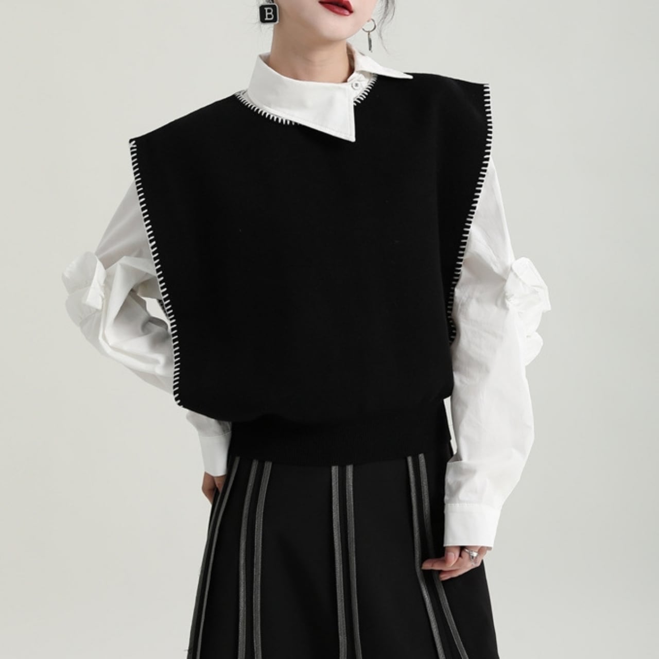 エッジの効いたステッチデザインが目を引くニットベスト。