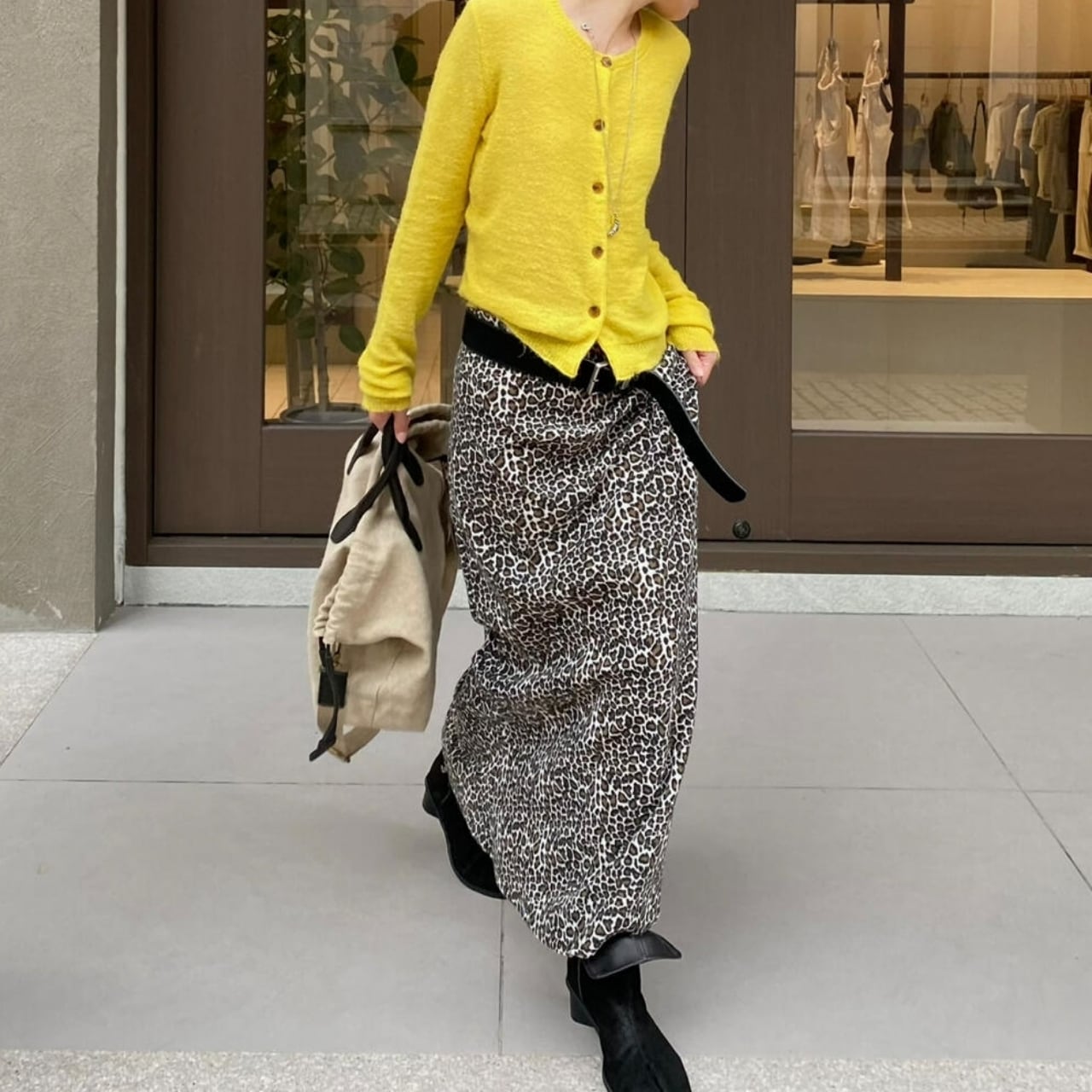 コーディネートの主役になるアニマルプリントのミディスカート。