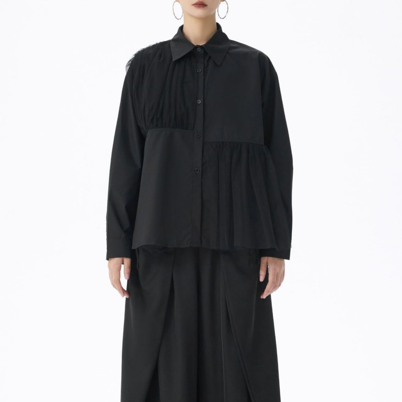 モノトーンの配色が洗練された印象を与え、甘さを抑えた大人のスタイルを演出します。