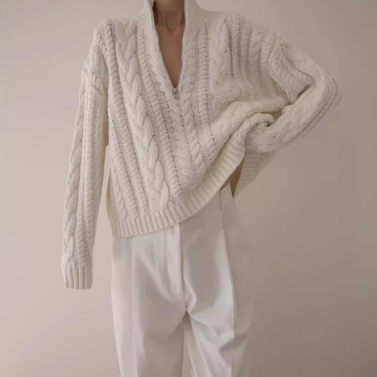 ハーフジップがアクセントになった、リラックス感漂うニット。