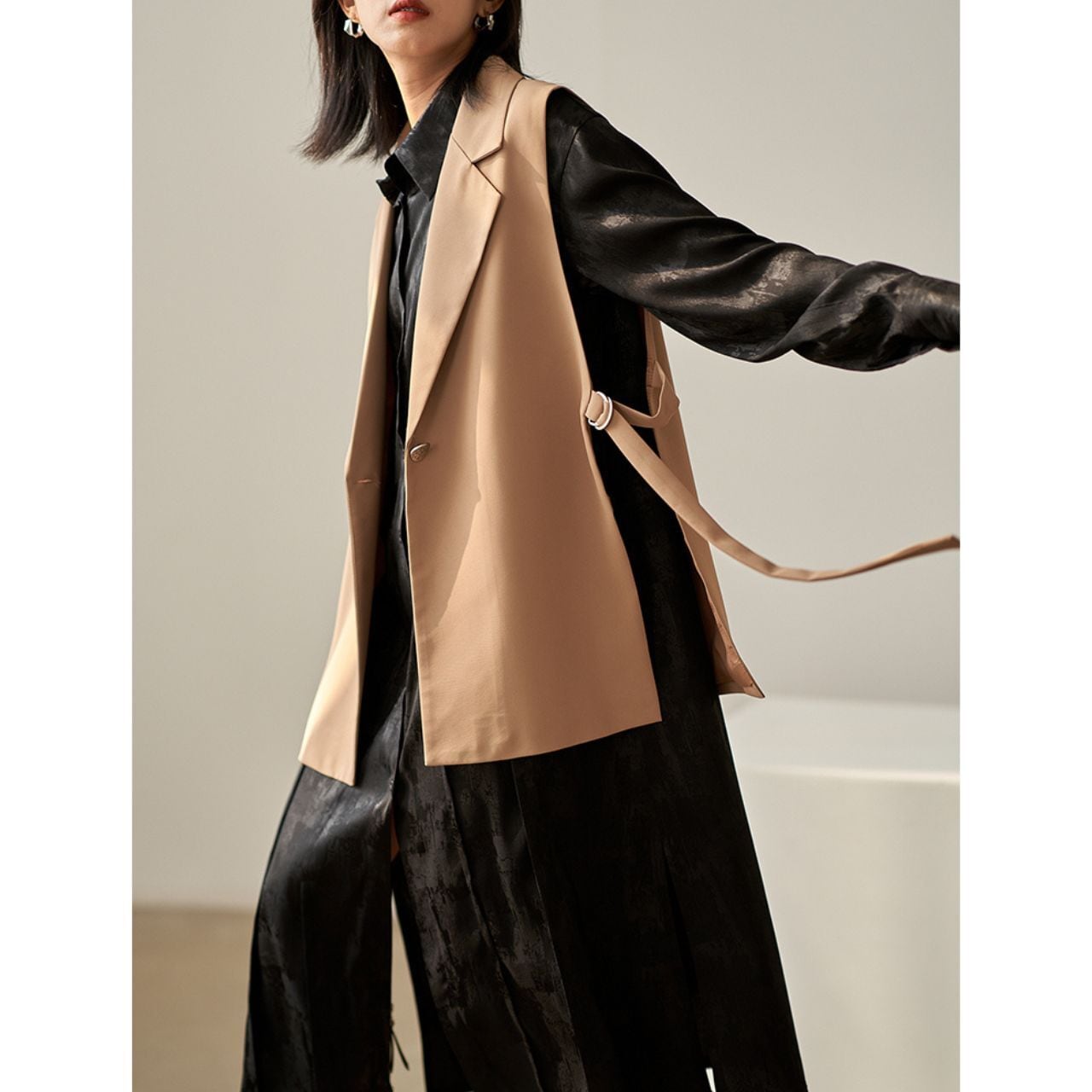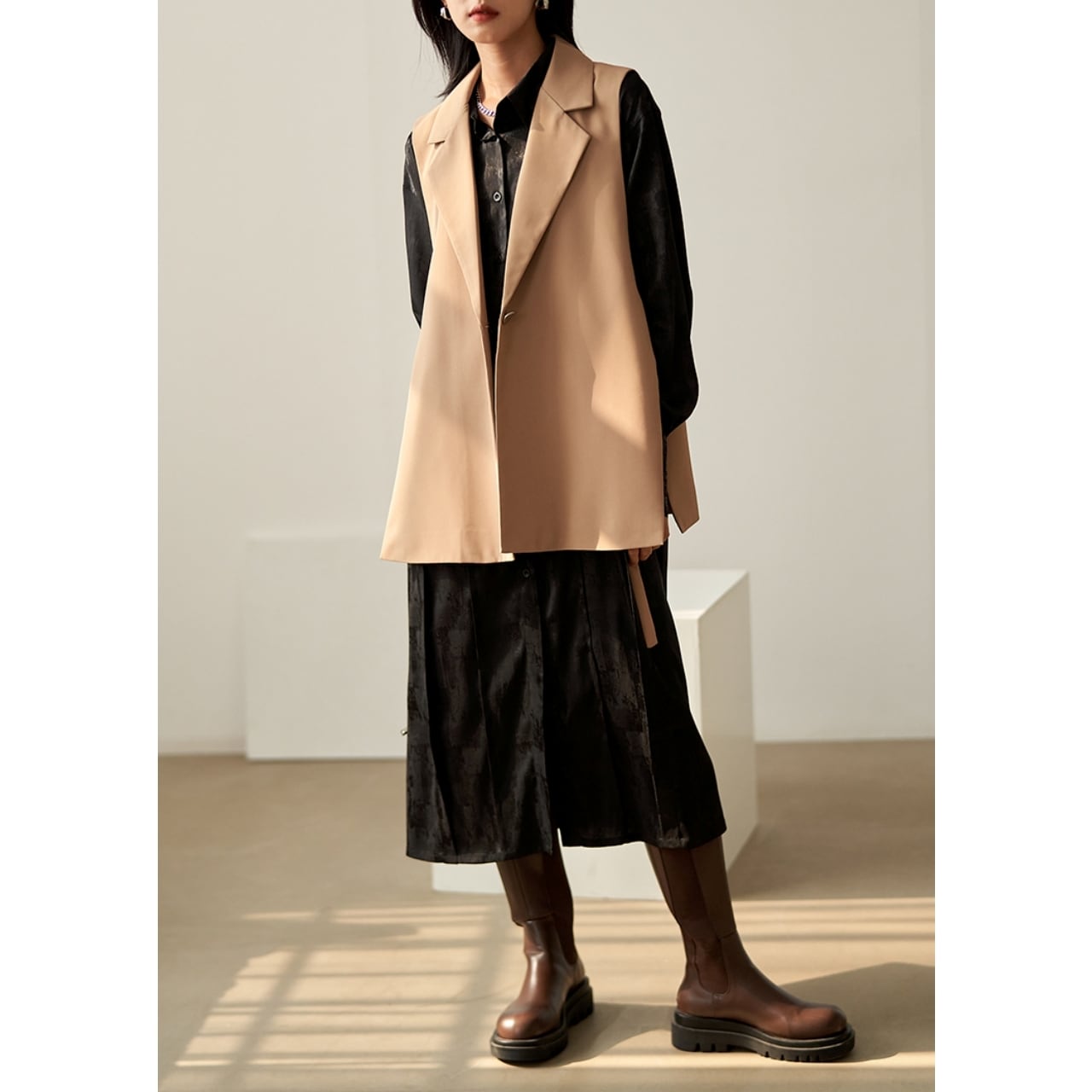 前を開けてライトアウターのように羽織るなど、着こなし次第で幅広く楽しめる一着です。