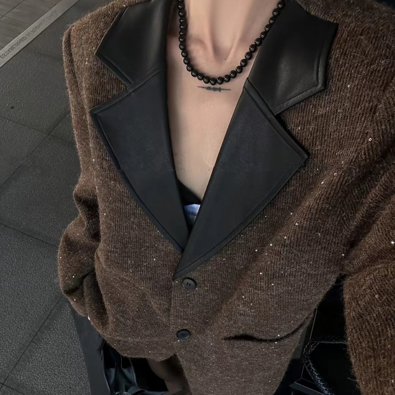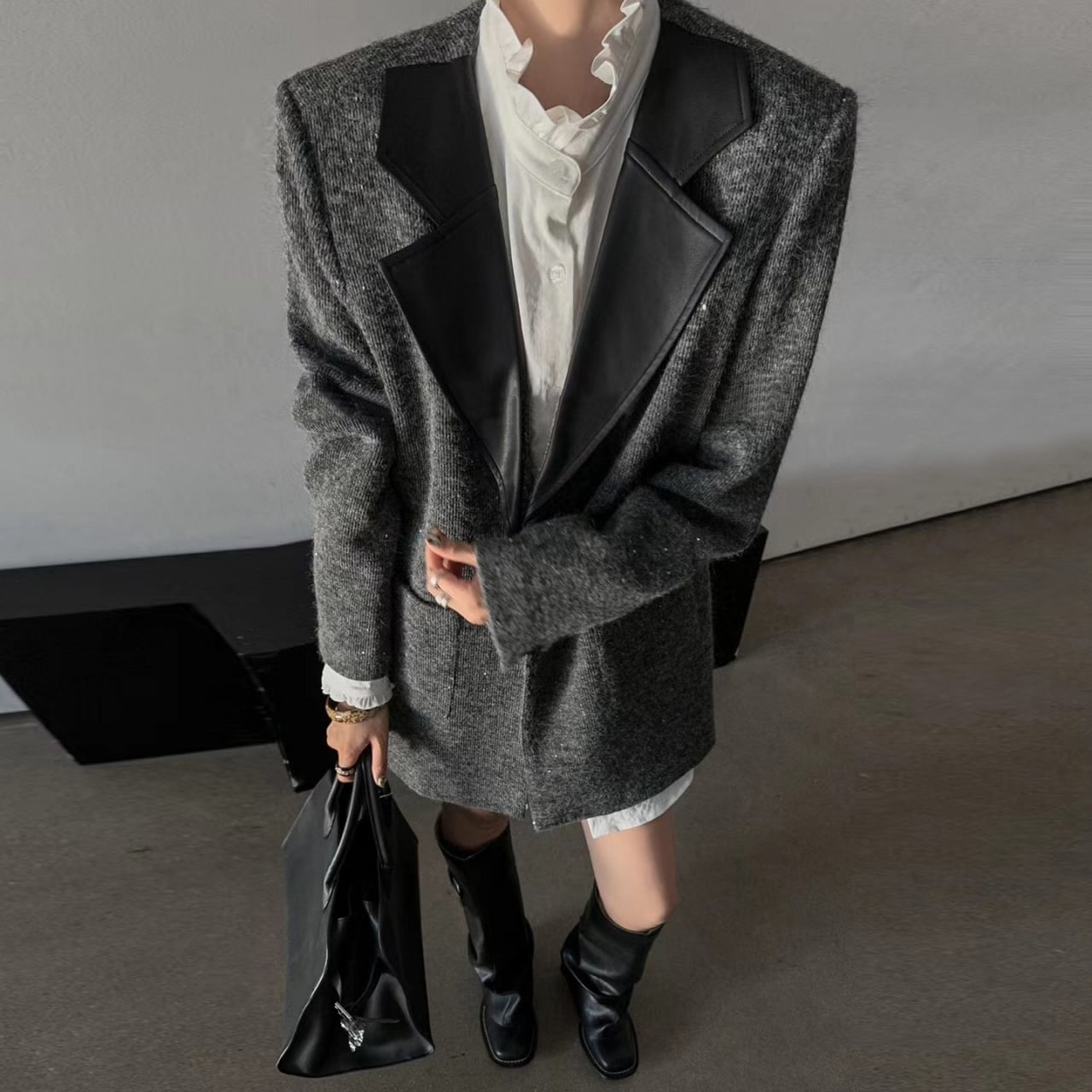 異素材の襟がアクセントになったシングルブレストジャケット。
