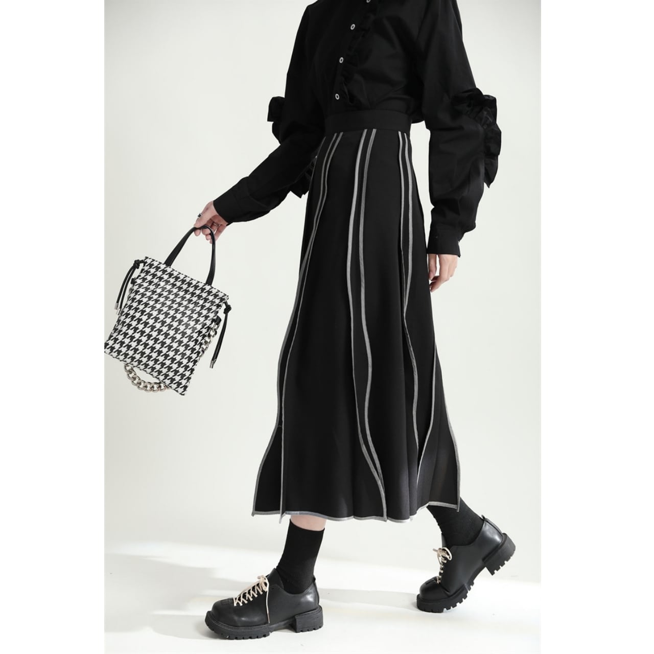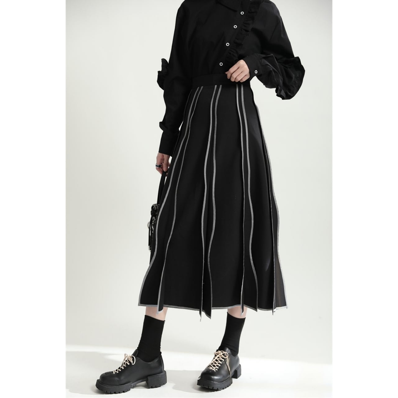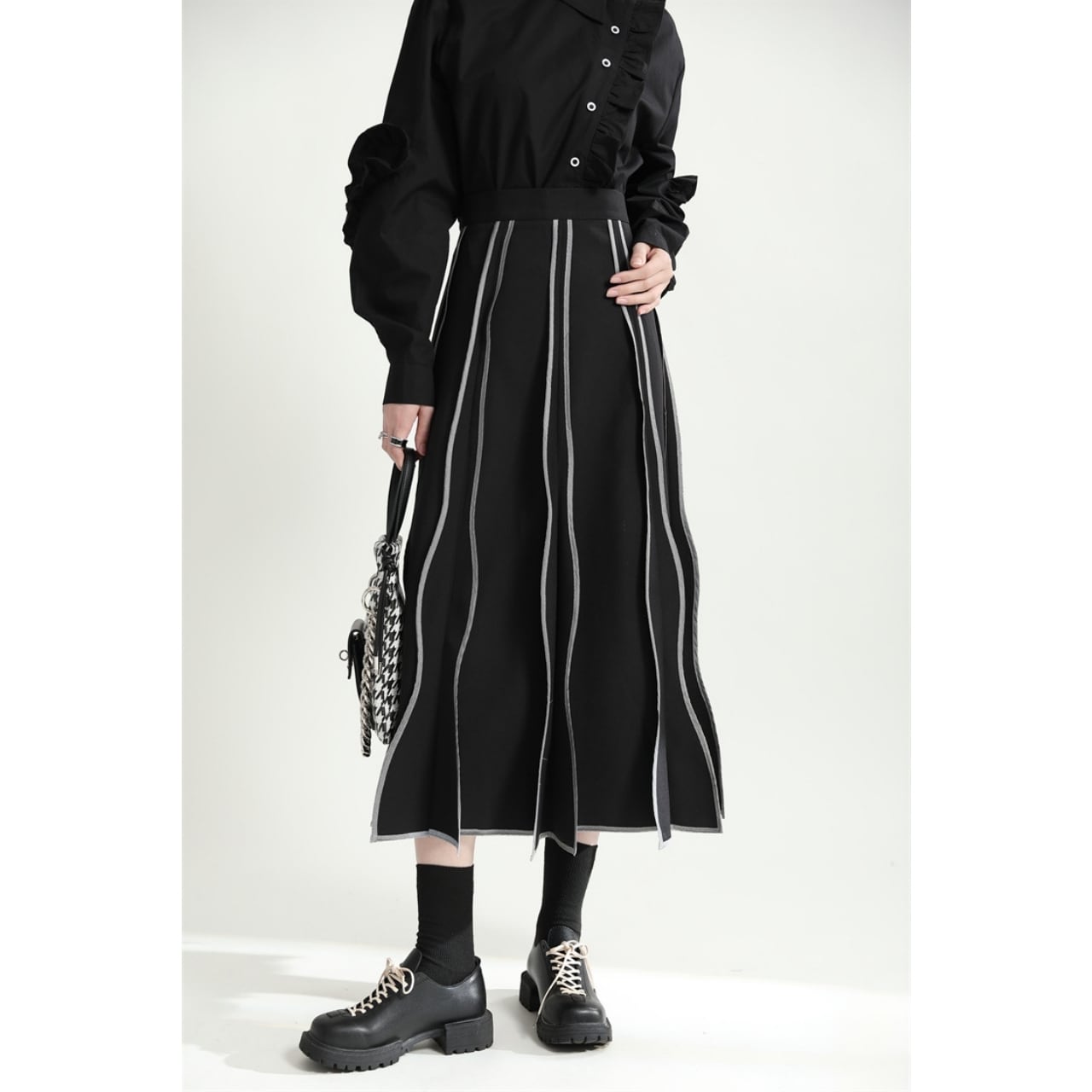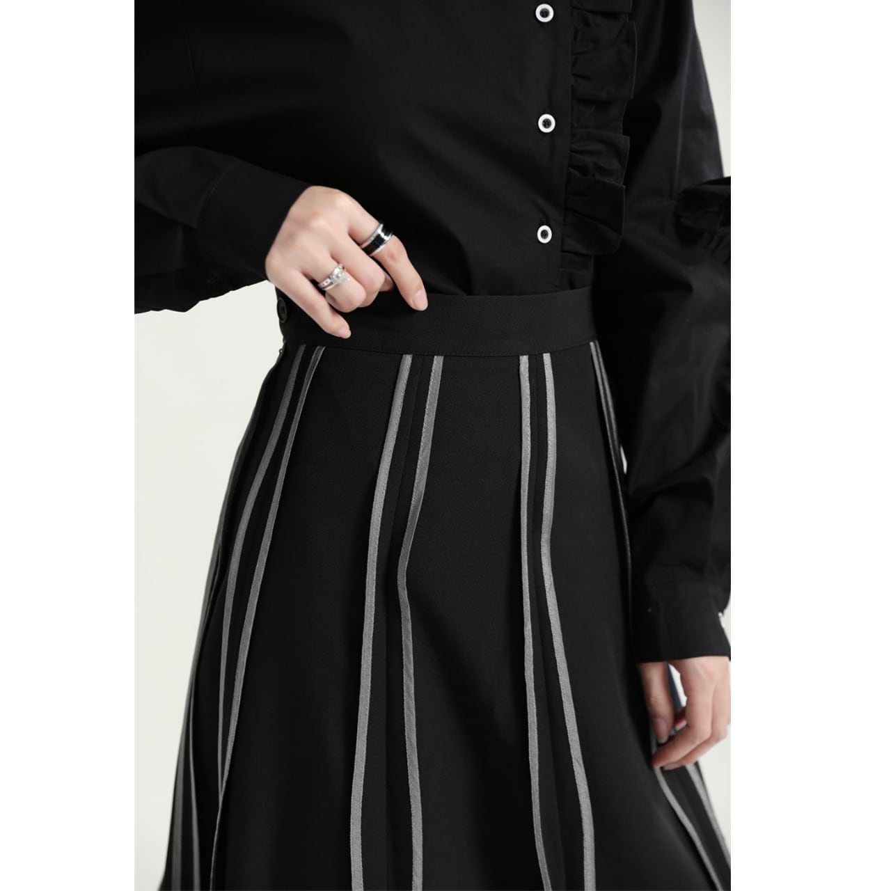 ミディ丈で上品さを演出しつつ、裾にかけて広がるフレアが女性らしさを引き立てます。