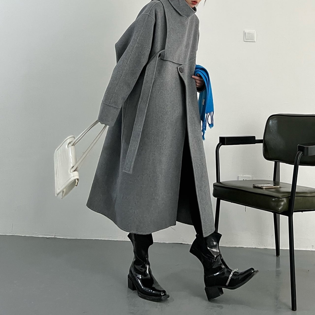ベルトを締めれば、また違ったシルエットを楽しめます。