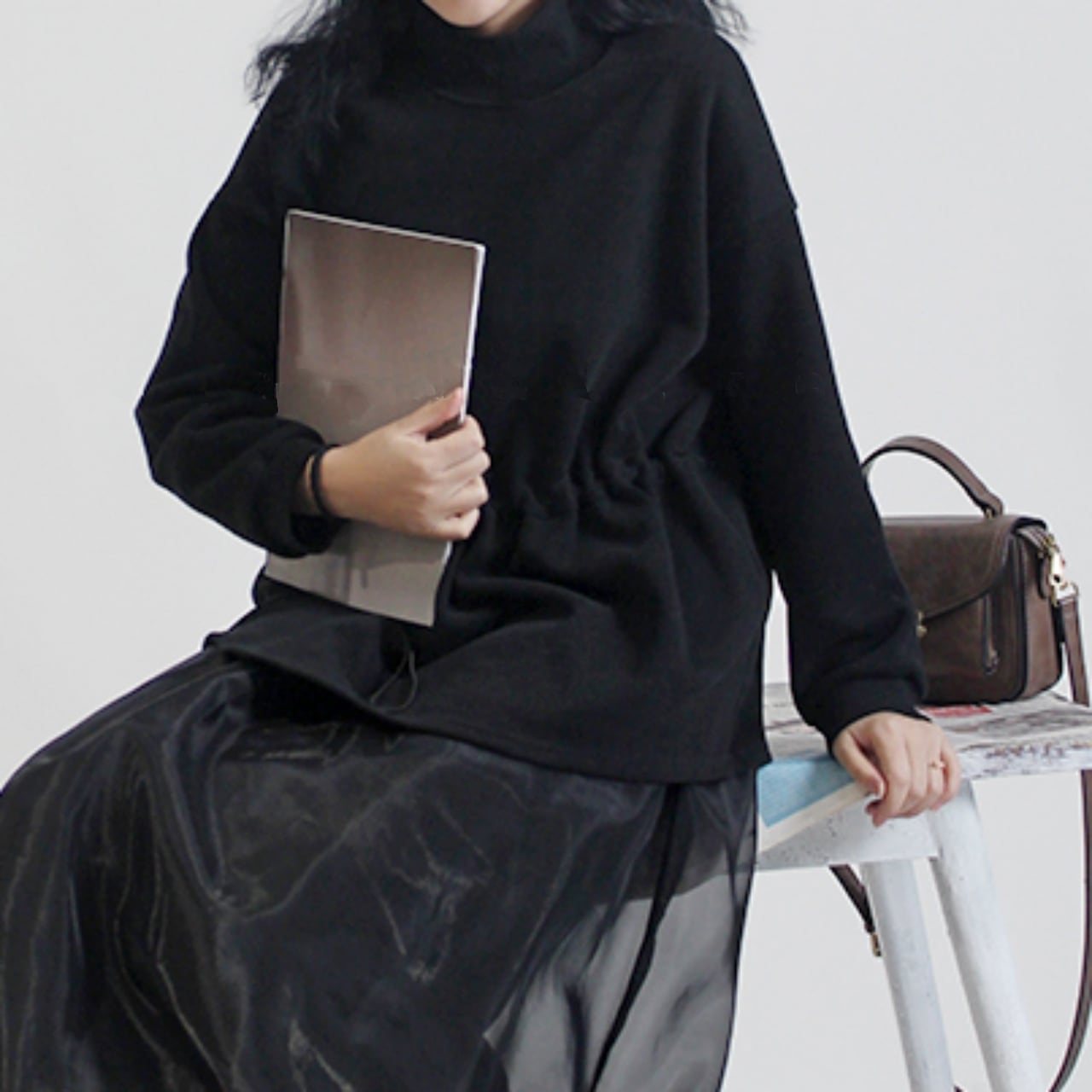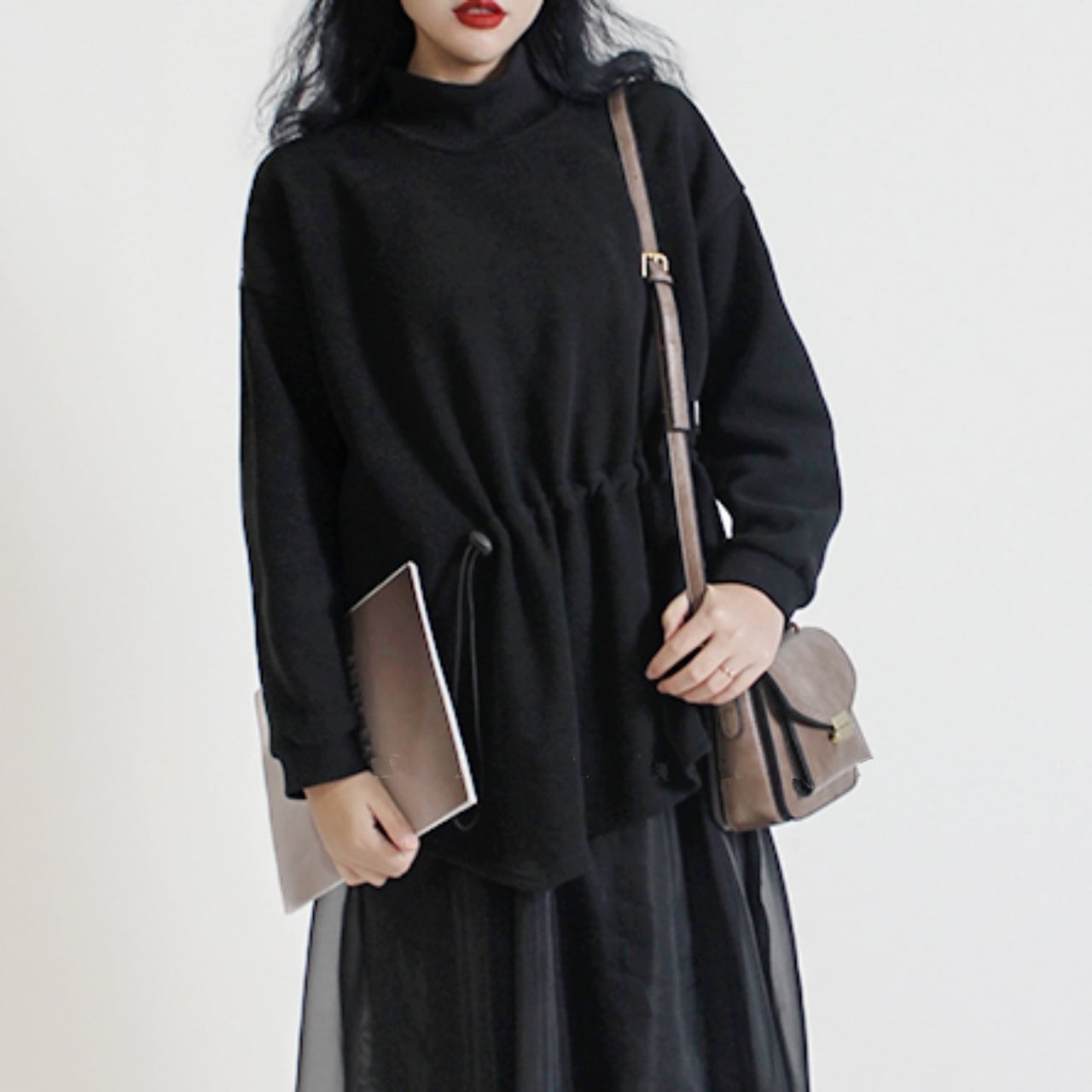 ハイネックで首元まで暖かく、秋冬に活躍する一着です。