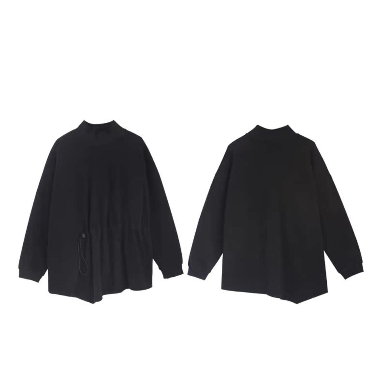 シンプルなデザインの中に、ドローストリングの個性が光る長袖スウェット。
