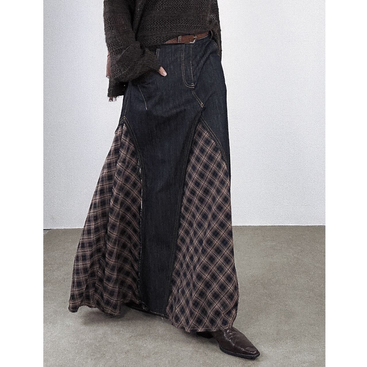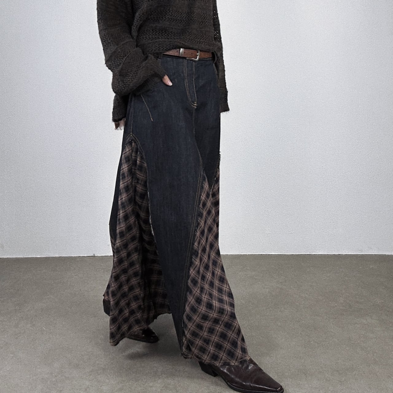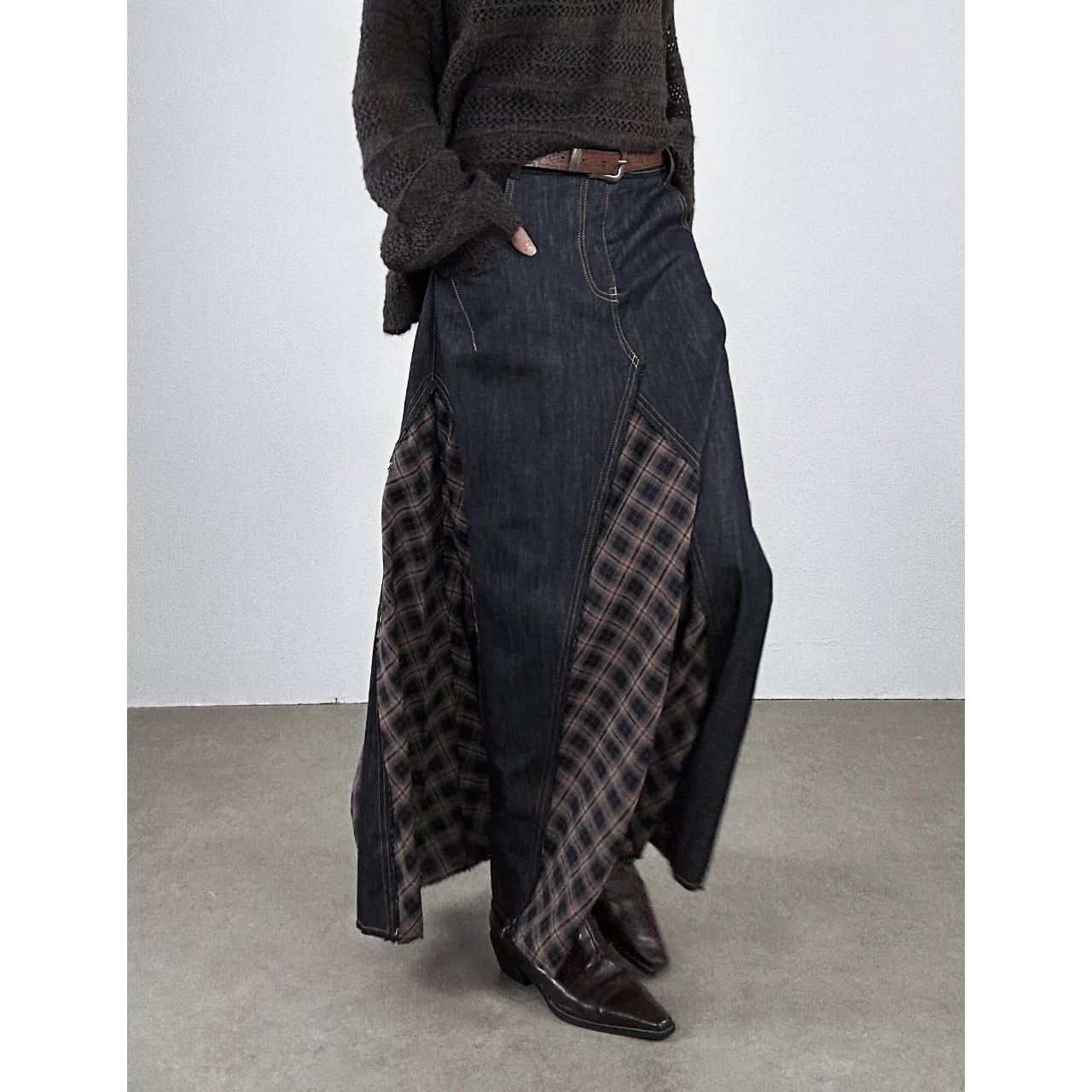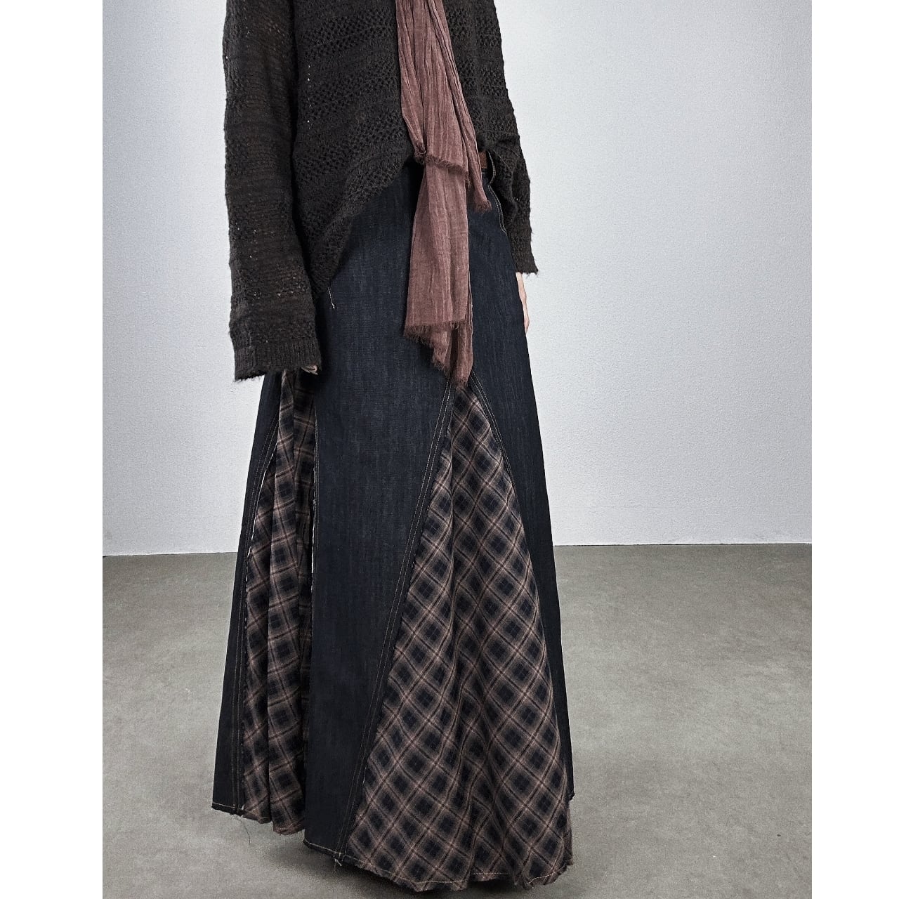 デザイン性の高い切り替えが特徴的なロングスカート。