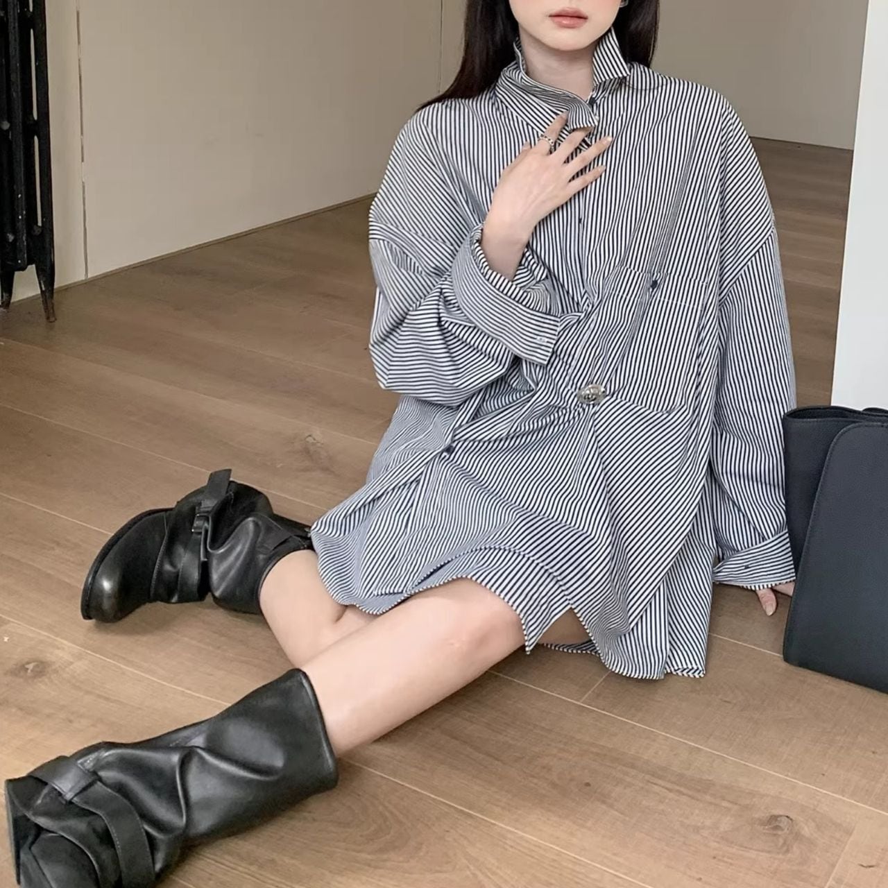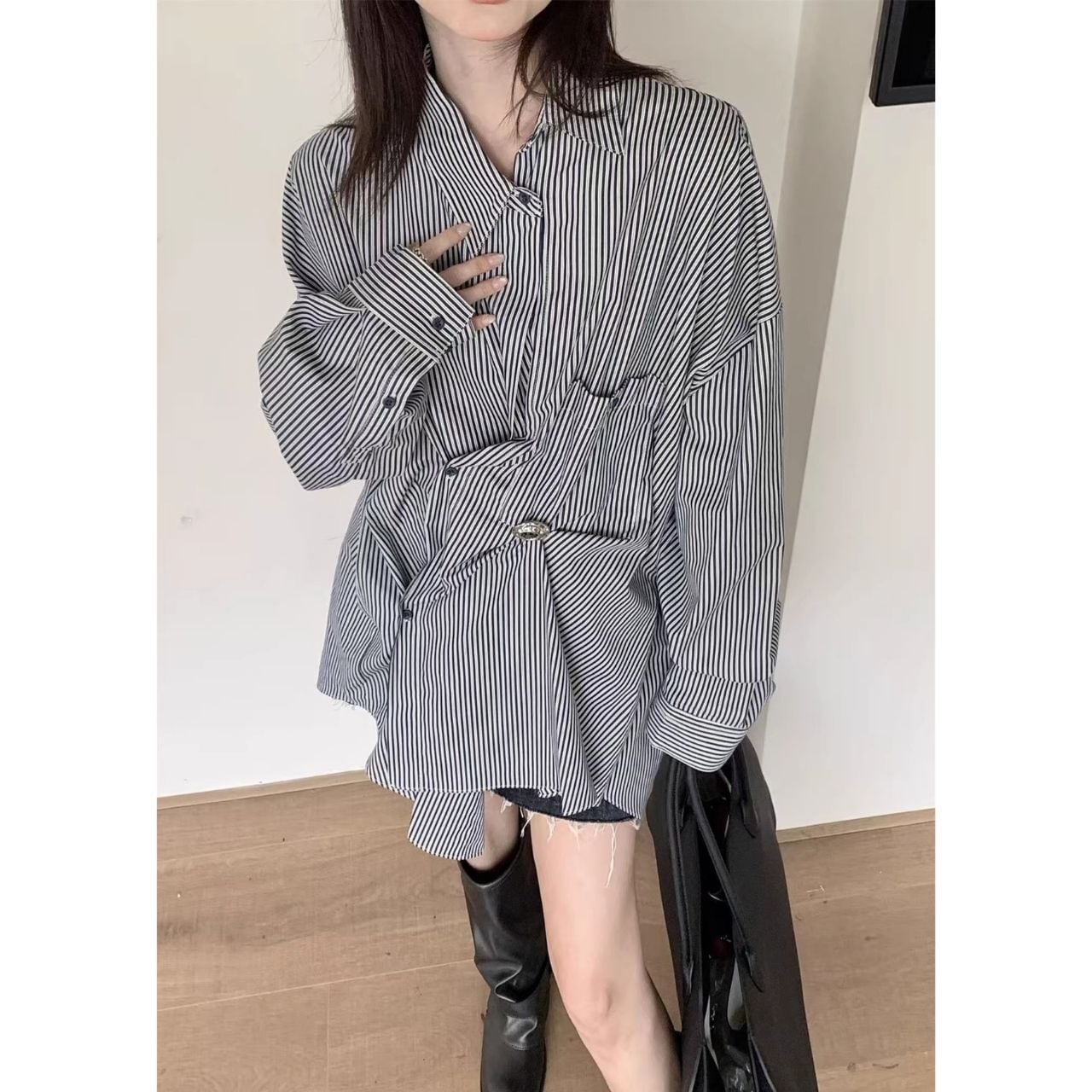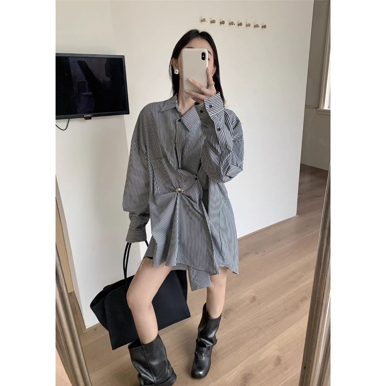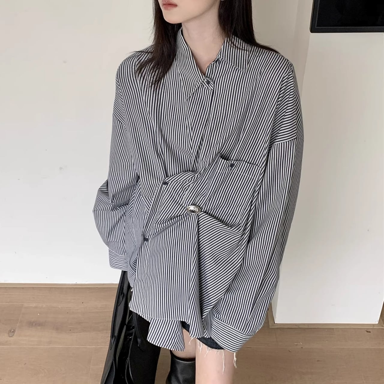 アシンメトリーなデザインが目を引くオーバーサイズシャツ。