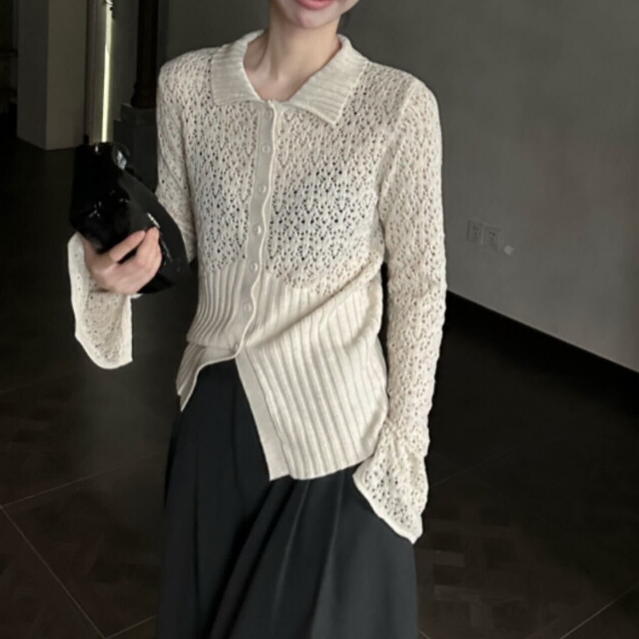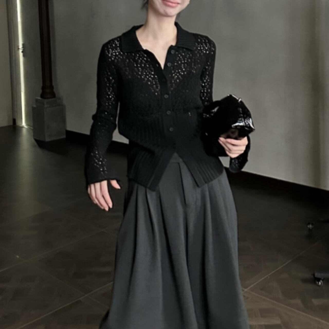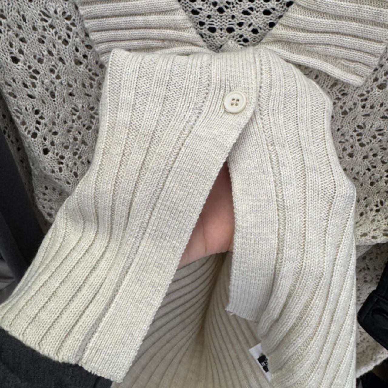 フロントボタンを留めてプルオーバーとして着るのもおすすめです。