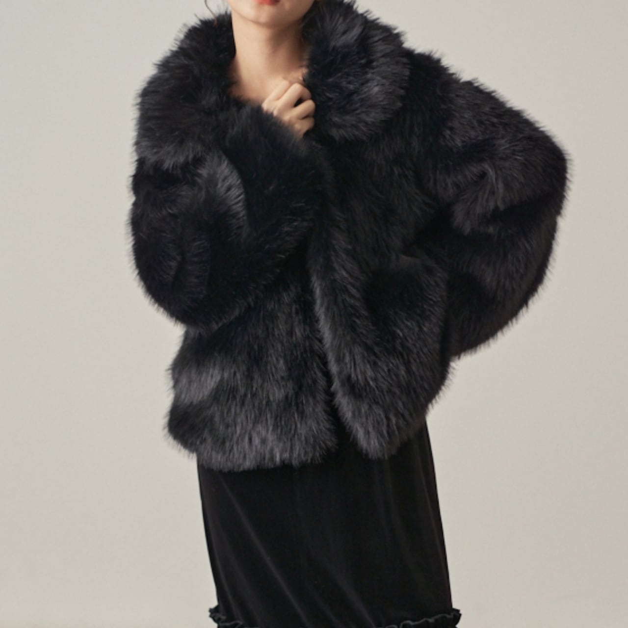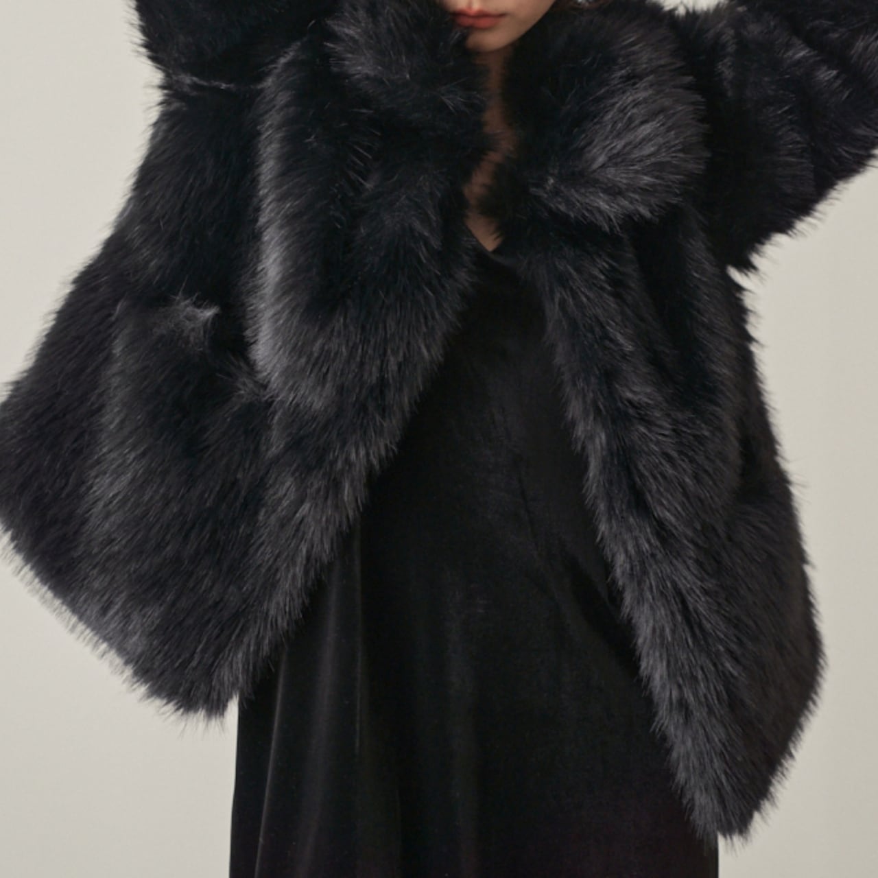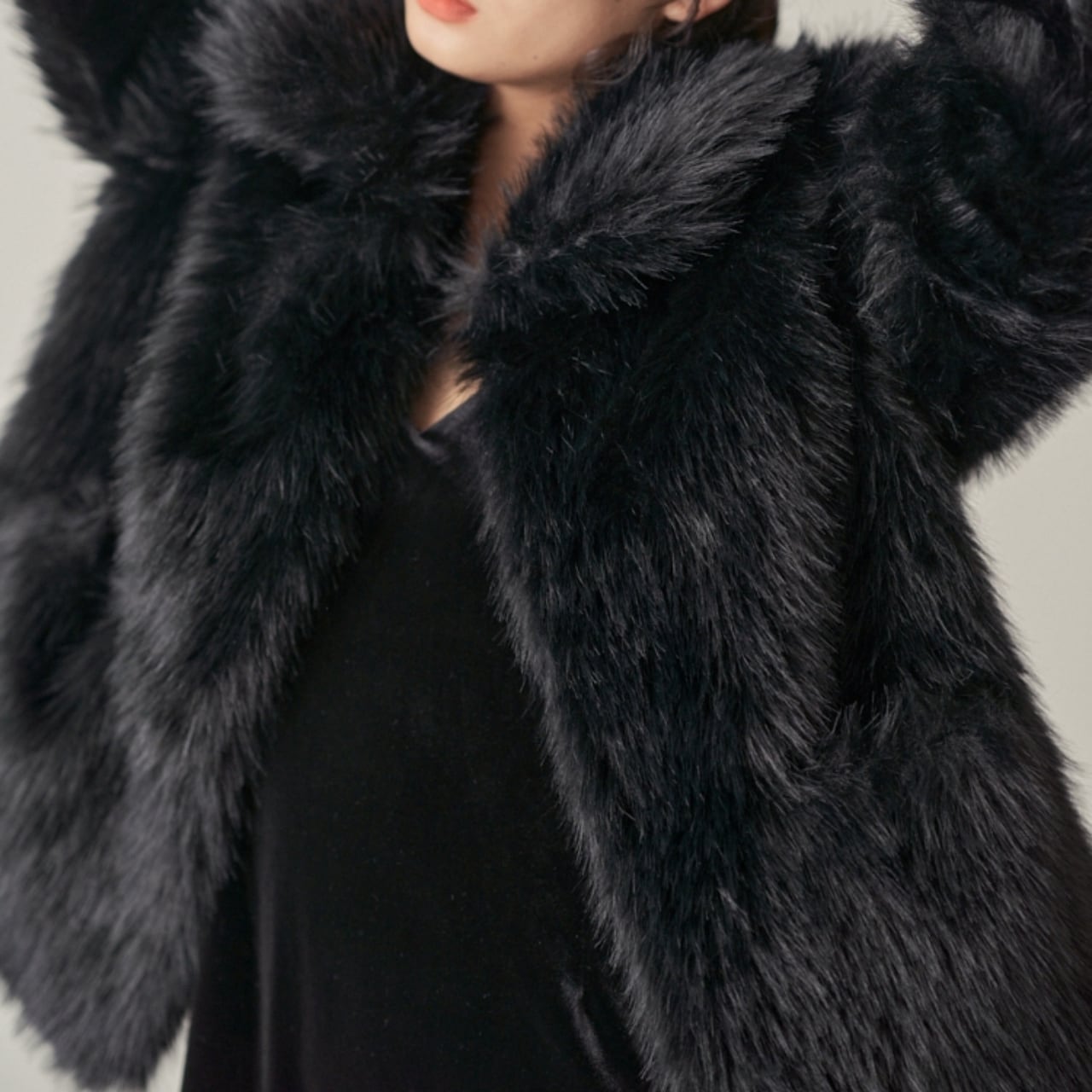 オーバーサイズでゆったりと着こなせるフェイクファージャケット。