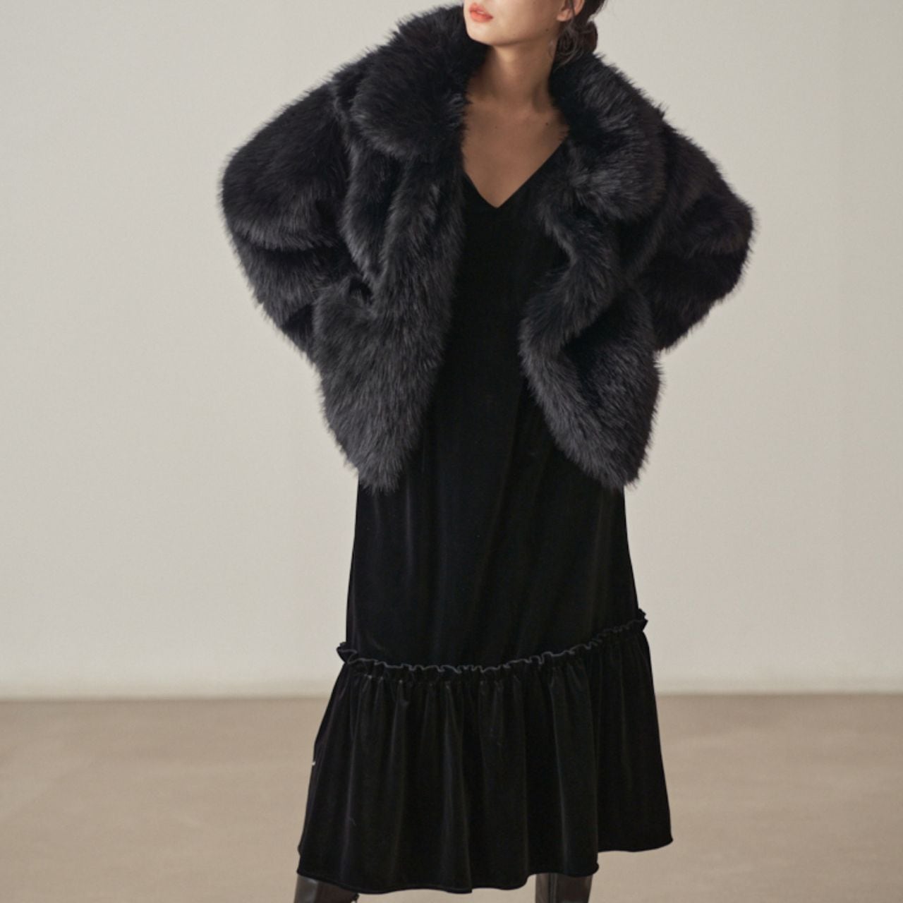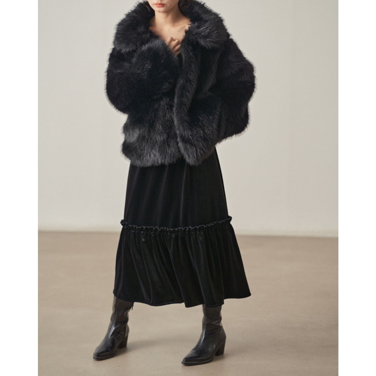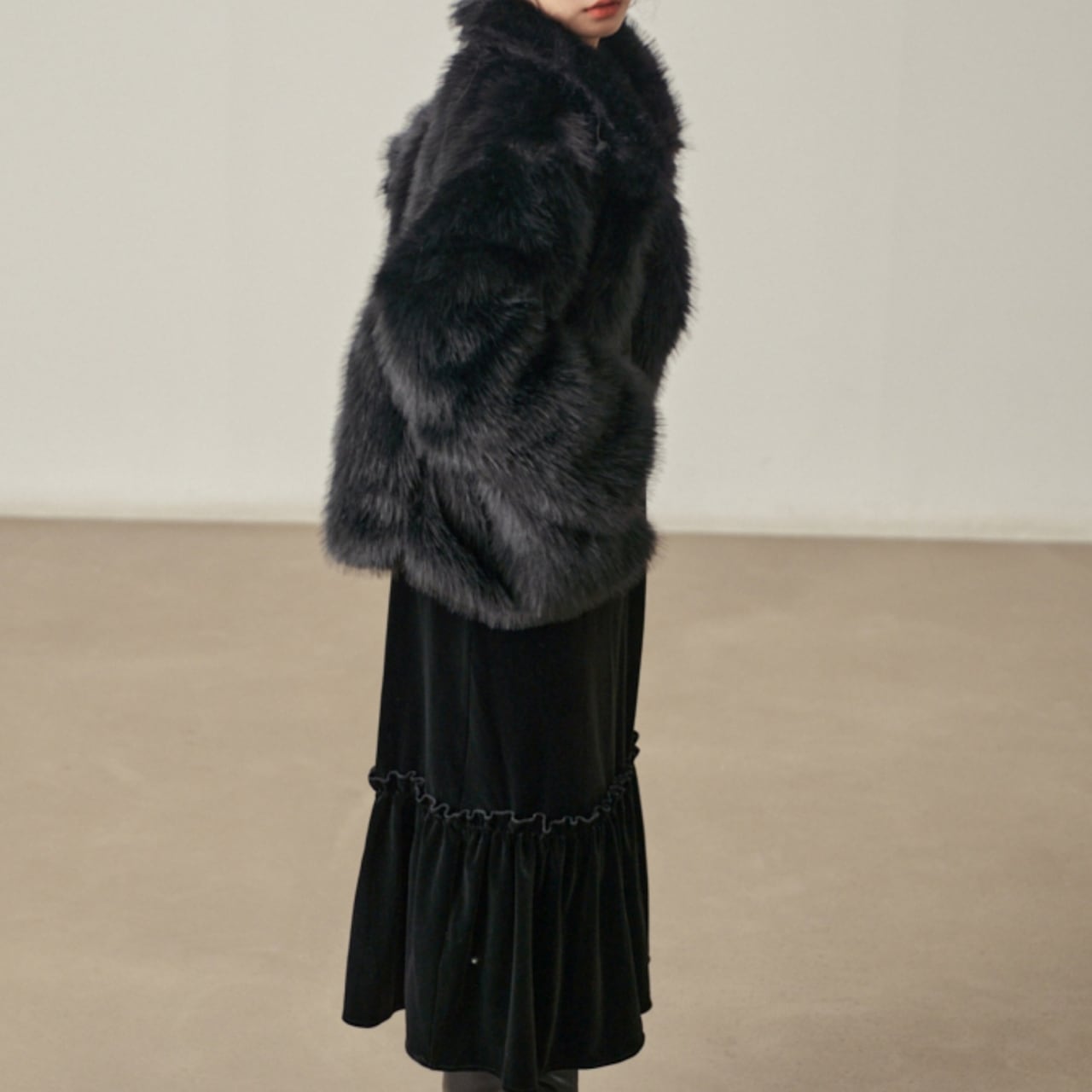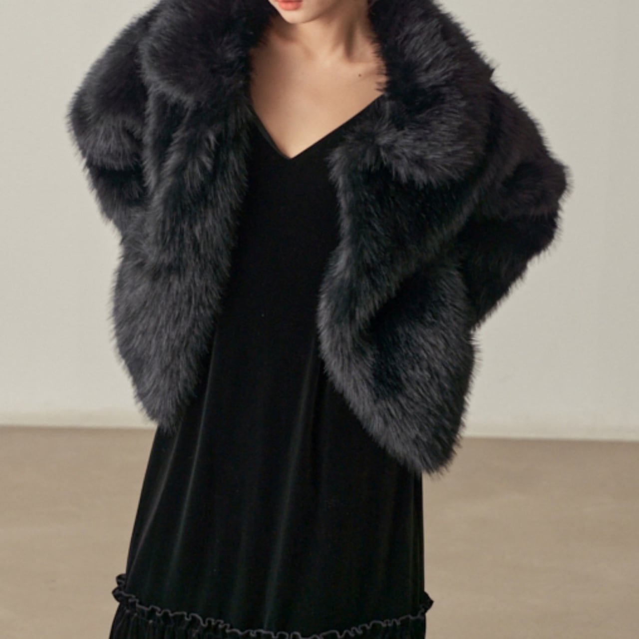 オーバーサイズでゆったりと着こなせるフェイクファージャケット。