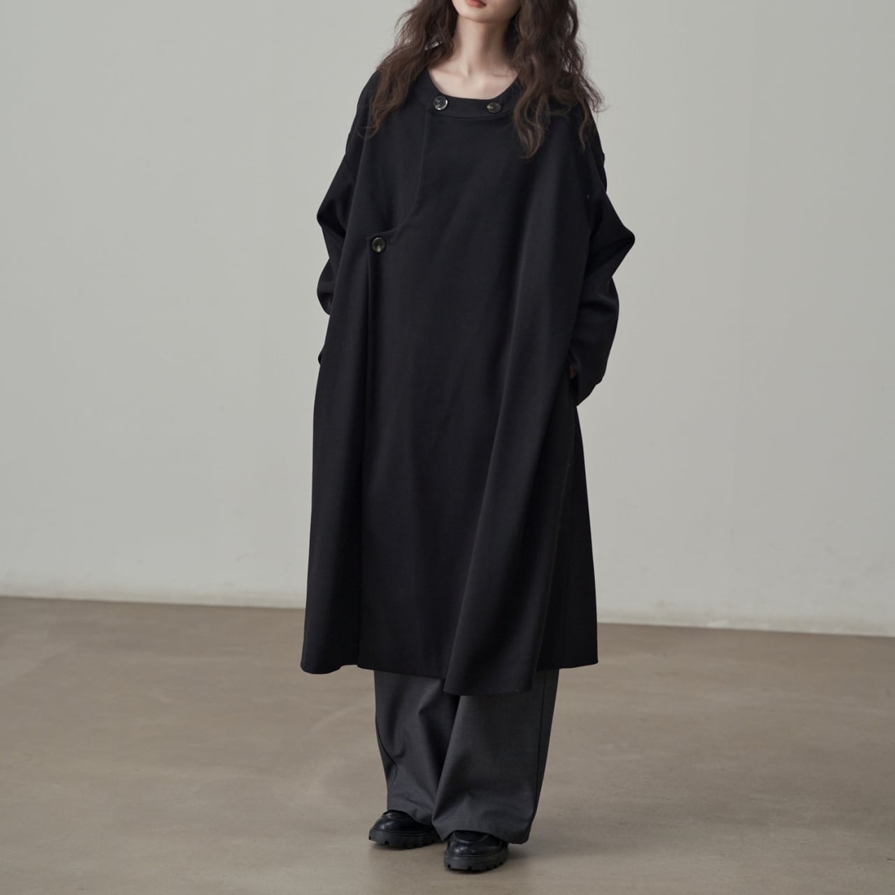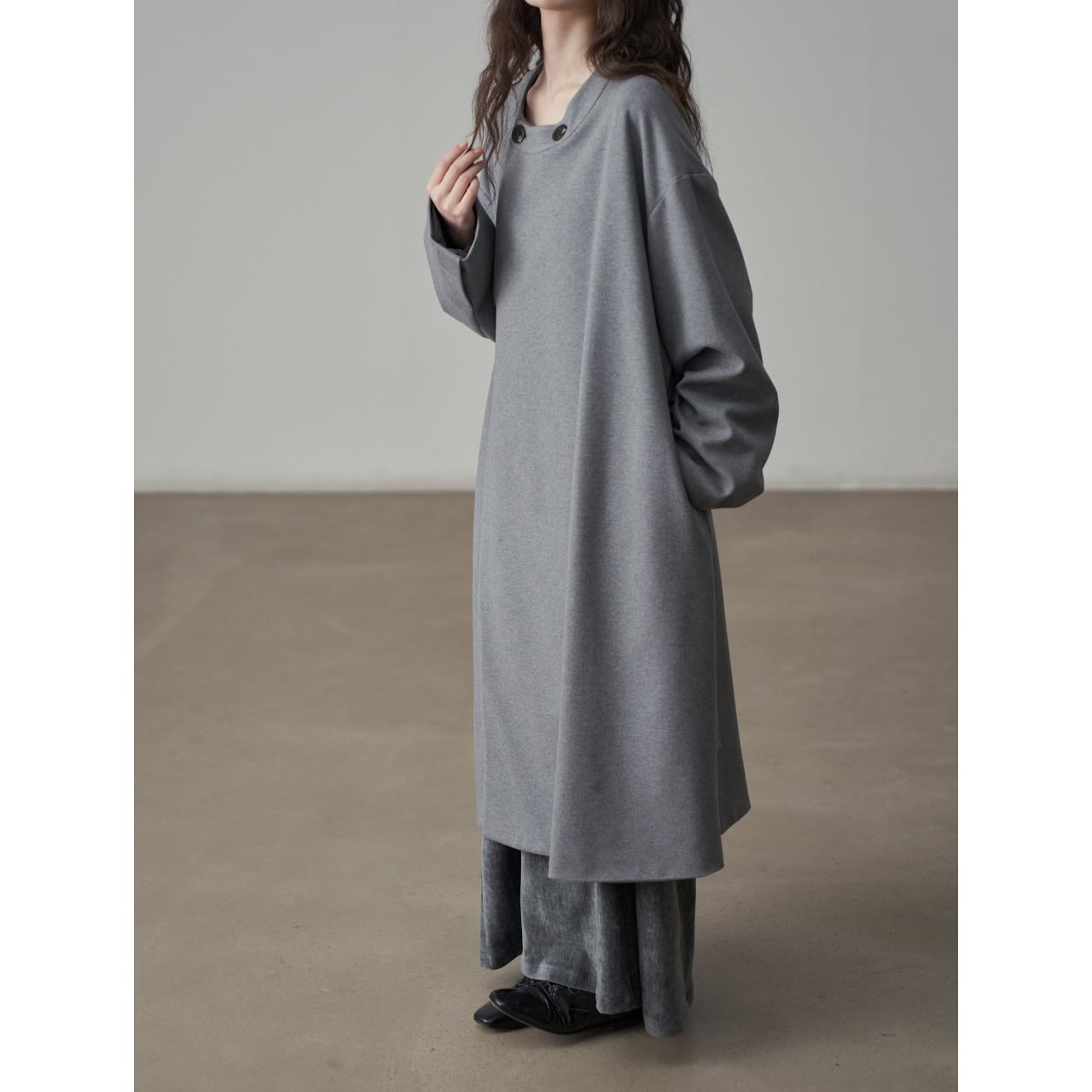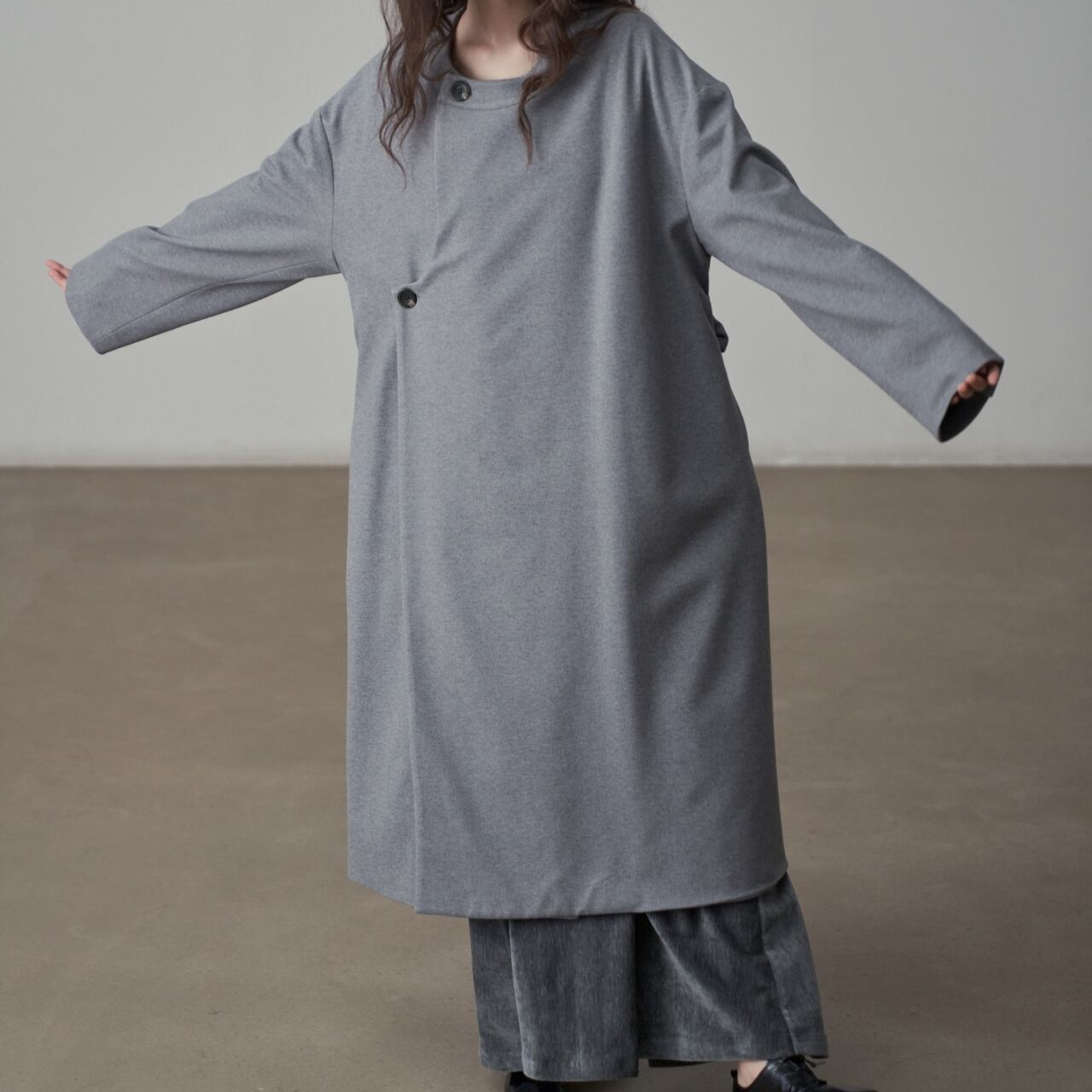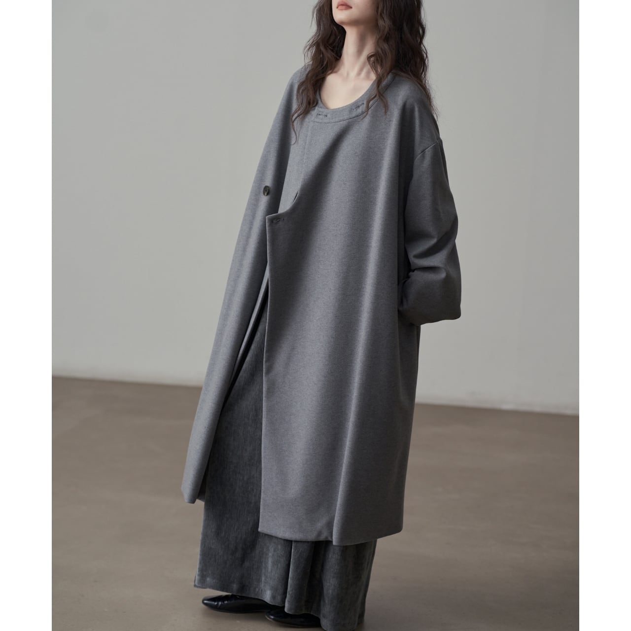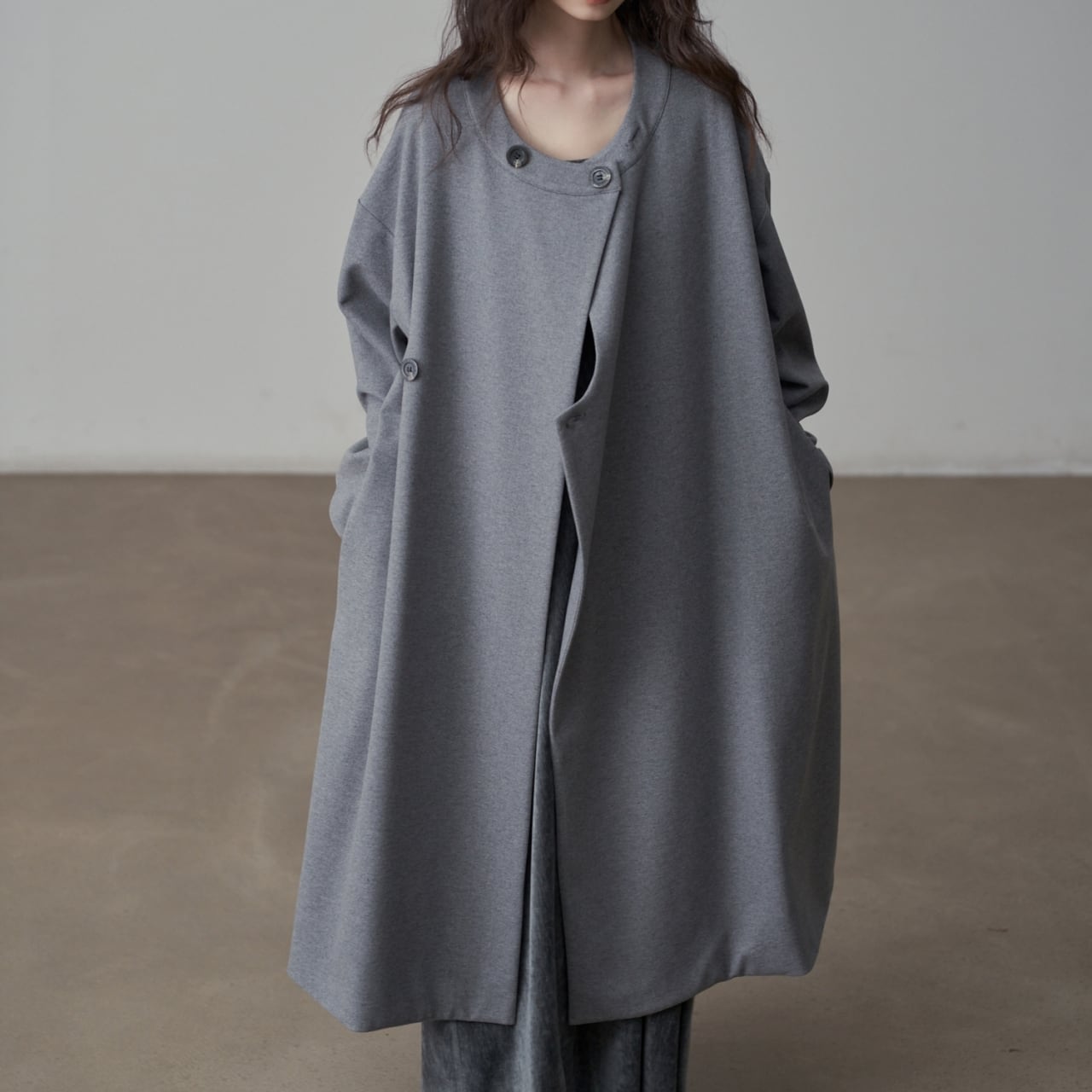 ゆったりとしたシルエットが魅力のノーカラーコート。