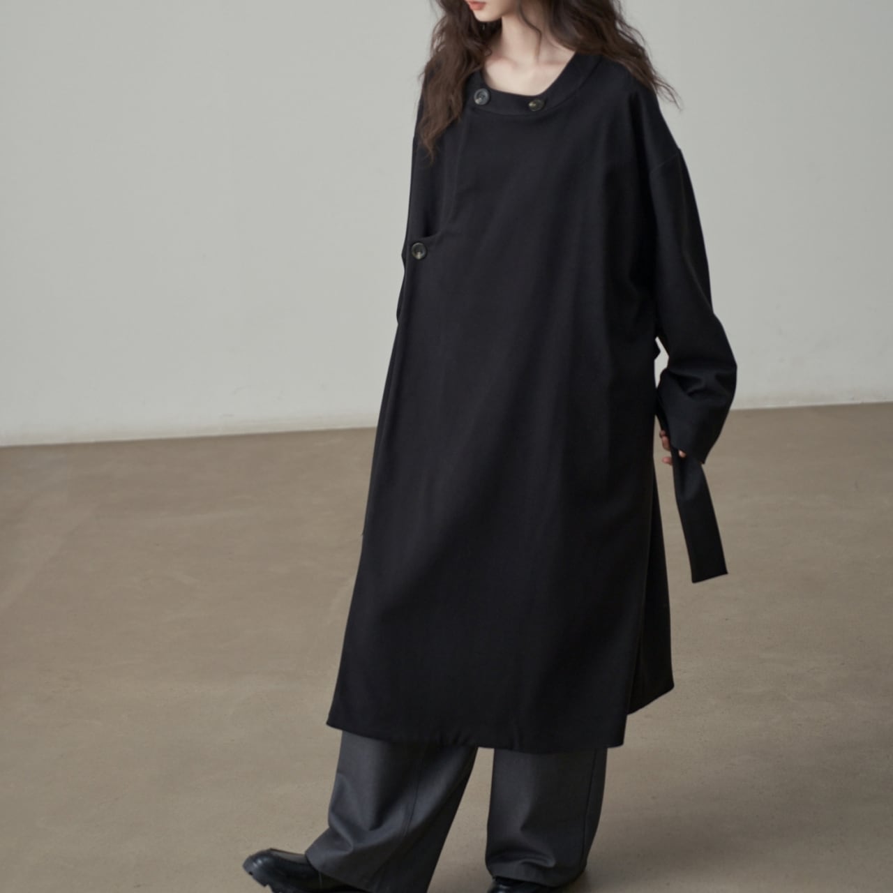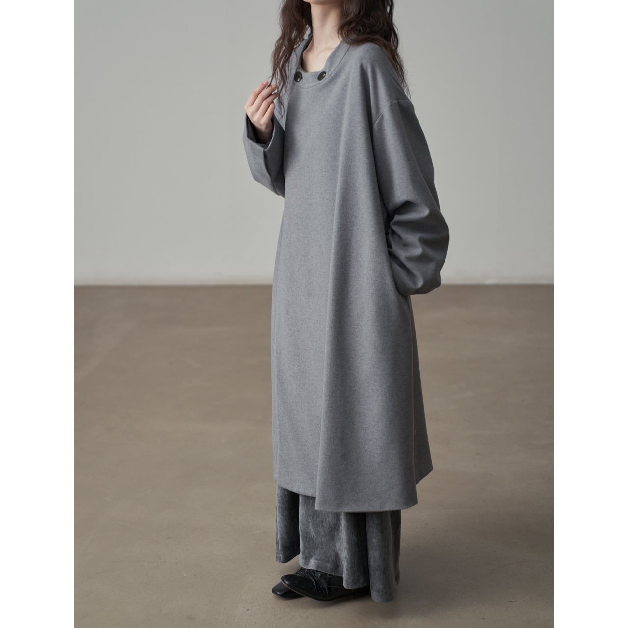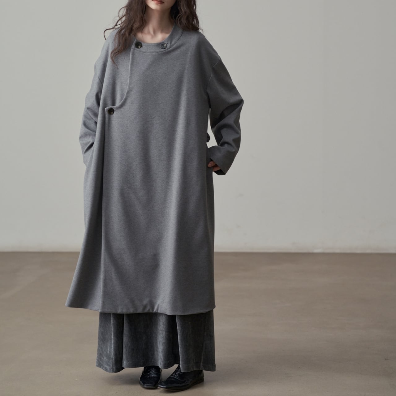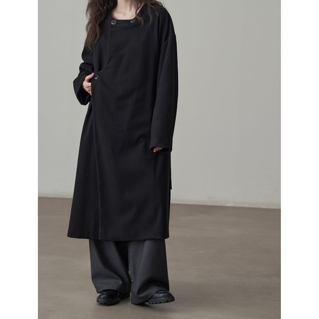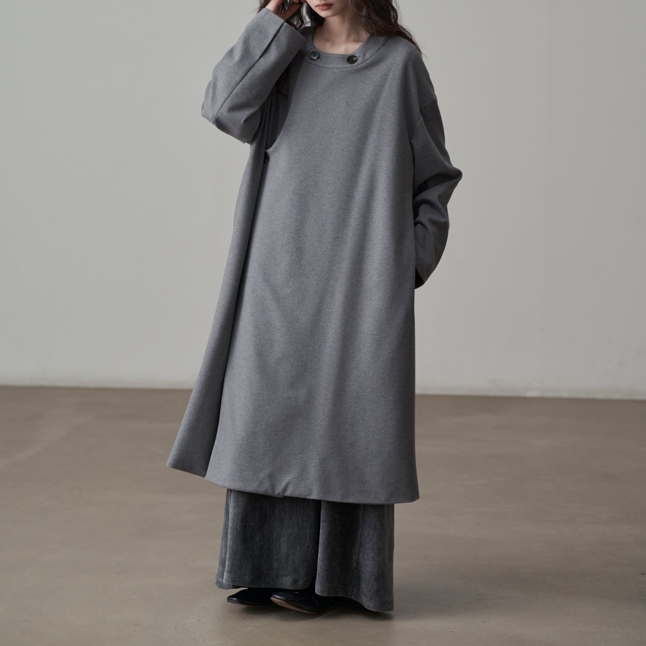 ゆったりとしたシルエットが魅力のノーカラーコート。
