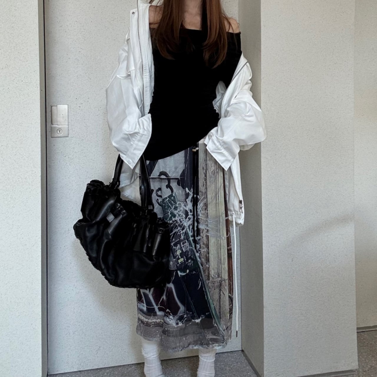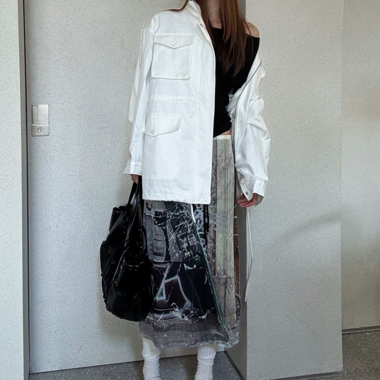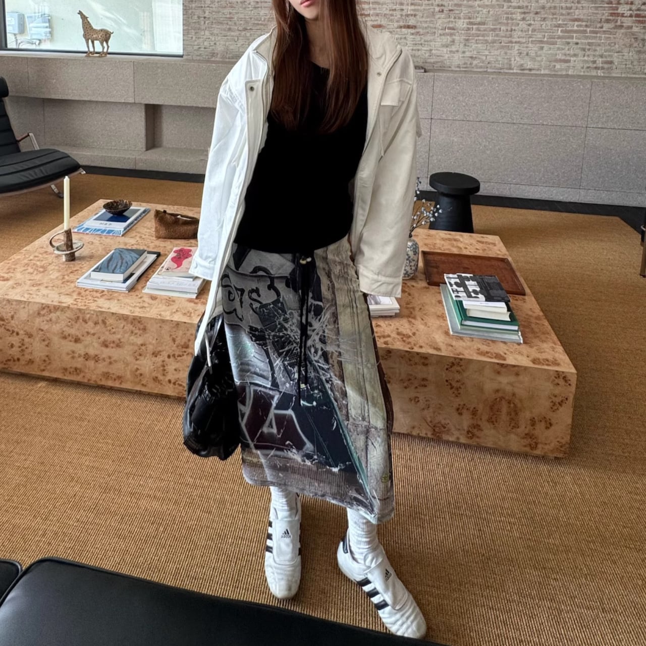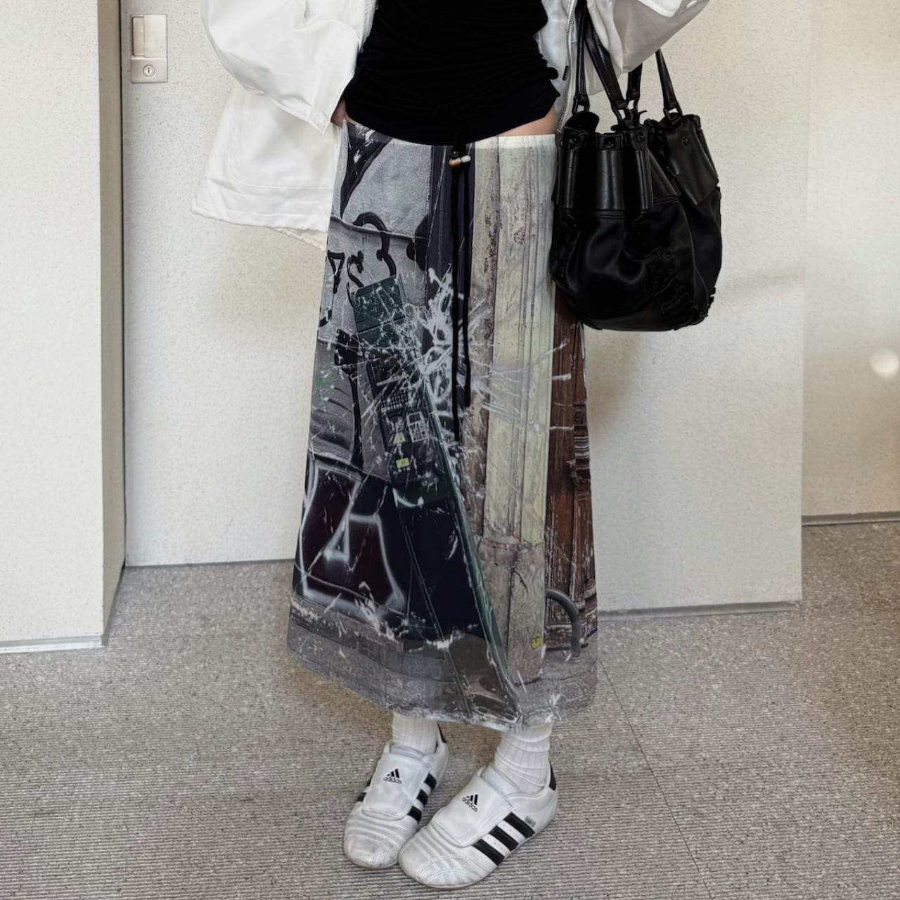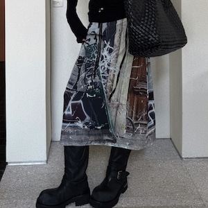 目を引くグラフィックプリントが印象的なスカート。