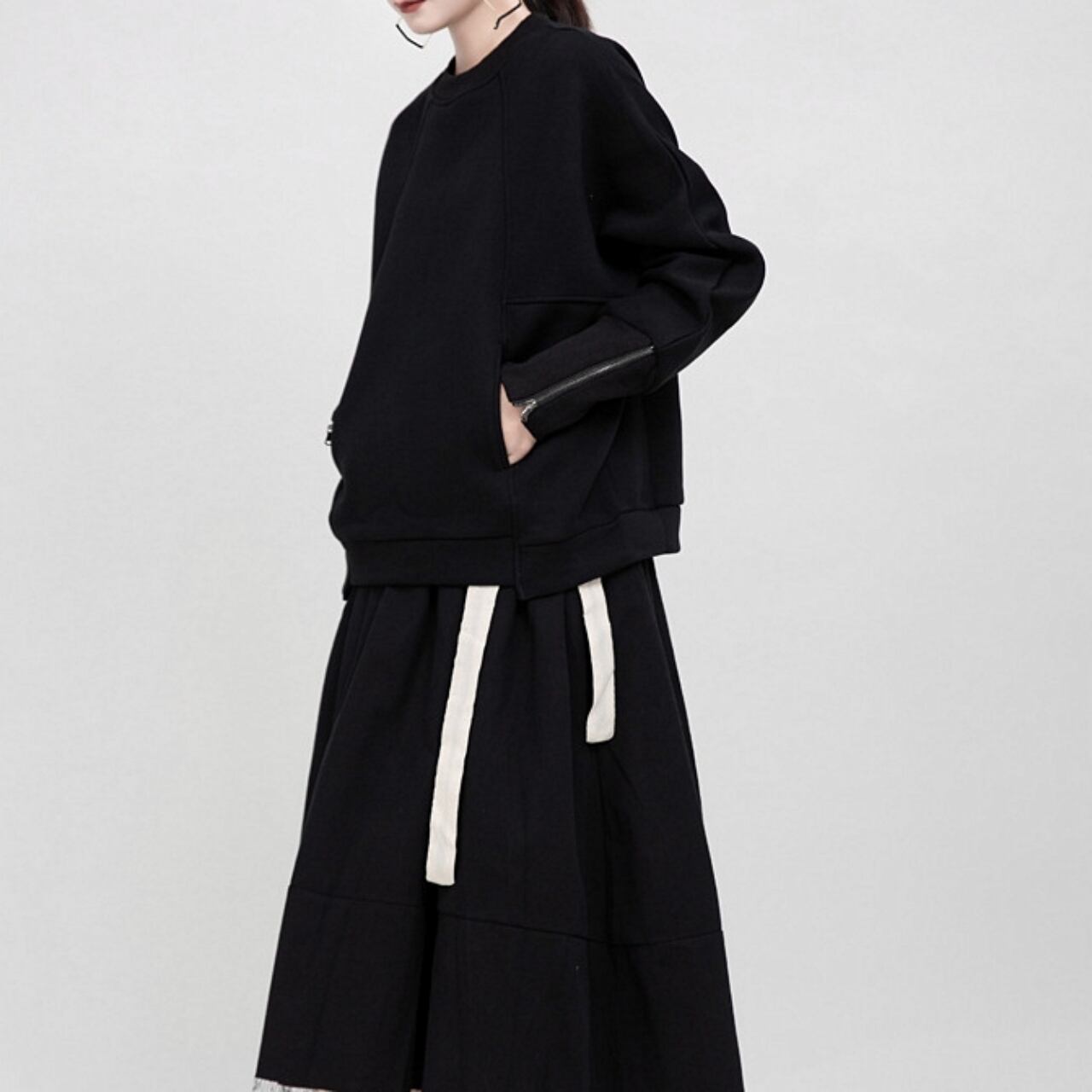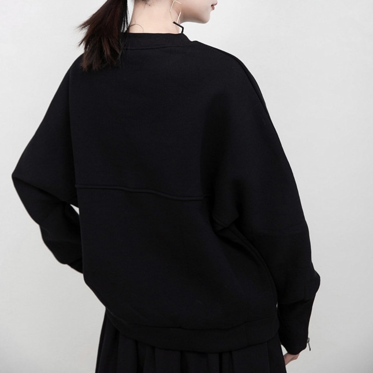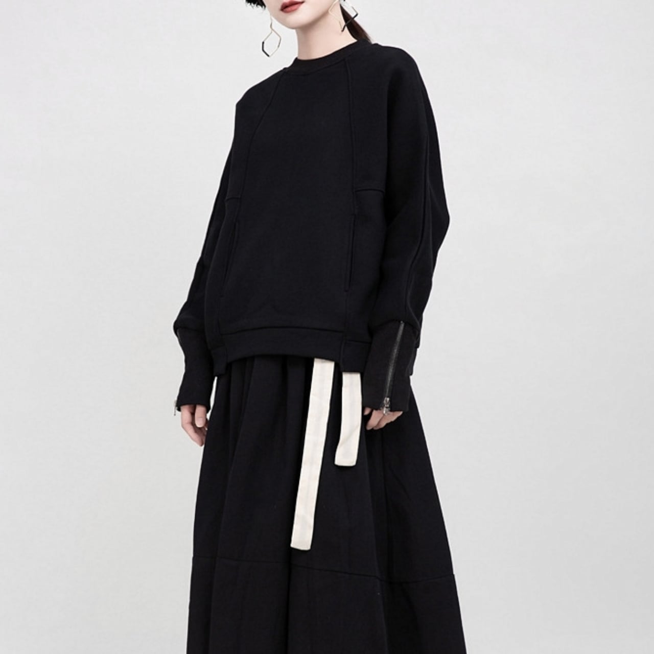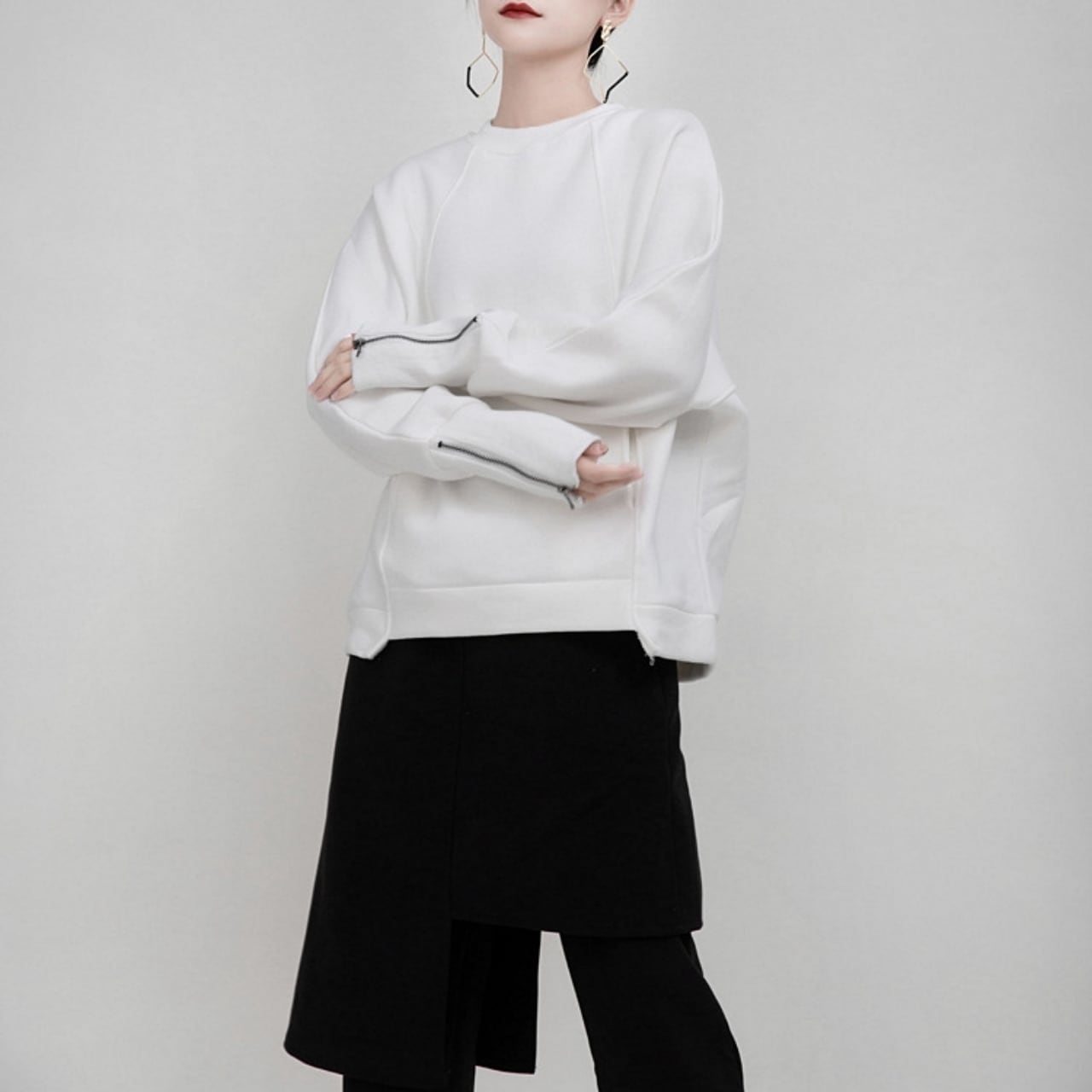 サイドジッパーが目を引く長袖スウェットシャツ。
