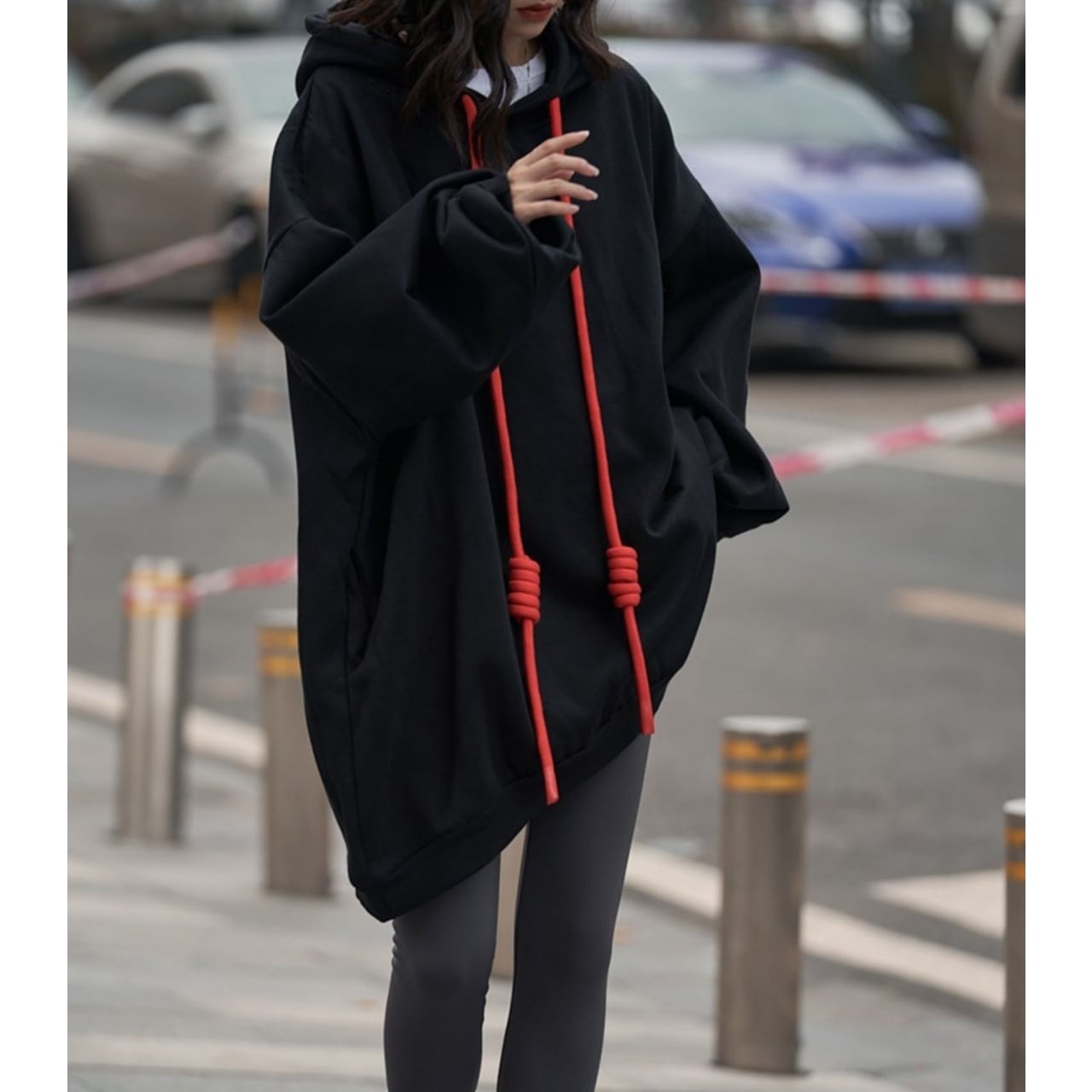 シンプルなデザインの中にも、ドローストリングのカラーがアクセントになっています。