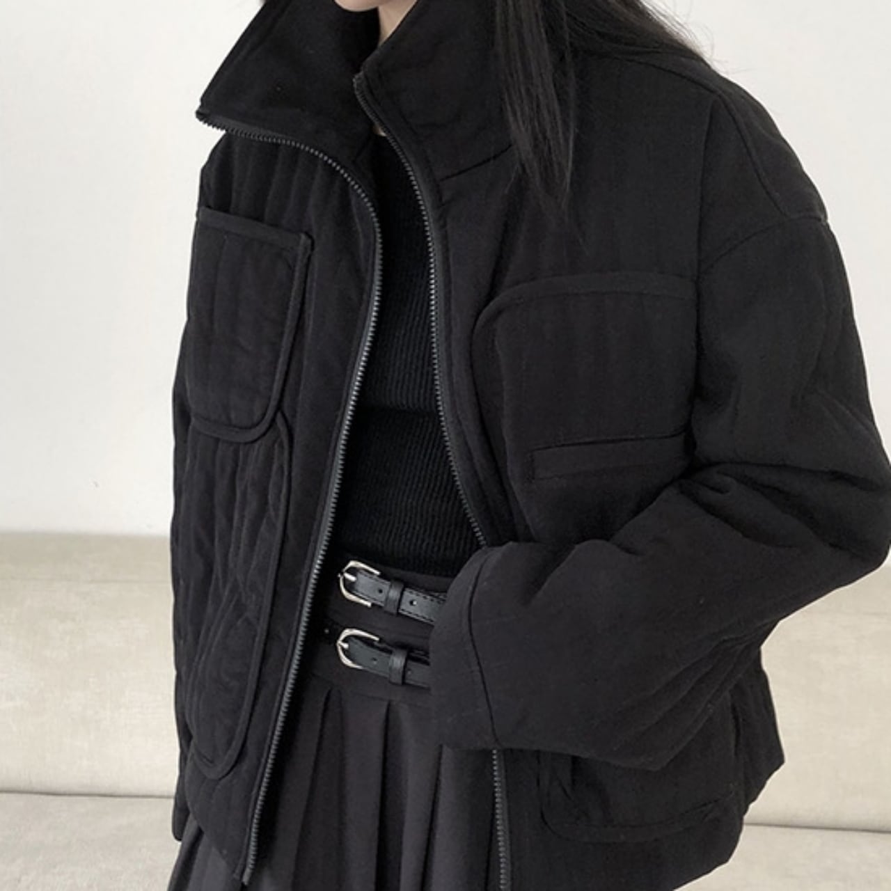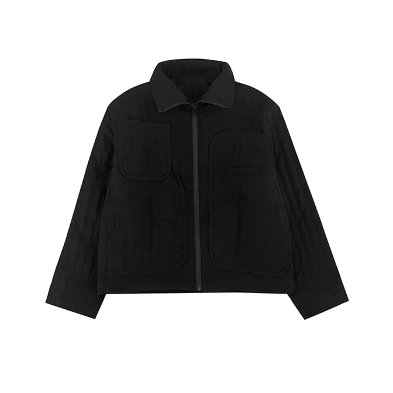 特徴的なパッチポケットがアクセントになったジップアップジャケット。