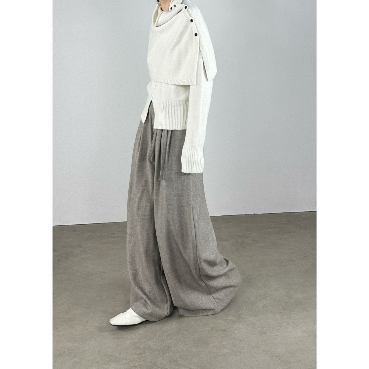 首元を包み込むようなケープと、裾のスリットが、さりげない個性を演出します。