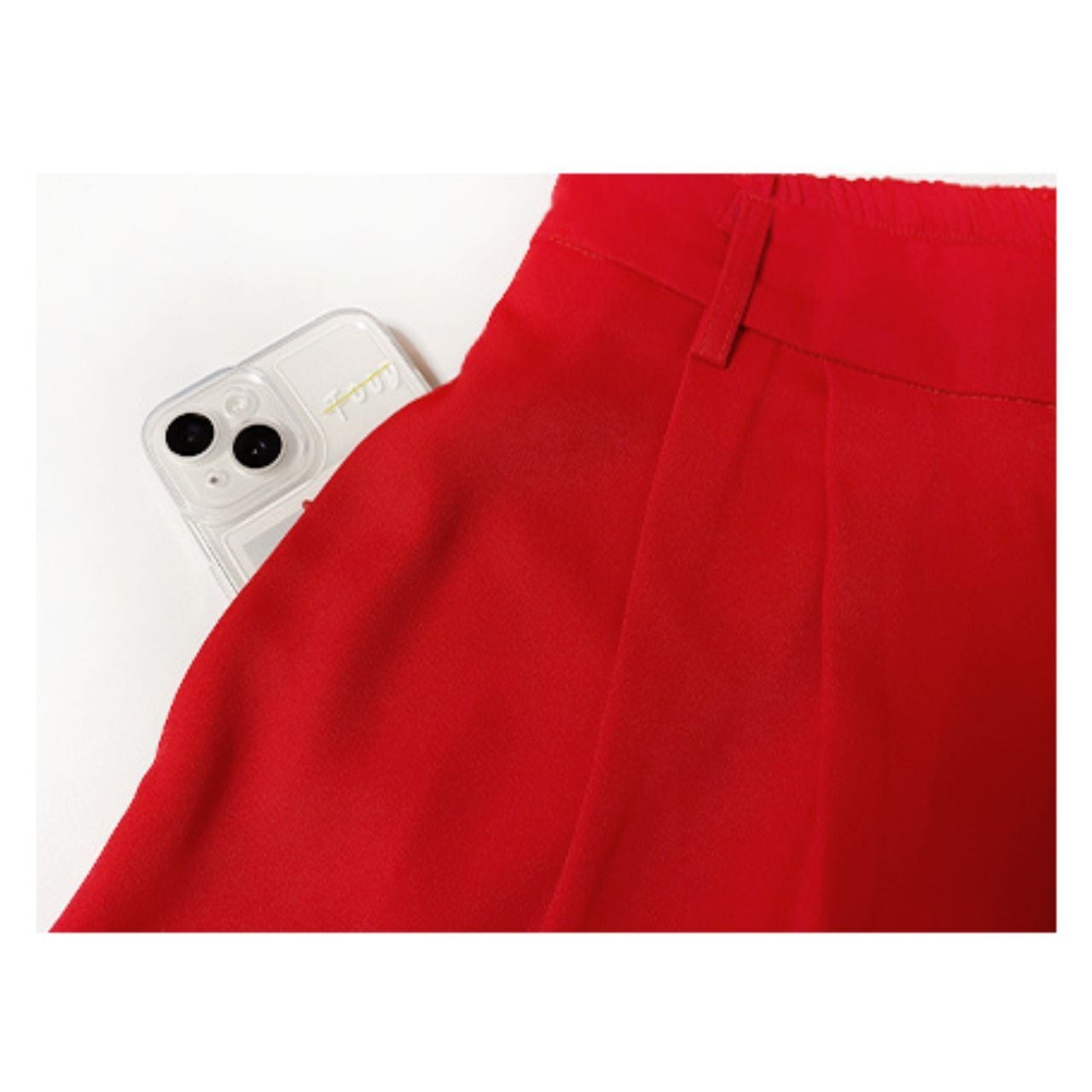 プリーツが上品な印象を与え、すっきりとした着こなしが叶う一本です。