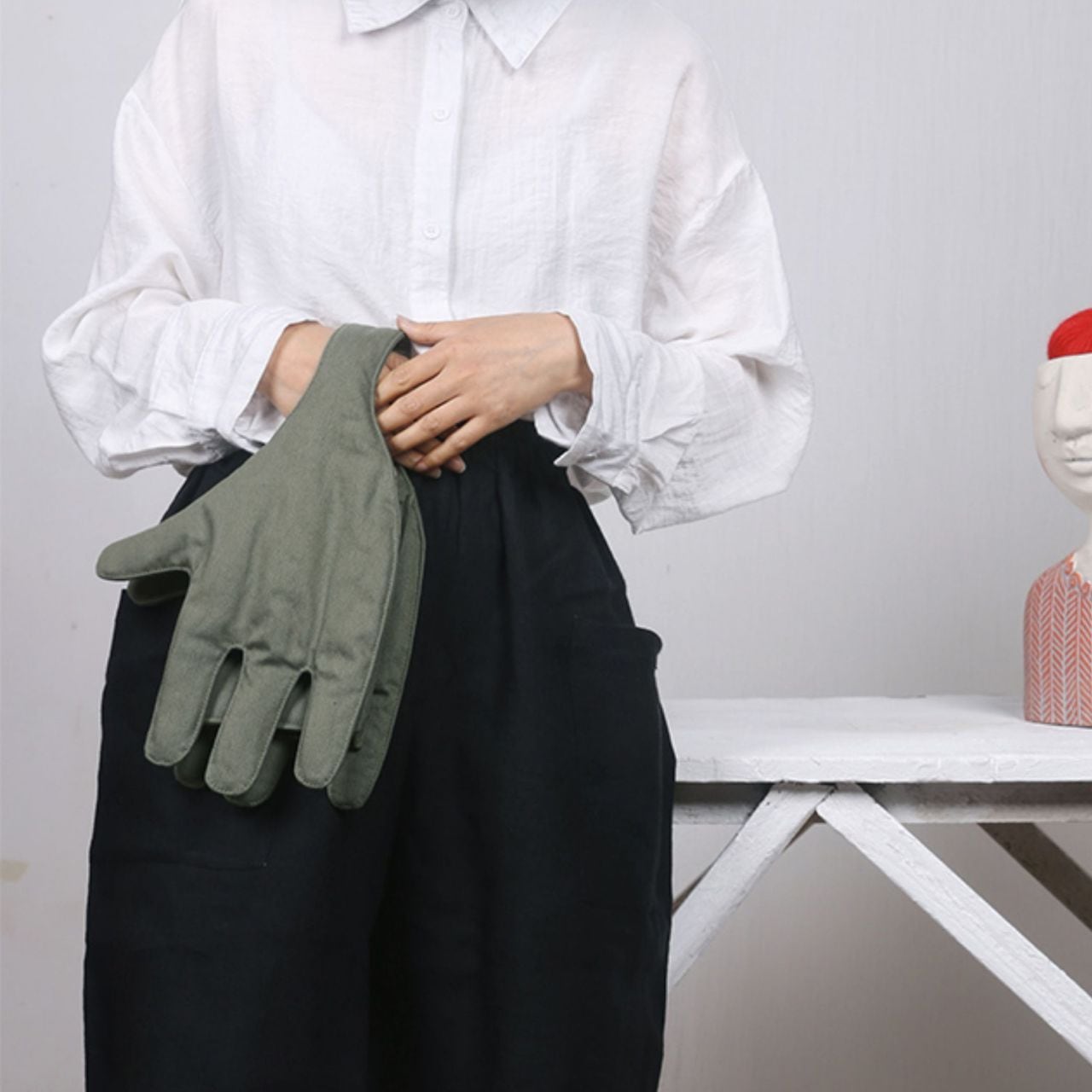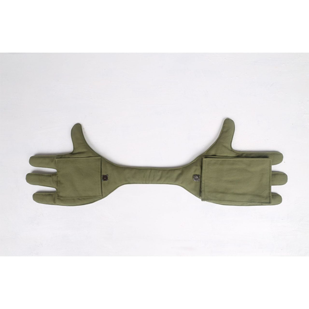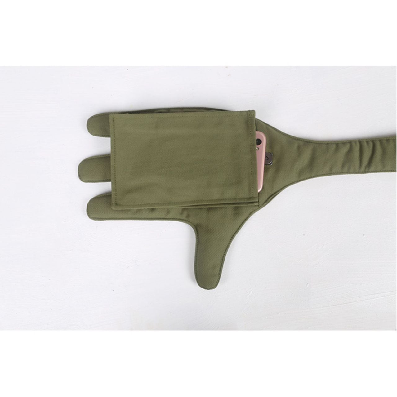 他にはない、ハンドモチーフのデザインが目を引くバッグ。