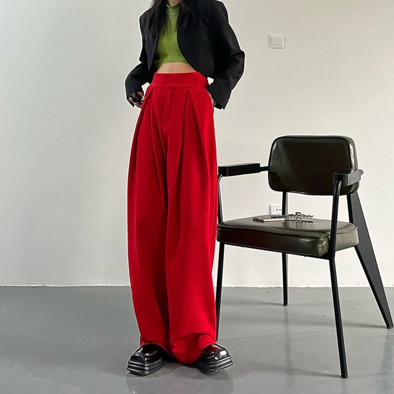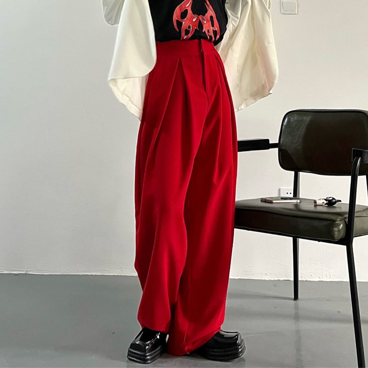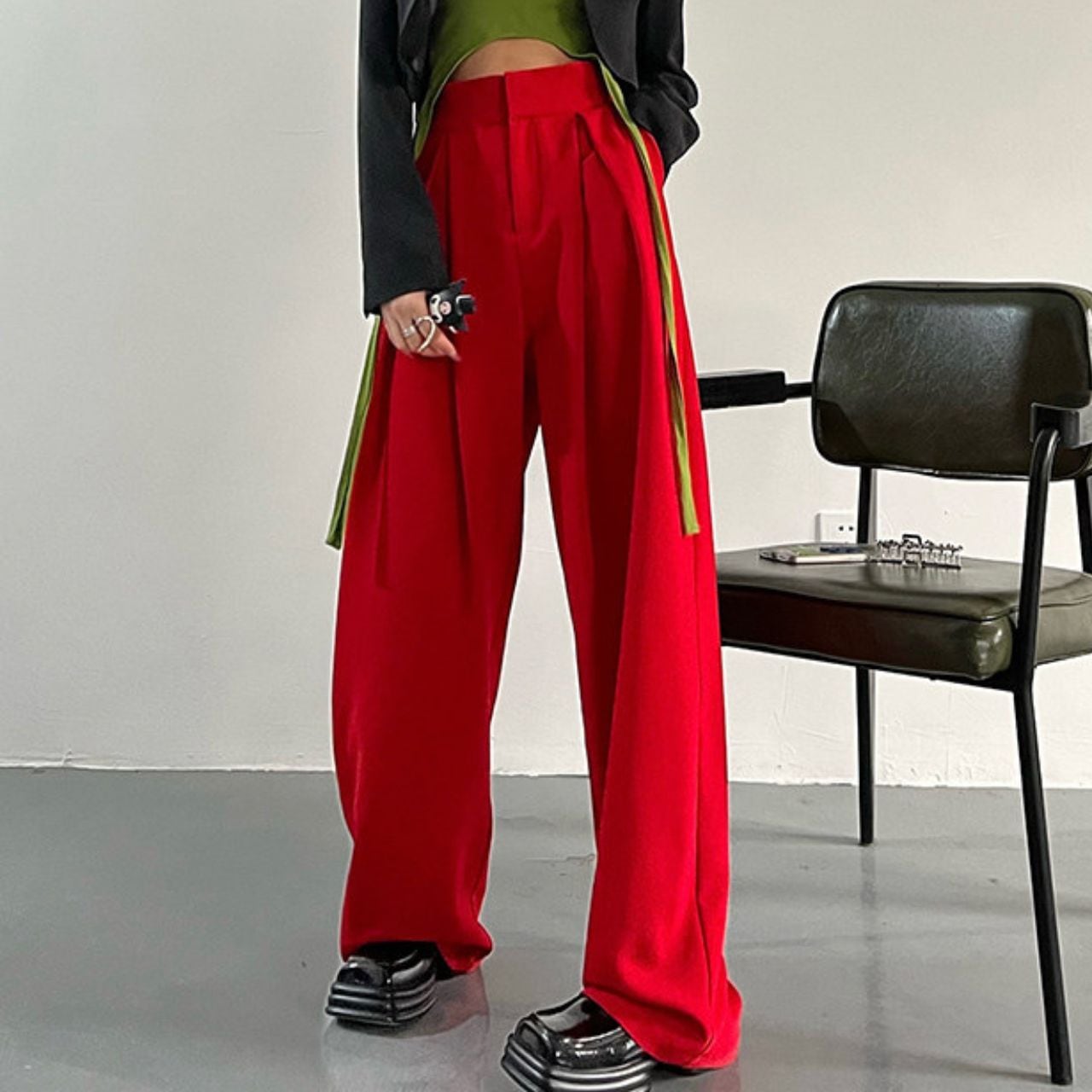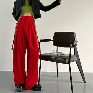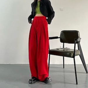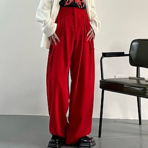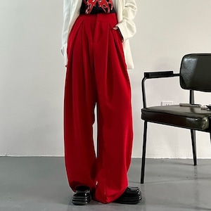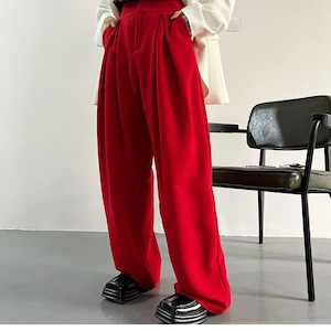 Wide leg Full length Red Pants 01022