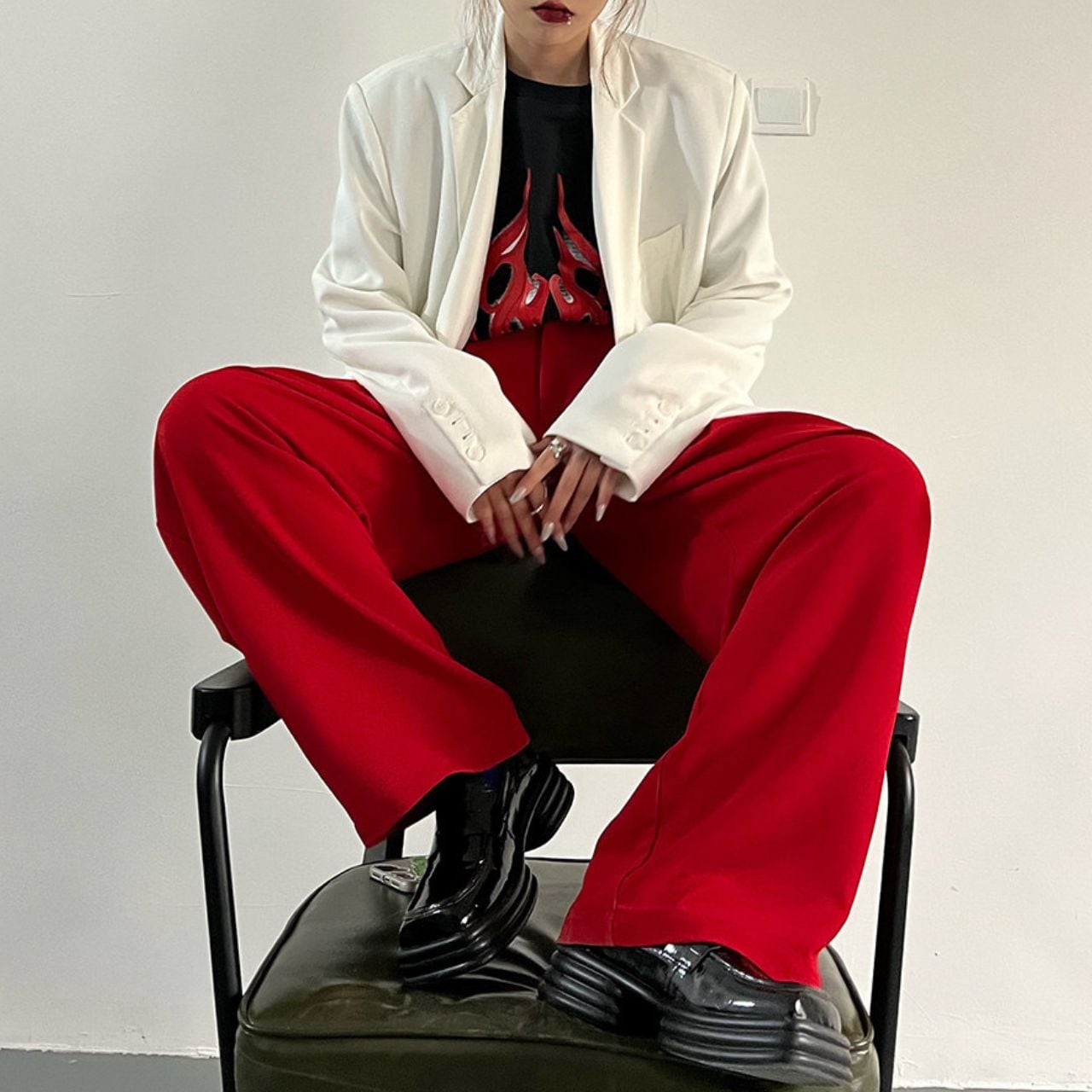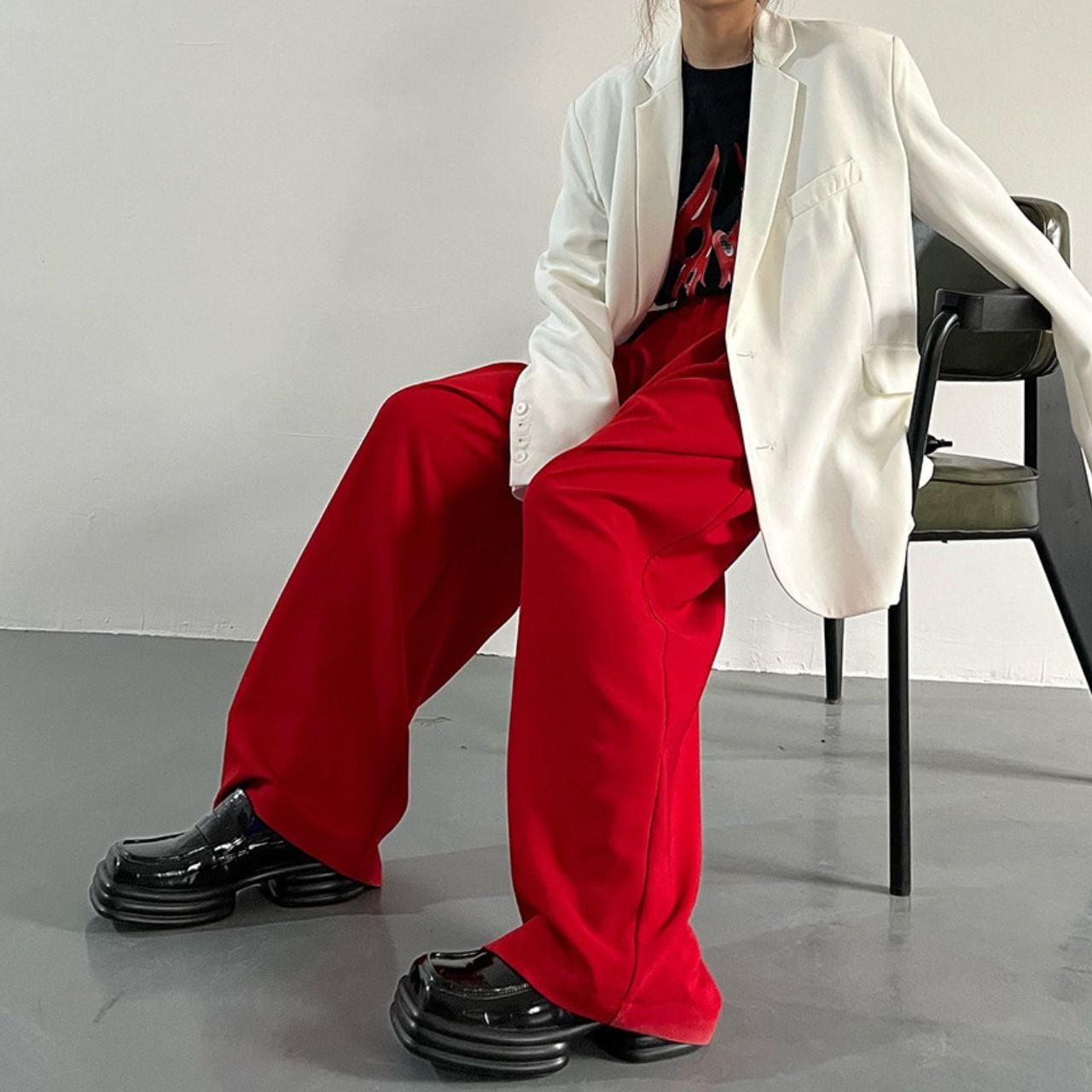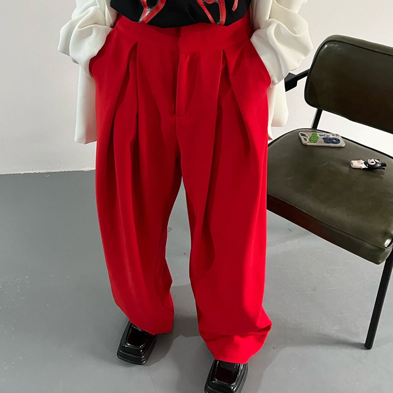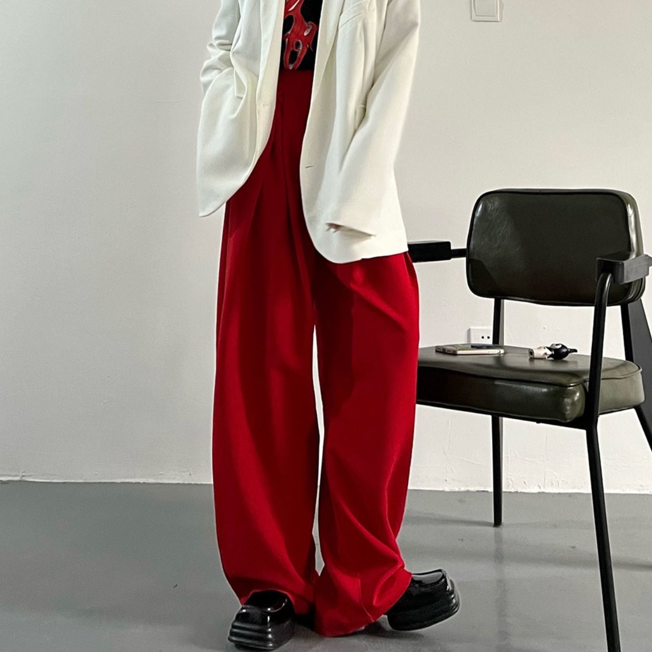 Wide leg Full length Red Pants 01022