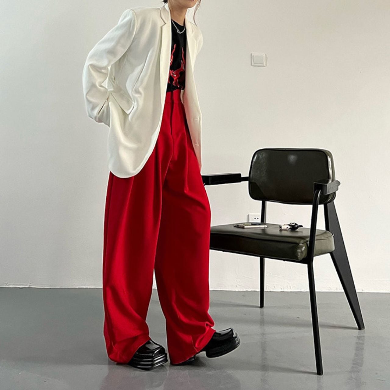 ワイドレッグシルエットが、トレンド感のあるスタイルを演出します。