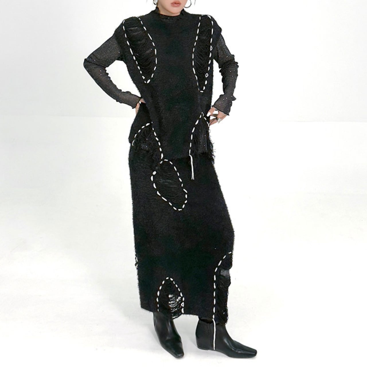 縦のラインを強調し、スタイルアップ効果も期待できます。