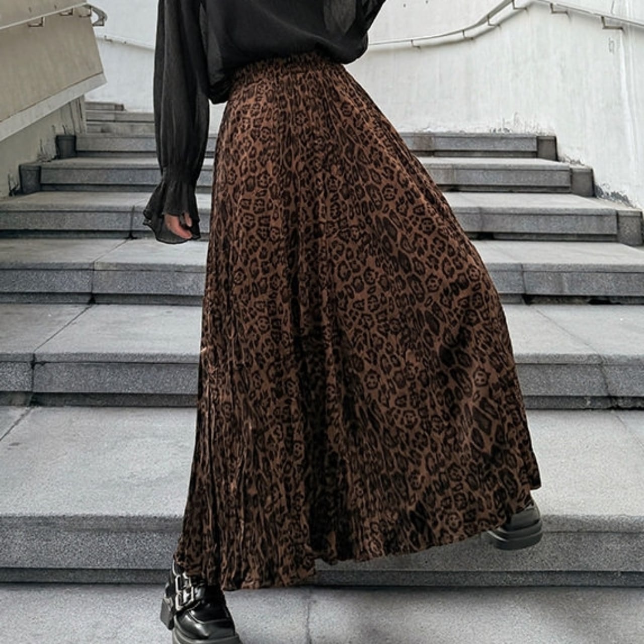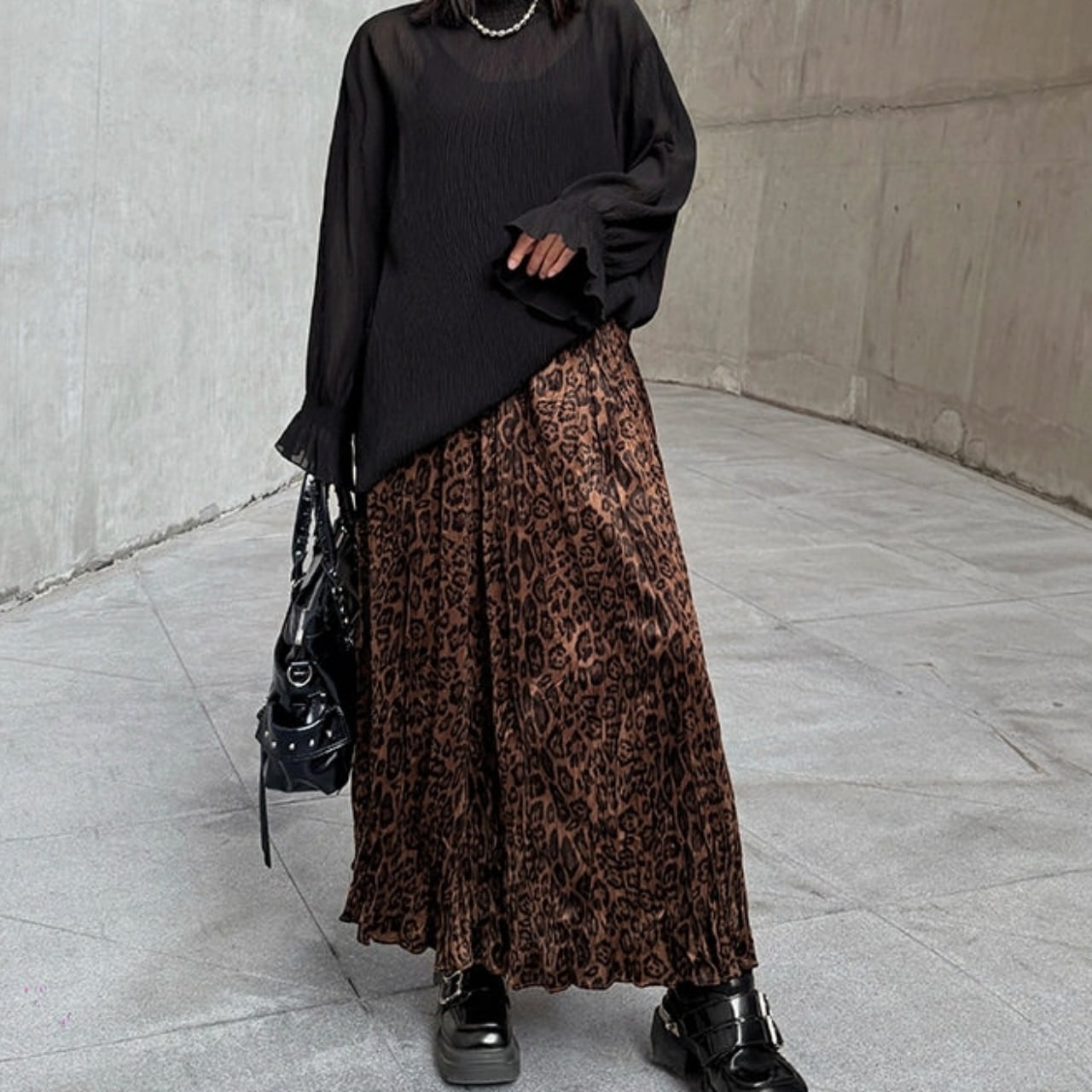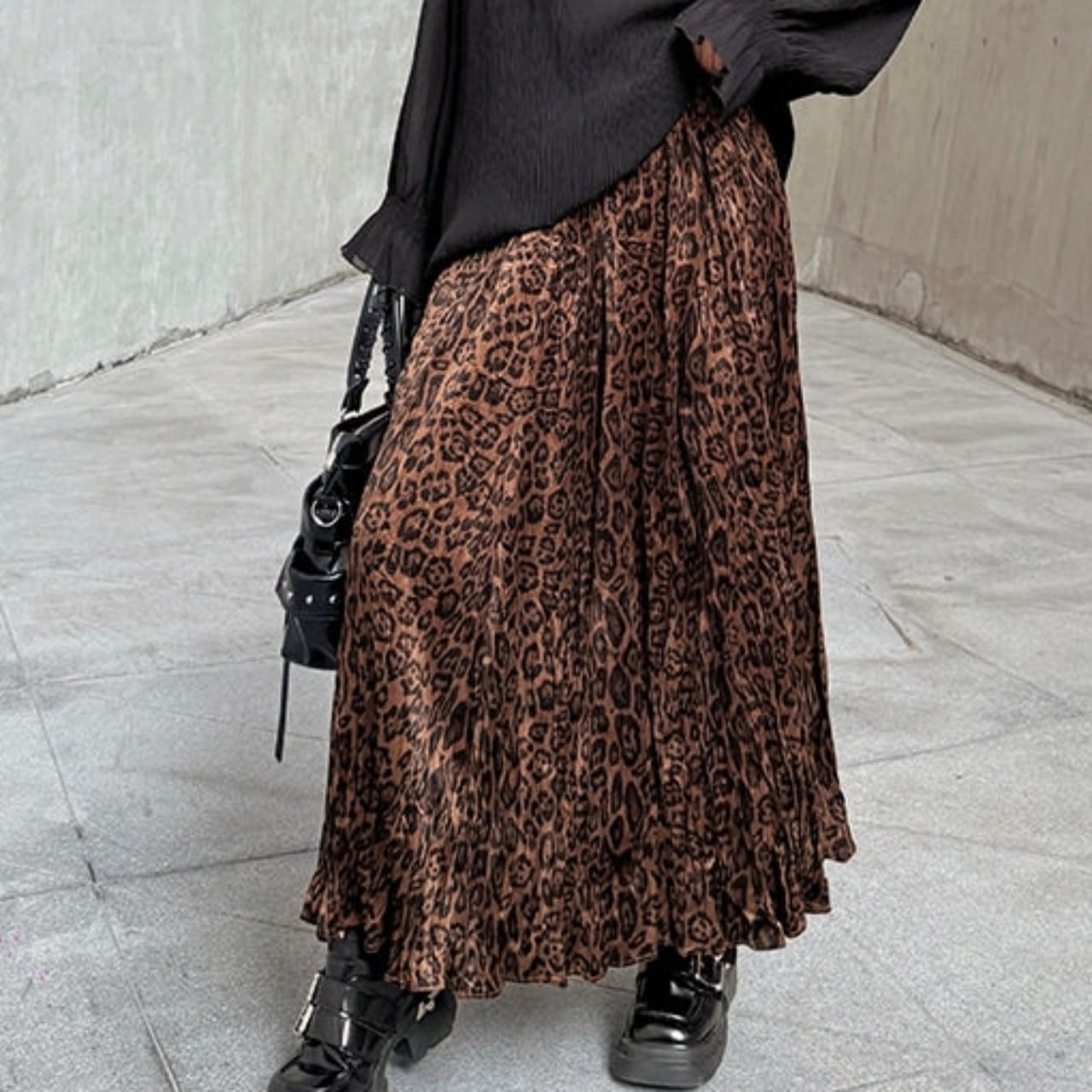 マキシ丈で存在感がありながらも、プリーツデザインが軽やかな印象を与えます。