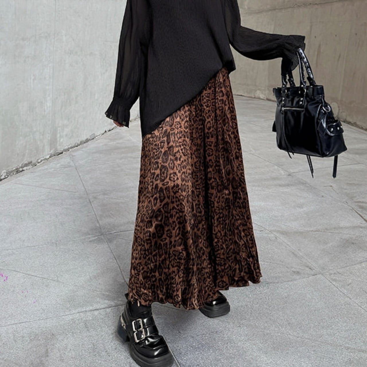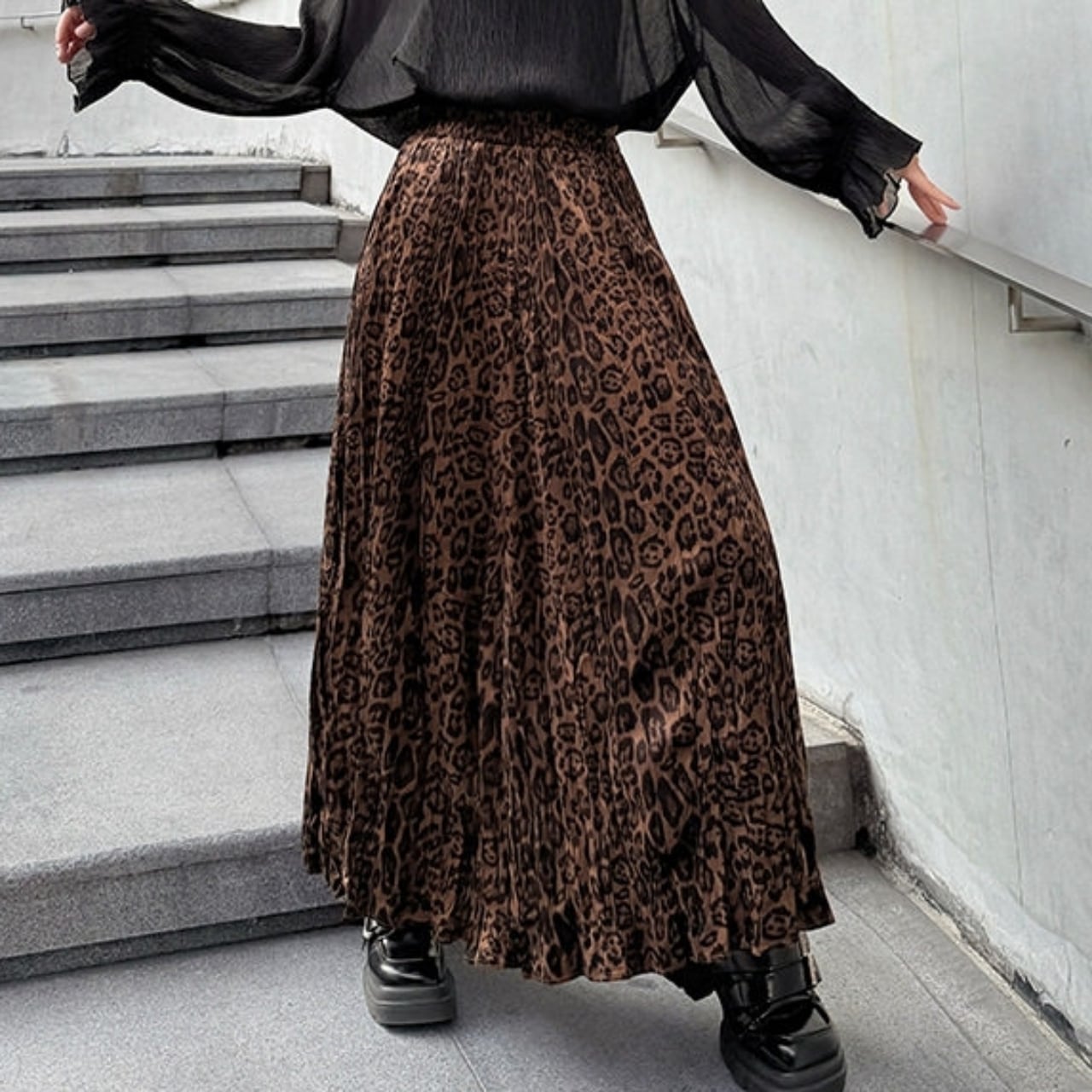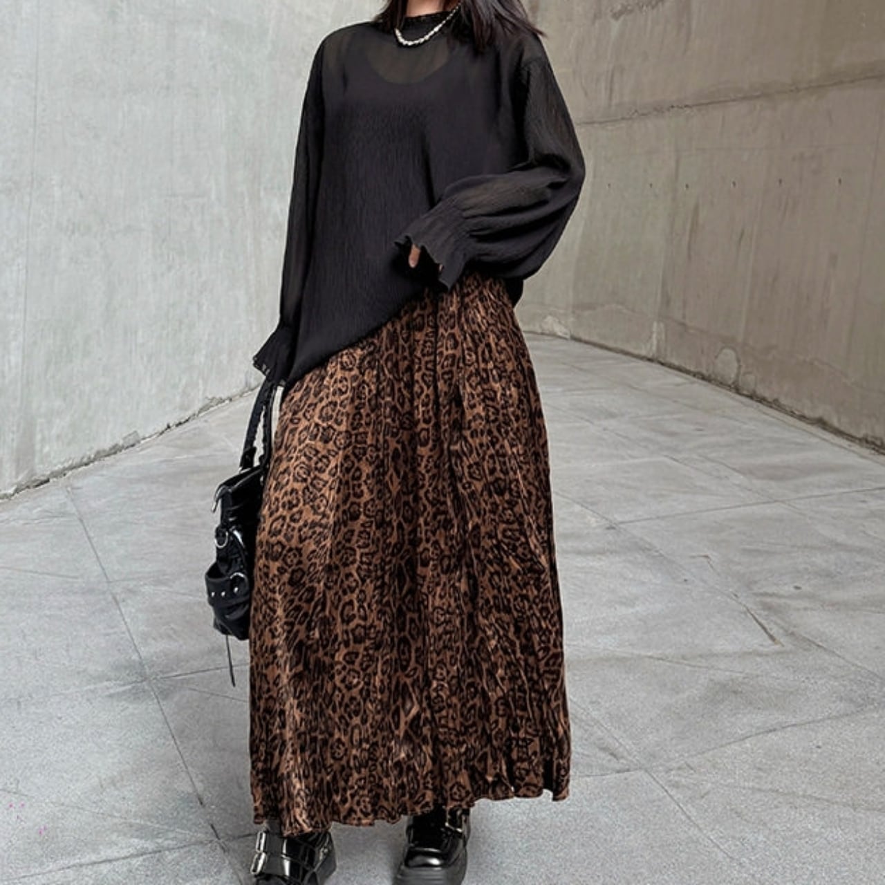 マキシ丈で存在感がありながらも、プリーツデザインが軽やかな印象を与えます。