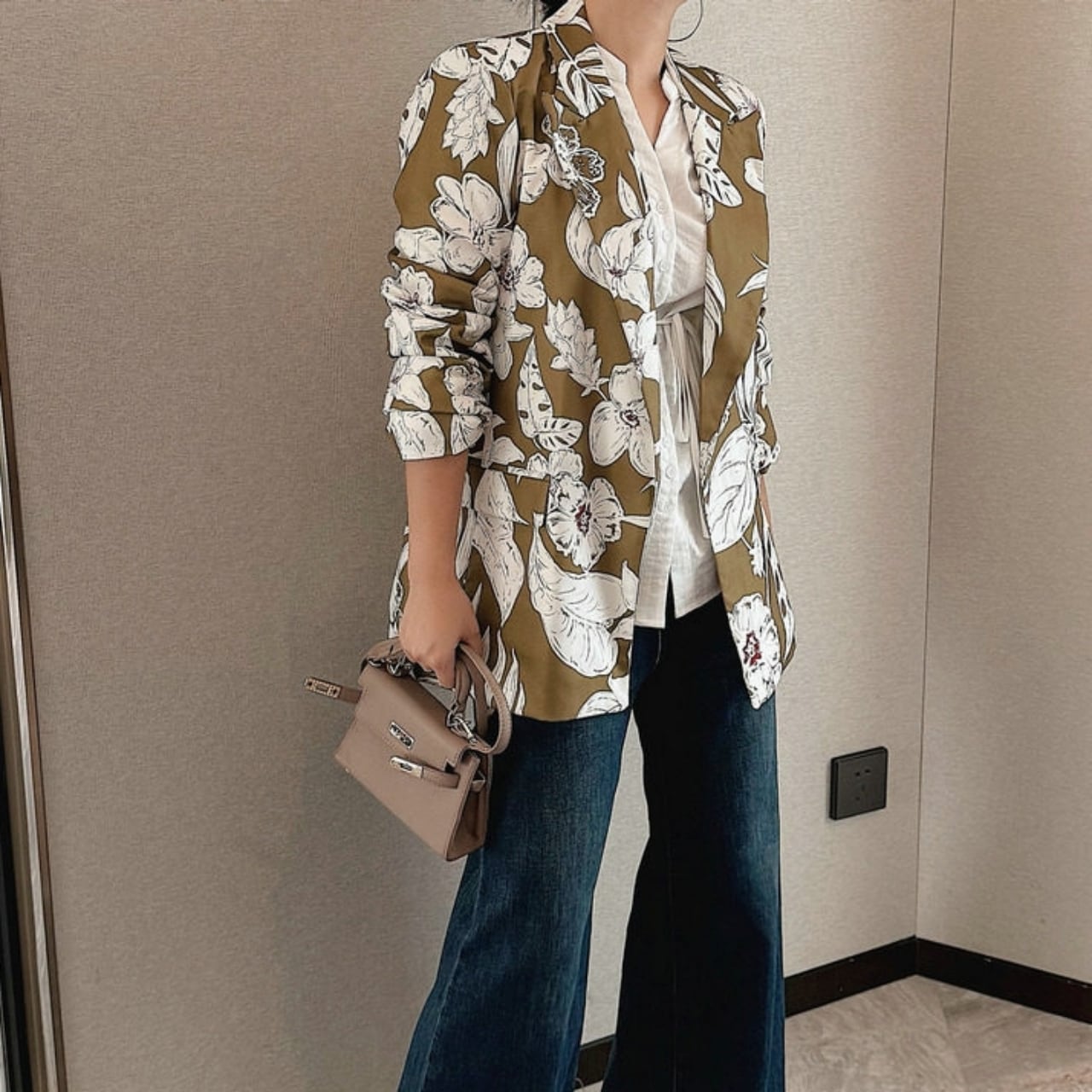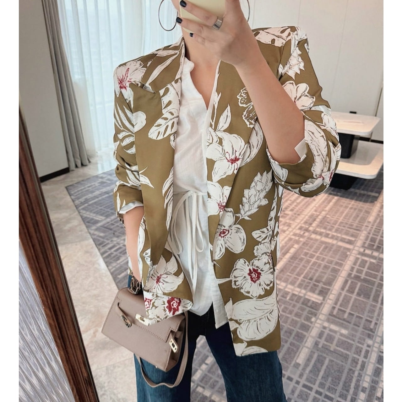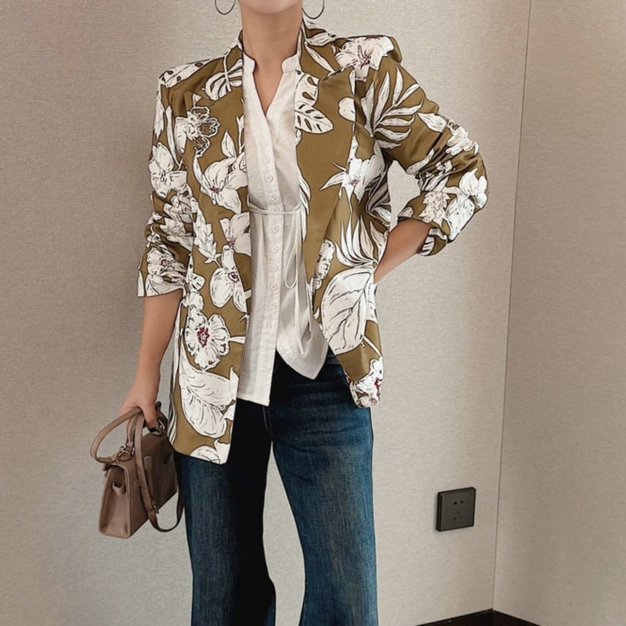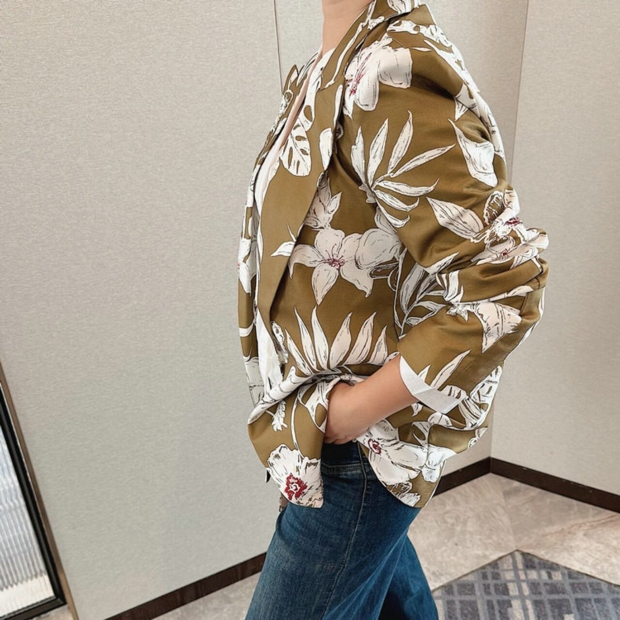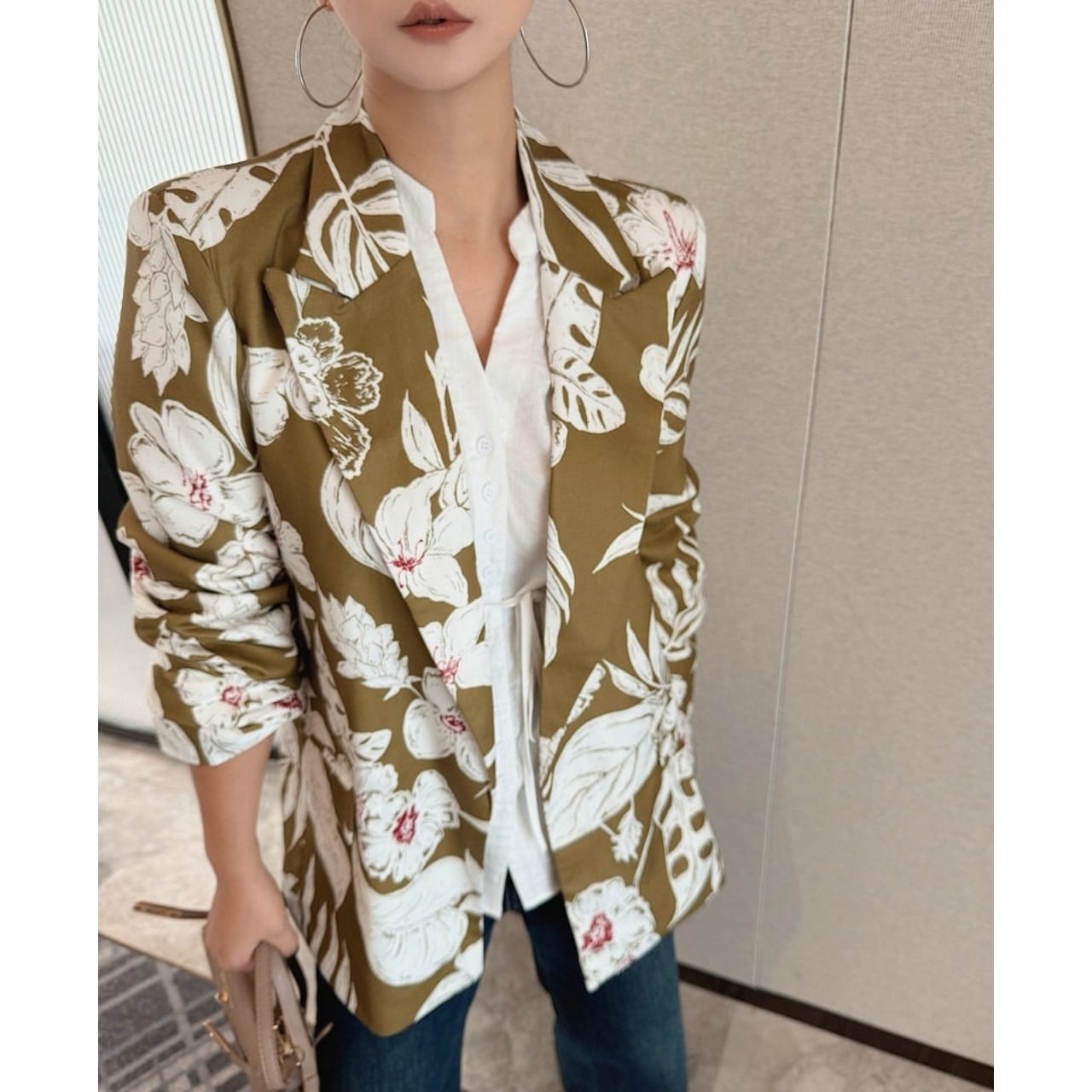 Floral Open Collar Jacket 01073