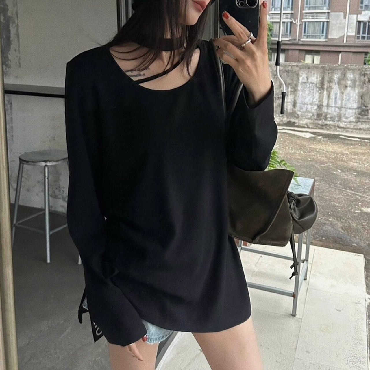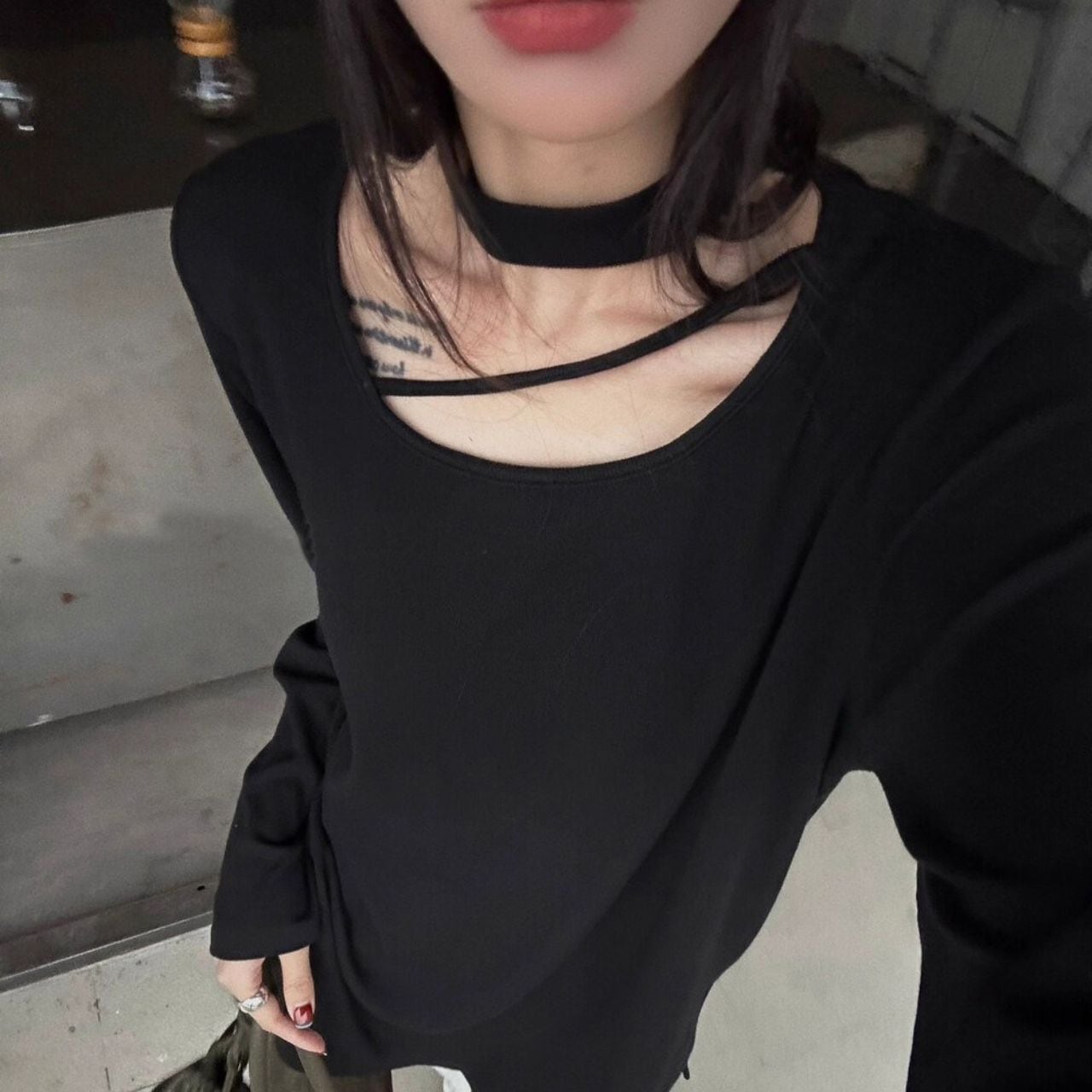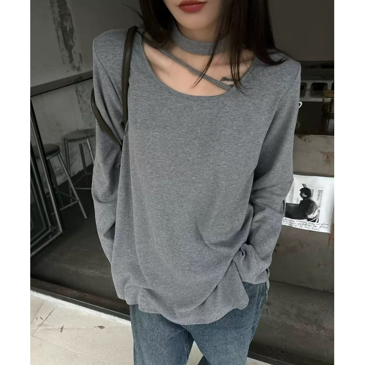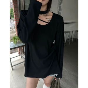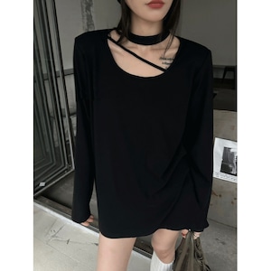 Choker Neck Long Sleeve T-Shirt 01065