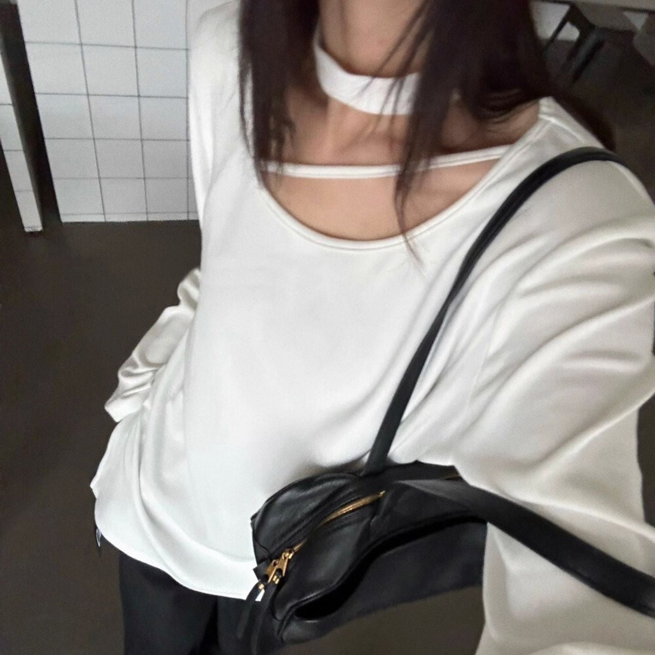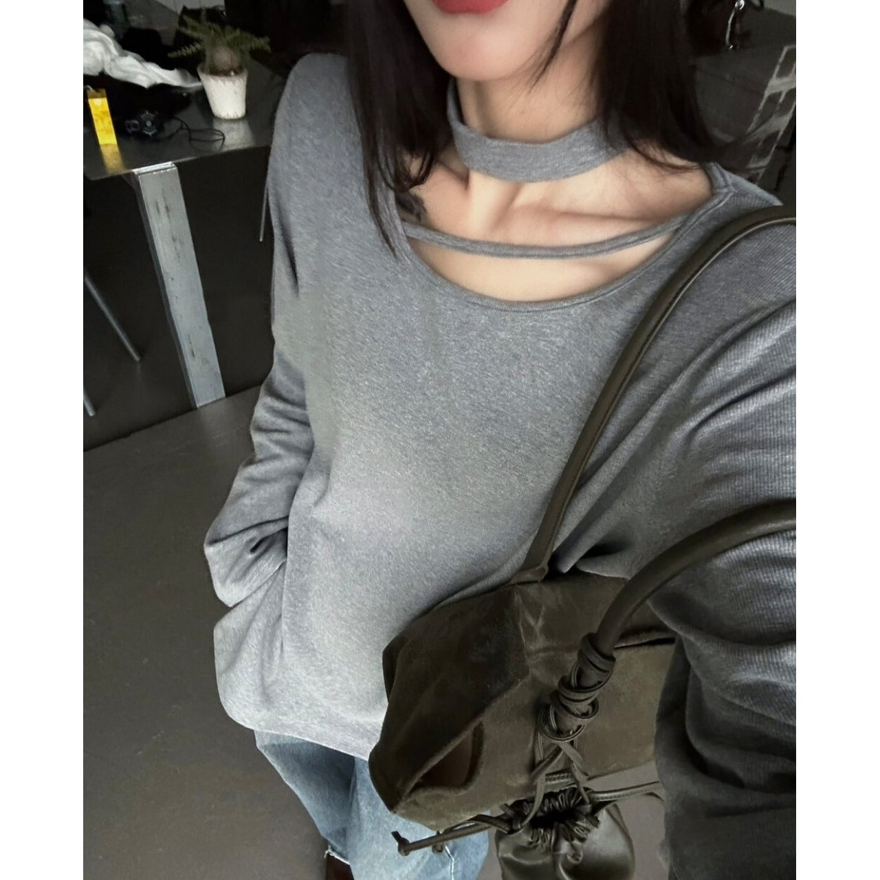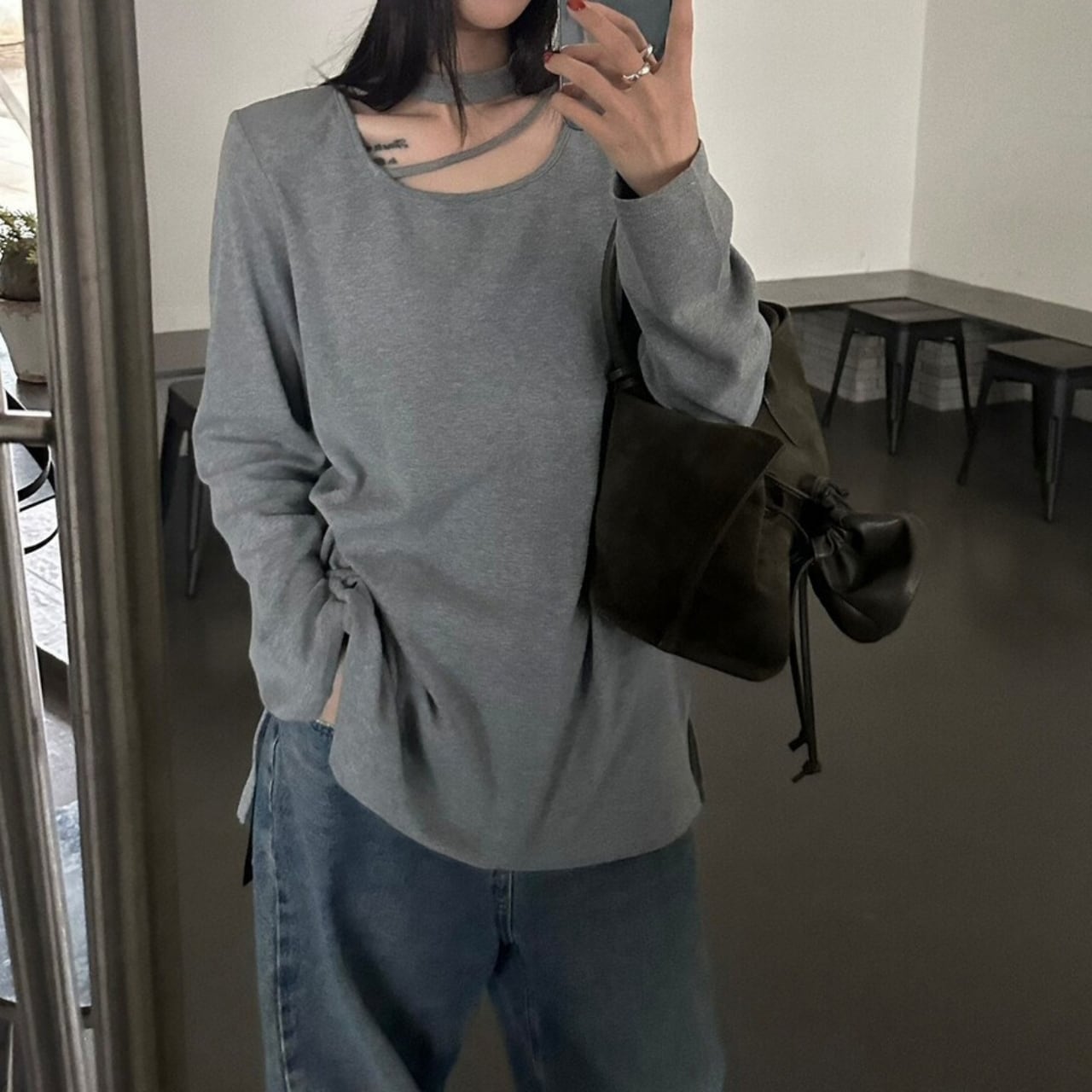 Choker Neck Long Sleeve T-Shirt 01065