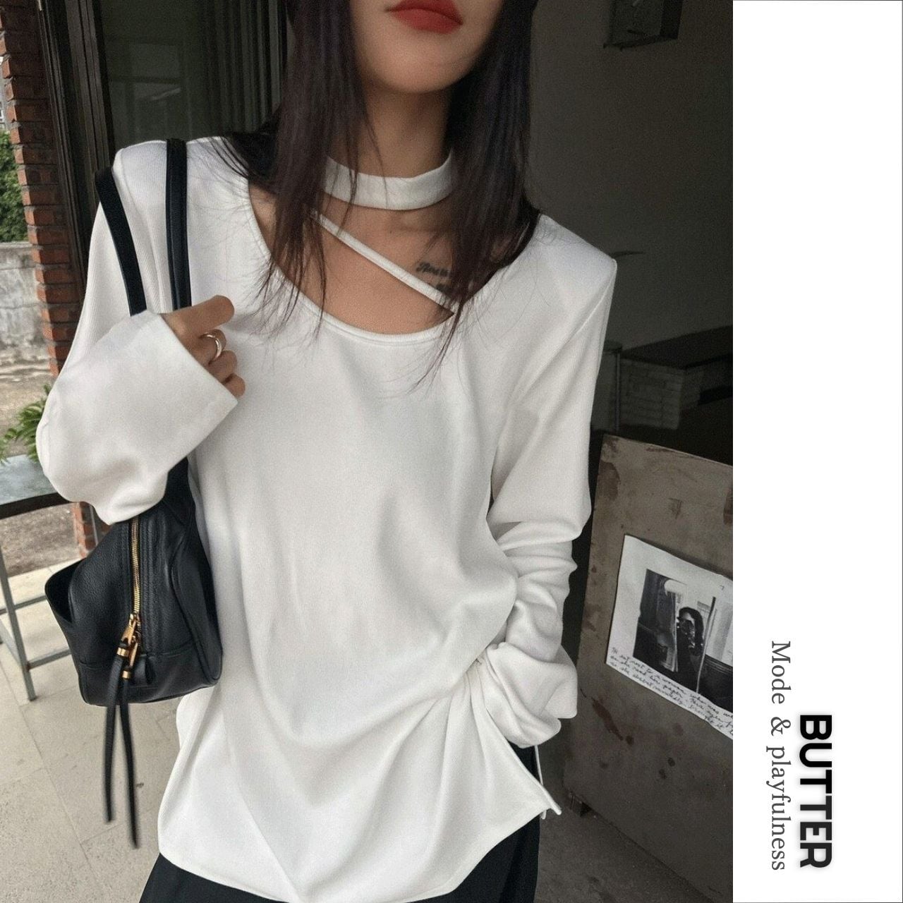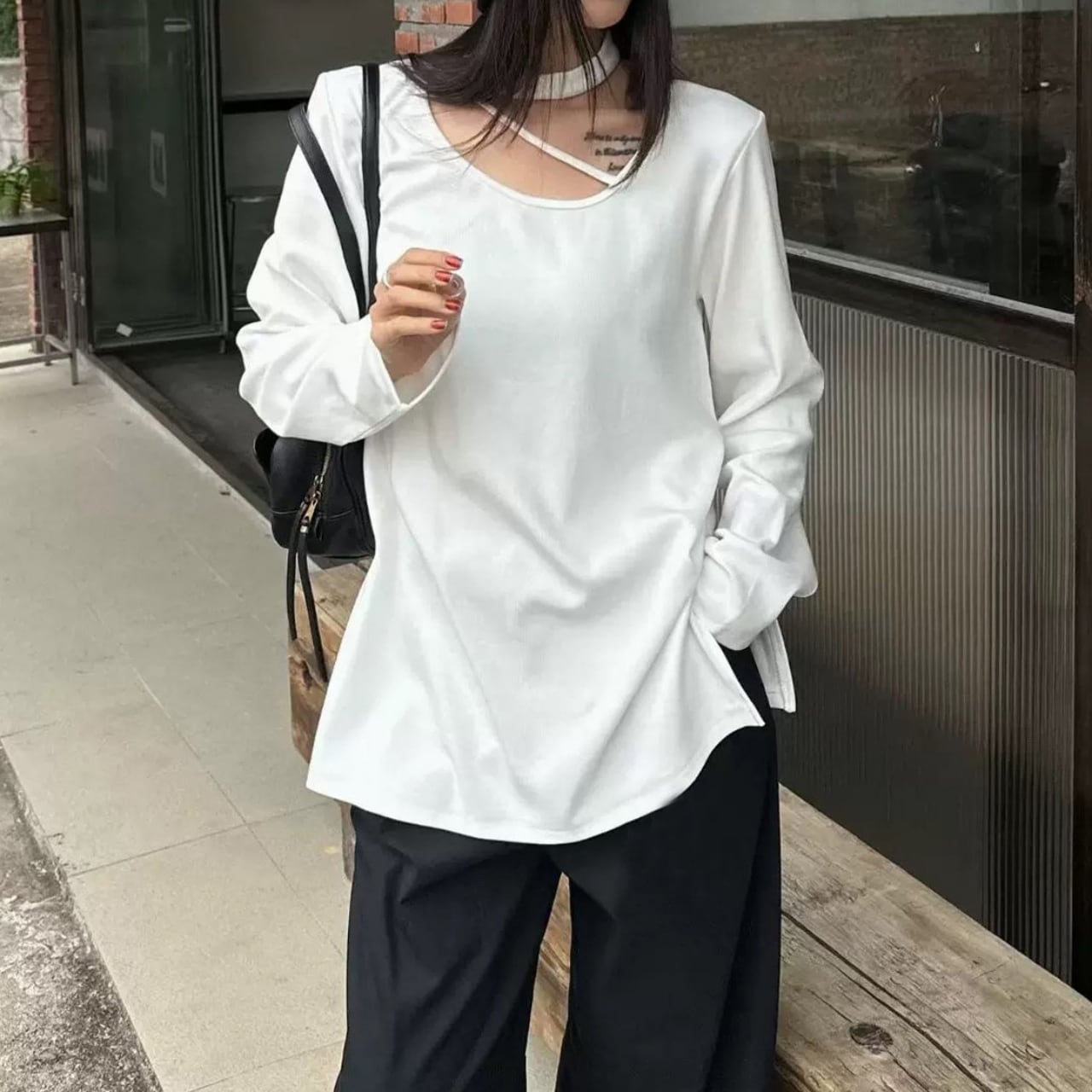 デコルテを美しく見せつつ、さりげない肌見せができます。